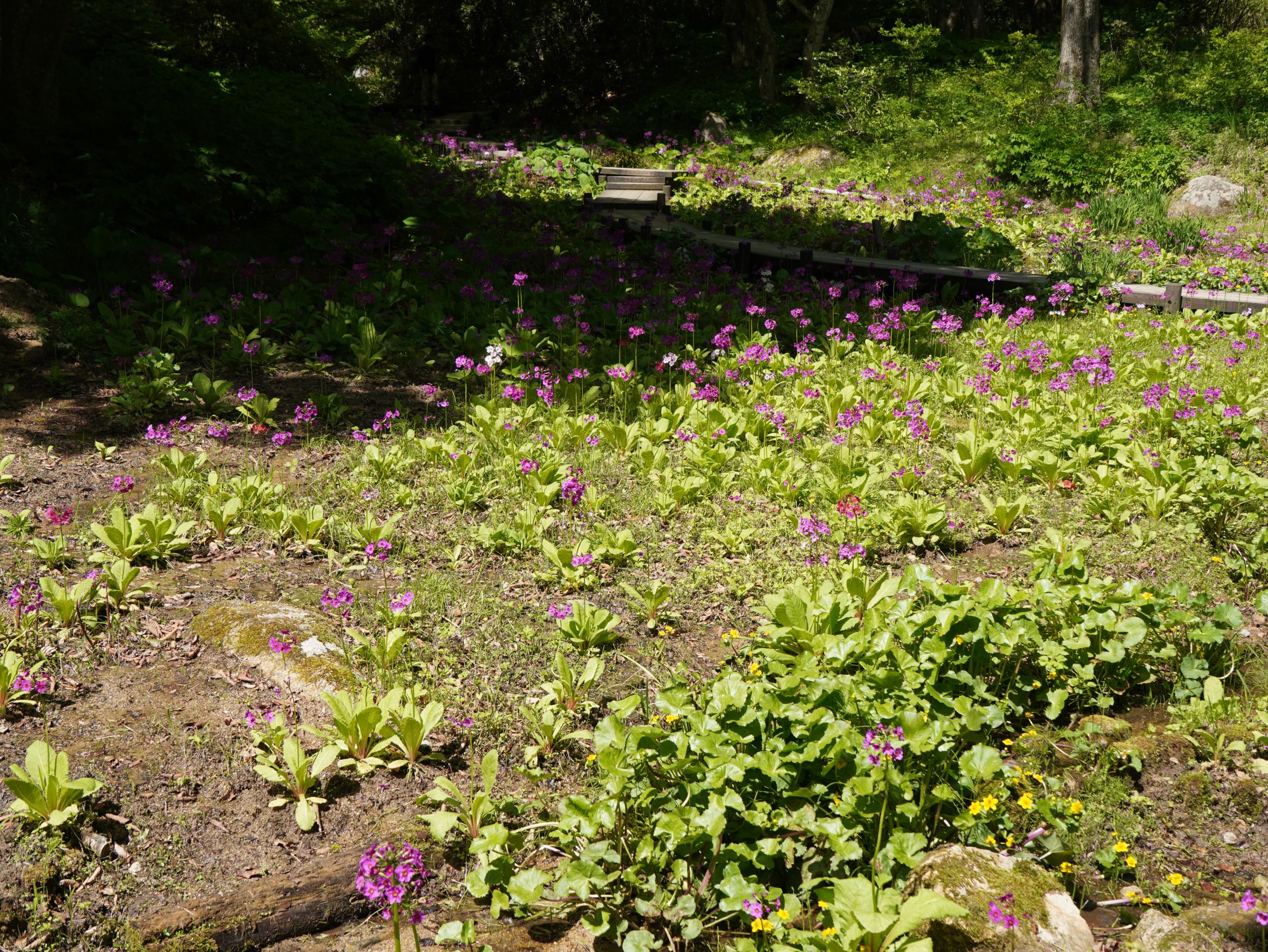 クリンソウの季節です。去年の夏に大原の古知谷阿弥陀寺と六甲高山植物園でわずかに一輪ずつ残っていたクリンソウを思い出し、いっぱい咲き誇っているクリンソウが見たくなりました。