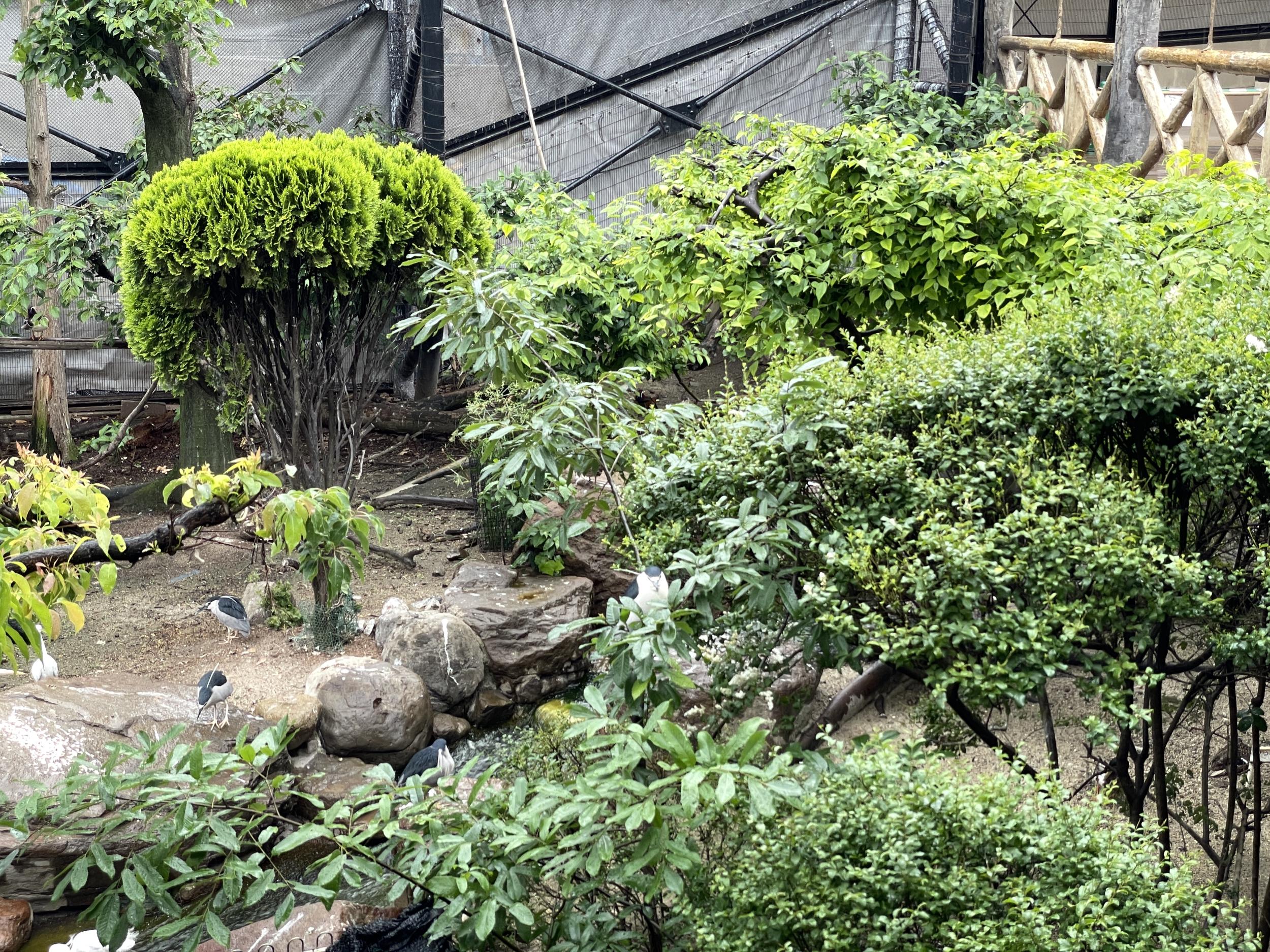 前回気づかなかった「鳥の楽園」に入ってみました。神戸どうぶつ王国のケージよりずっと広くて高さもあります。