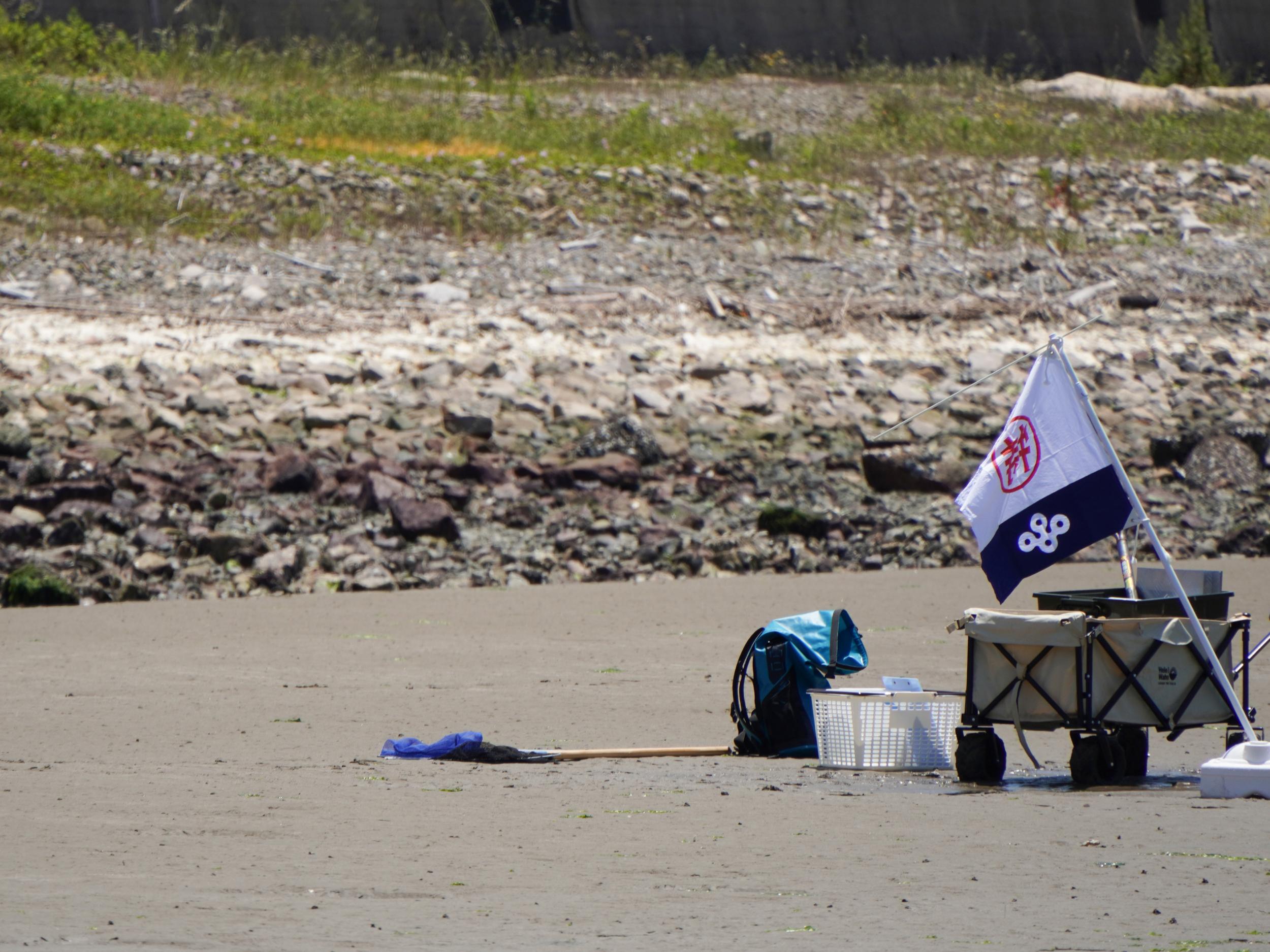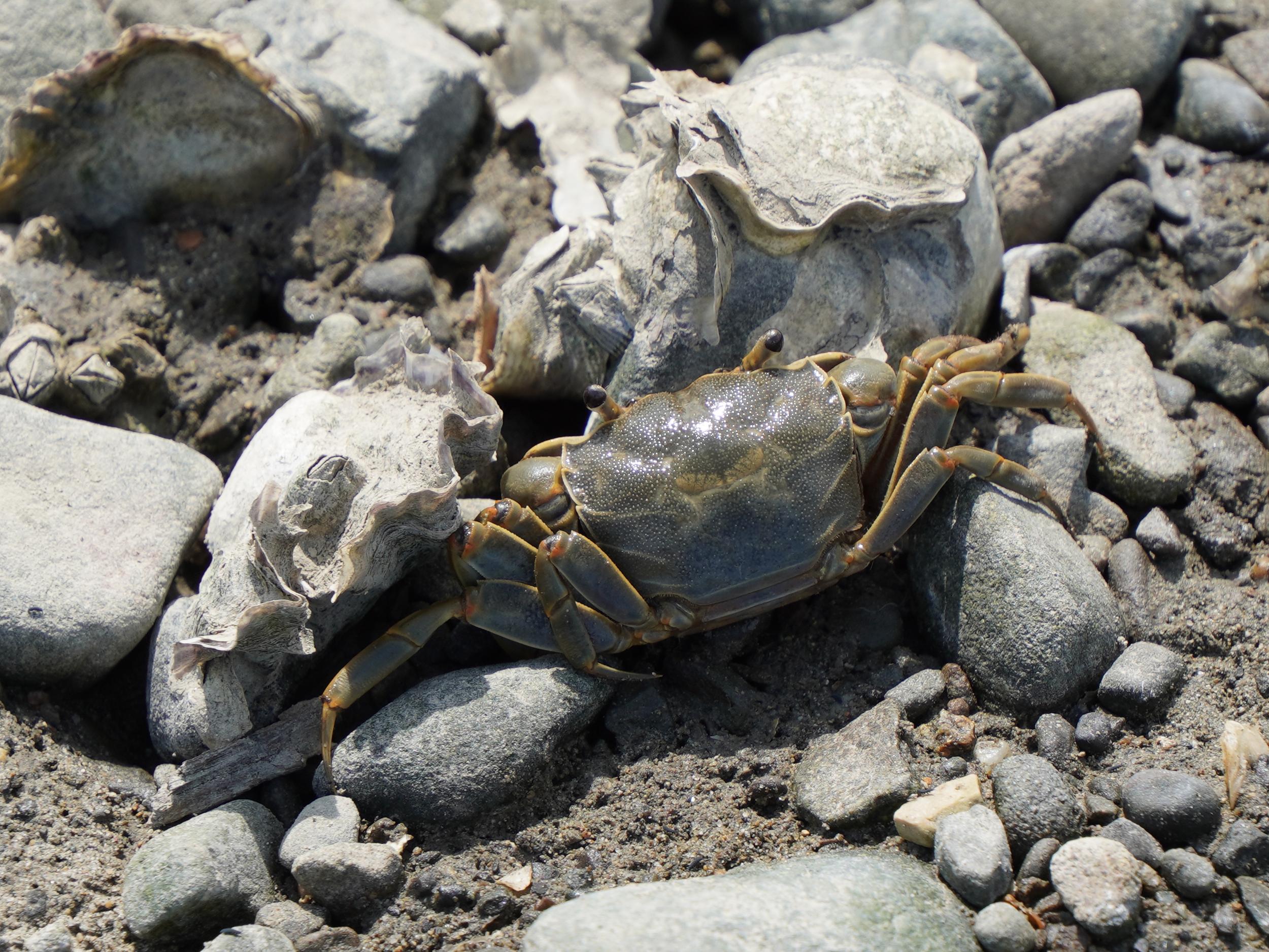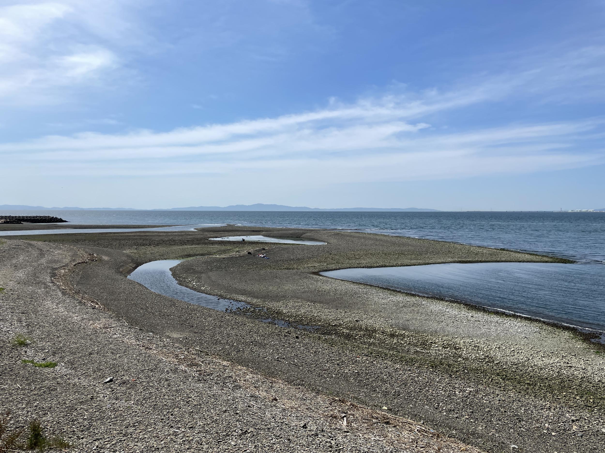 大潮で干潮のピーク午後2時の潮位は1cm、そして快晴、男里川河口一択の土曜日です。1年前同様の潮見の日、トビハゼとスナガニを観察しており、期待が膨らみます。