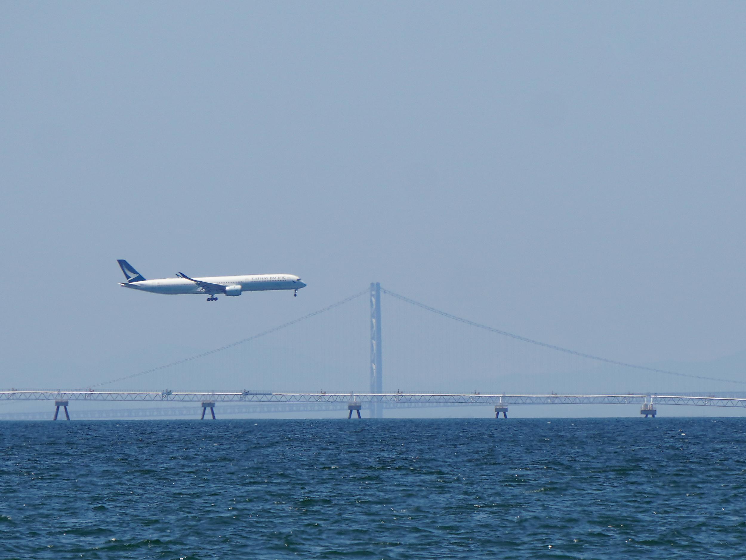 明石海峡大橋をバックにキャセイのB777が到着。香港経由で深圳、東莞へ足繁く通っていた頃もキャセイに乗ったことはほとんどなくてJALばかりでした。まだ羽田発の国際線もLCCもなかった頃ですが御徒町のJTBで格安航空券を手配、概ね5万円程度で往復できた記憶があります。