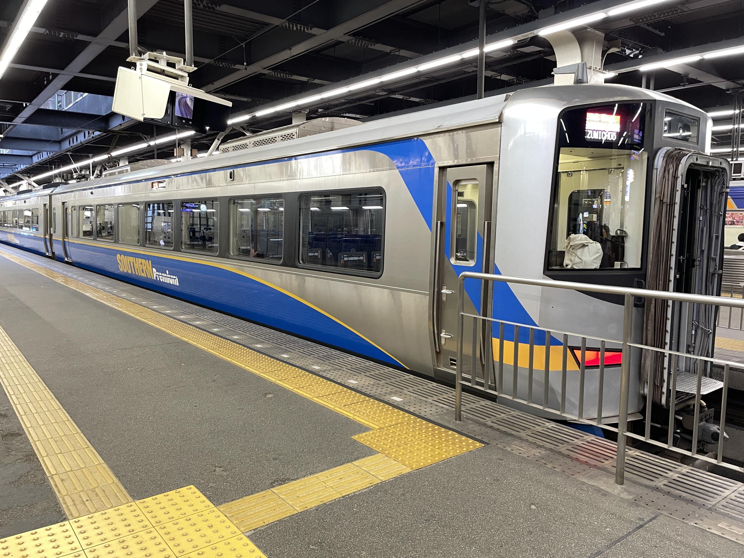 尾崎に到着、やはりおじさんたち3人も下りて上りホームへ向かって行きました。調べてみると関空到着は乗り間違えたことで30分遅れです。7100系の写真におじさんたちがバッチリ映り込んでいたのはカットしたのですが、リーダーさんは比較的落ち着いた表情、どうやら余裕を持って関空に向かっていて、たぶん免税店でお買物できないくらいで済みそうです。自分なら顔を引き攣らせていたところです。