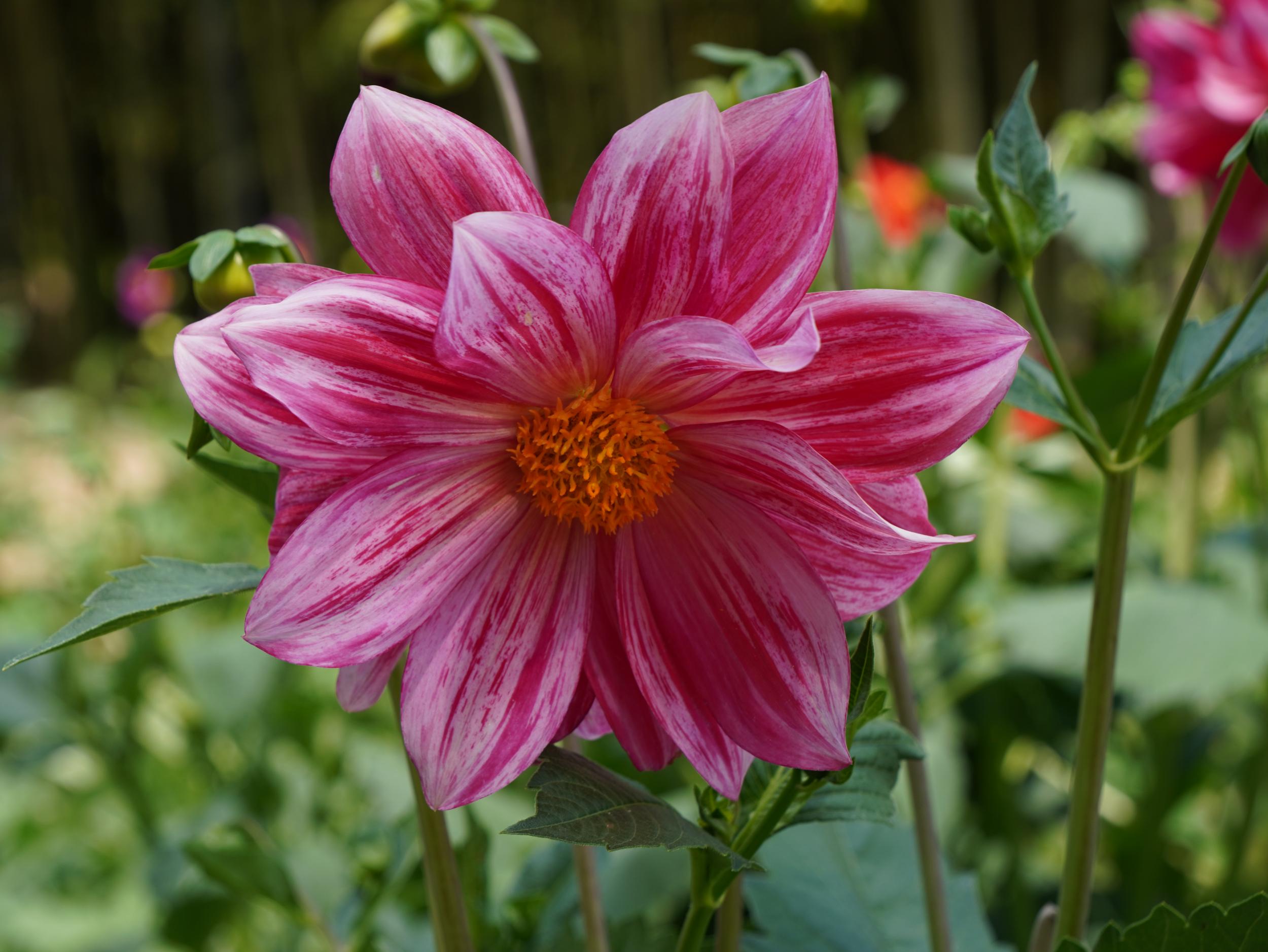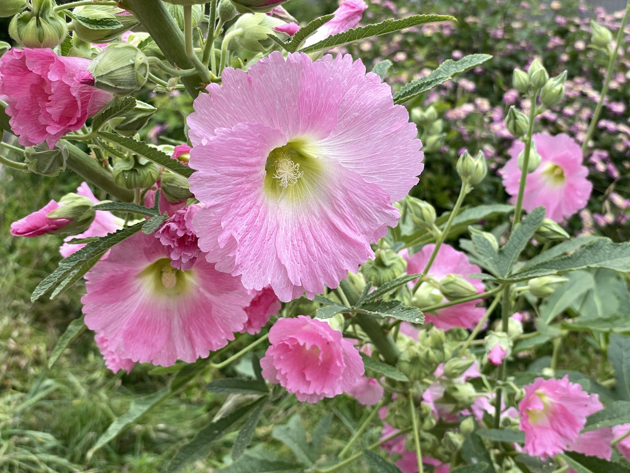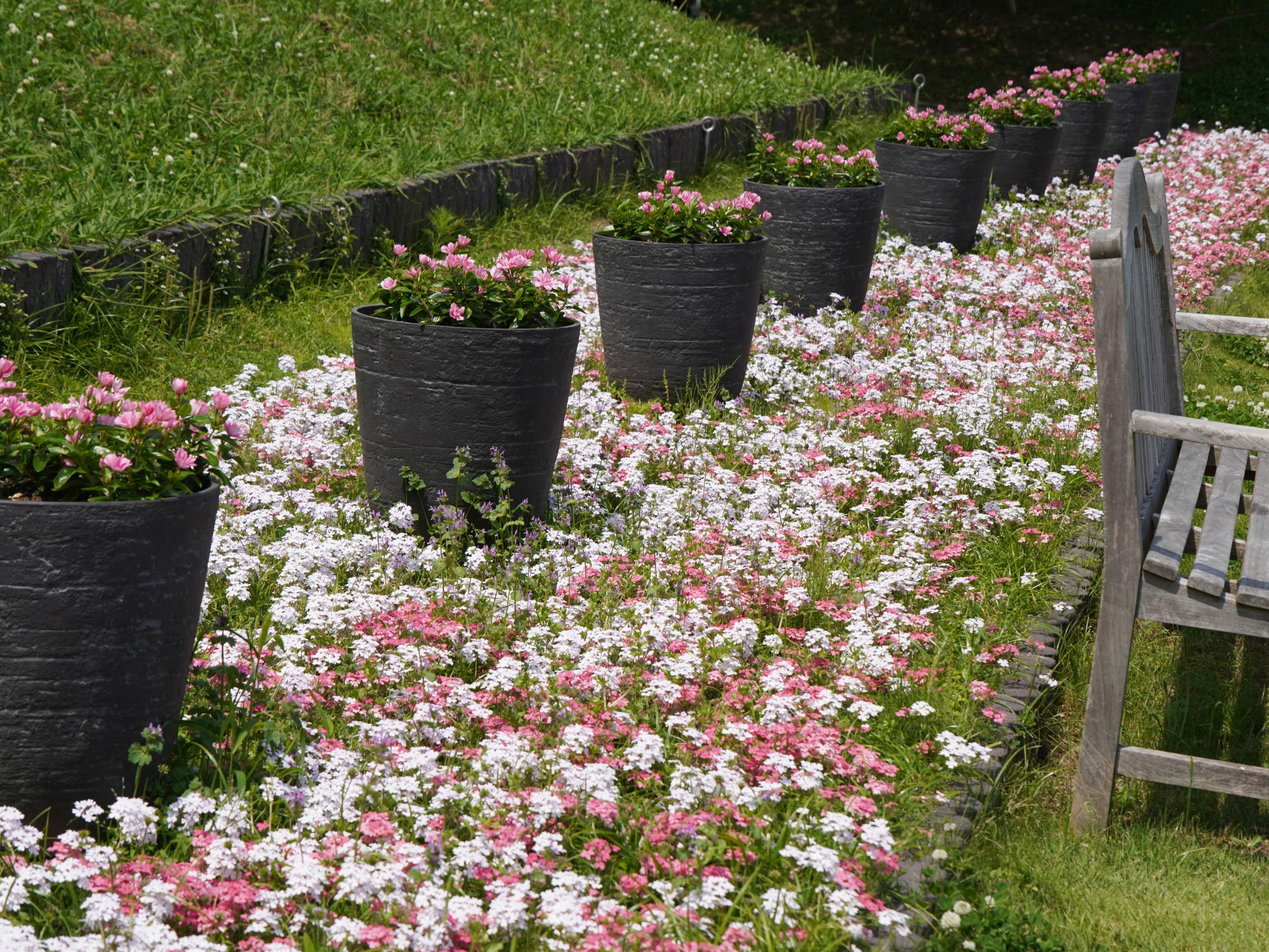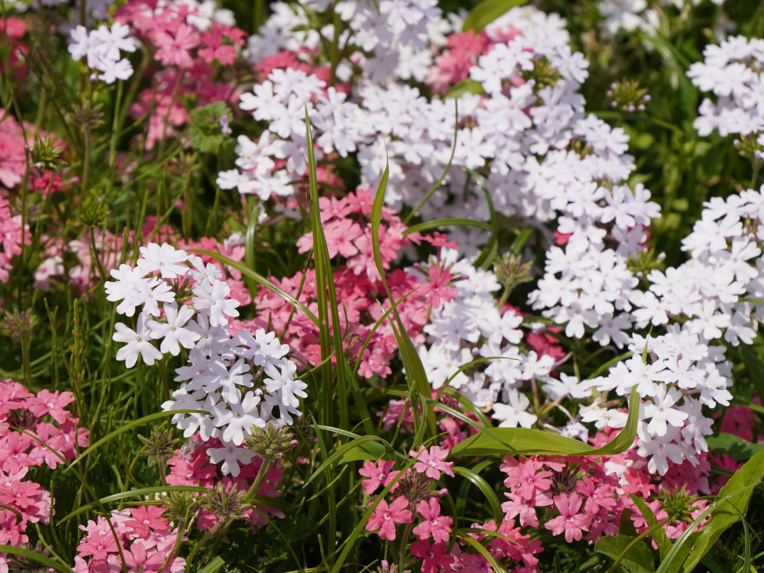 ローズピンクと白のコンビネーションはタピアン、バーベナの一種です。
