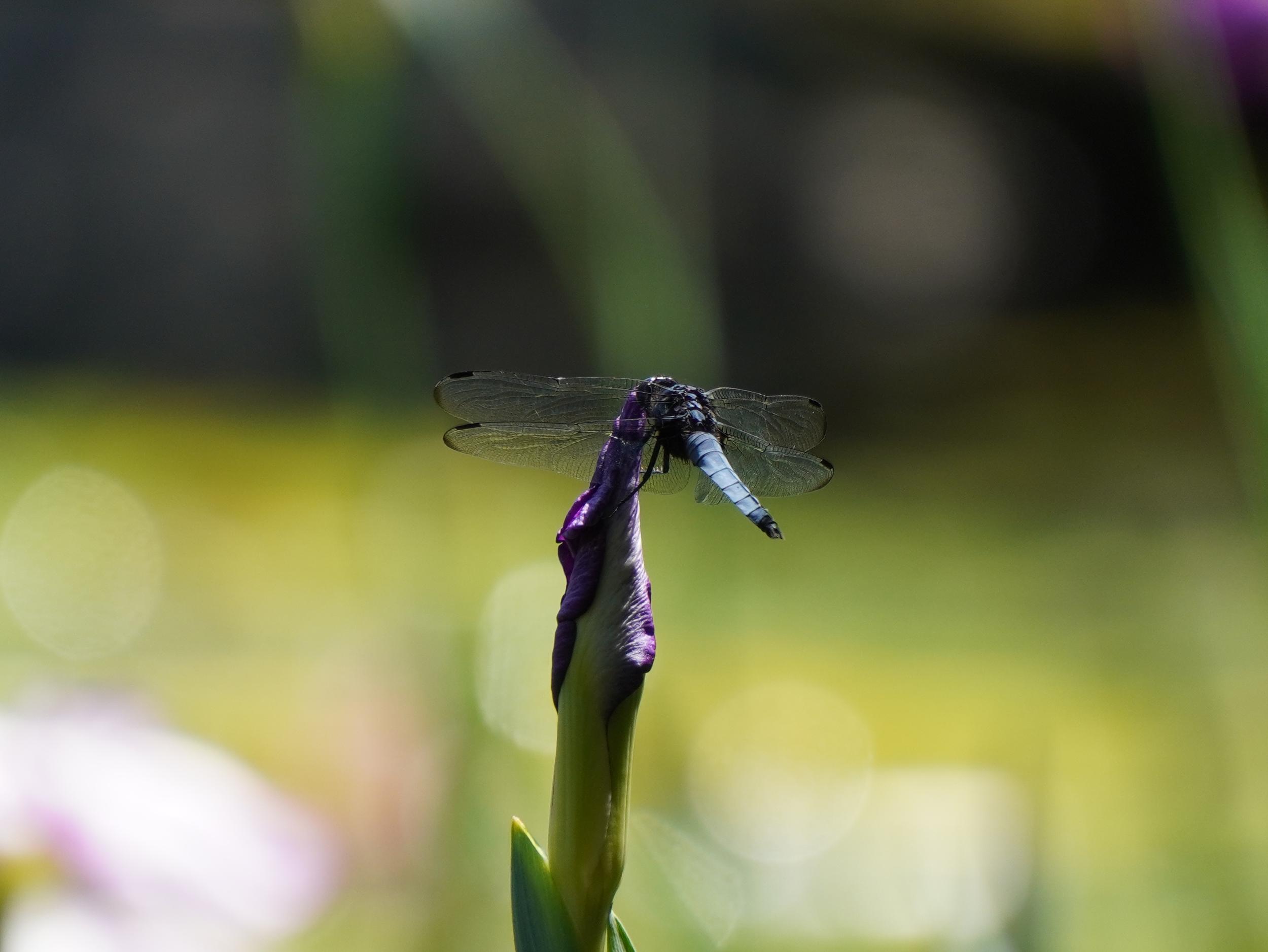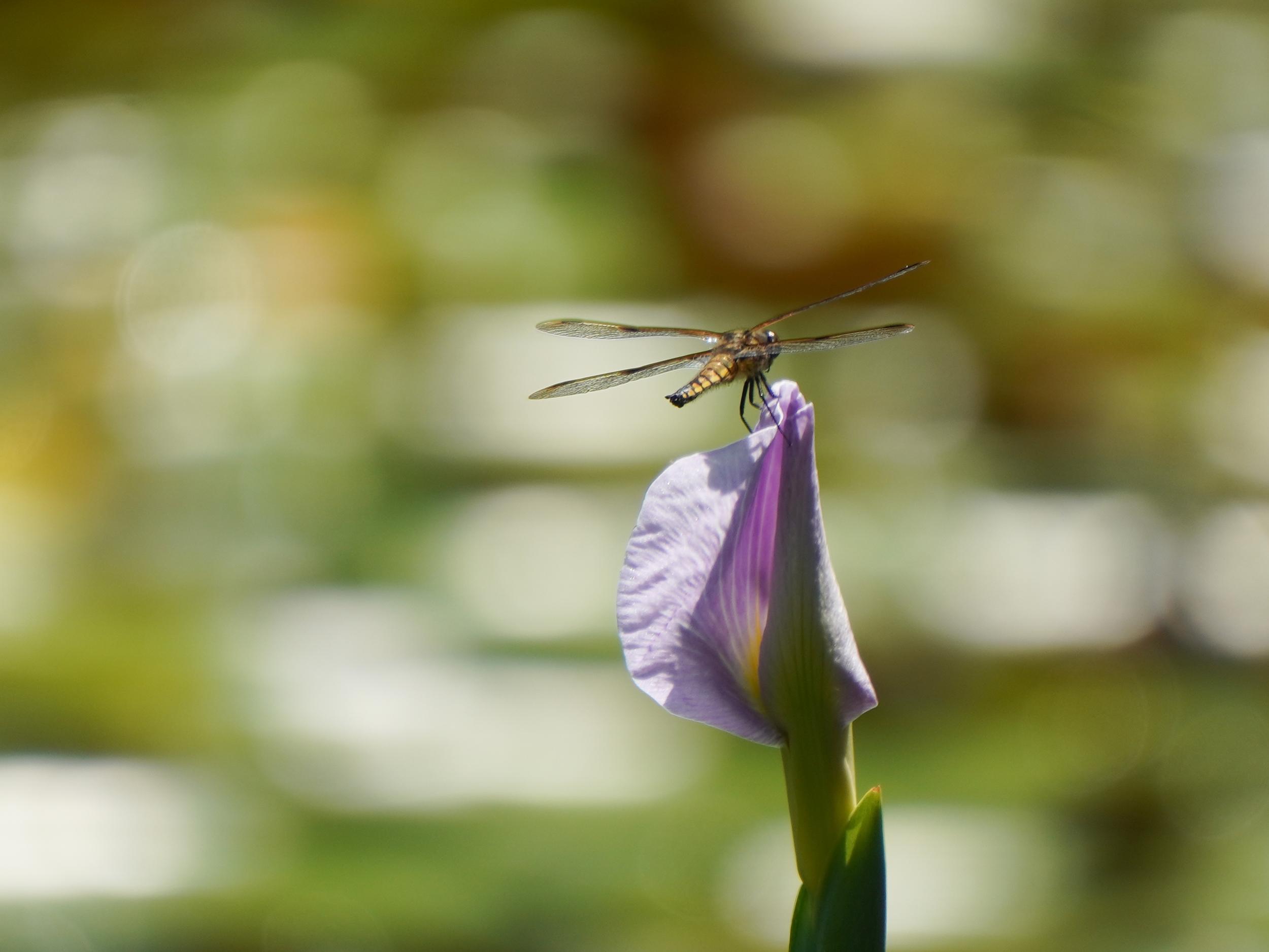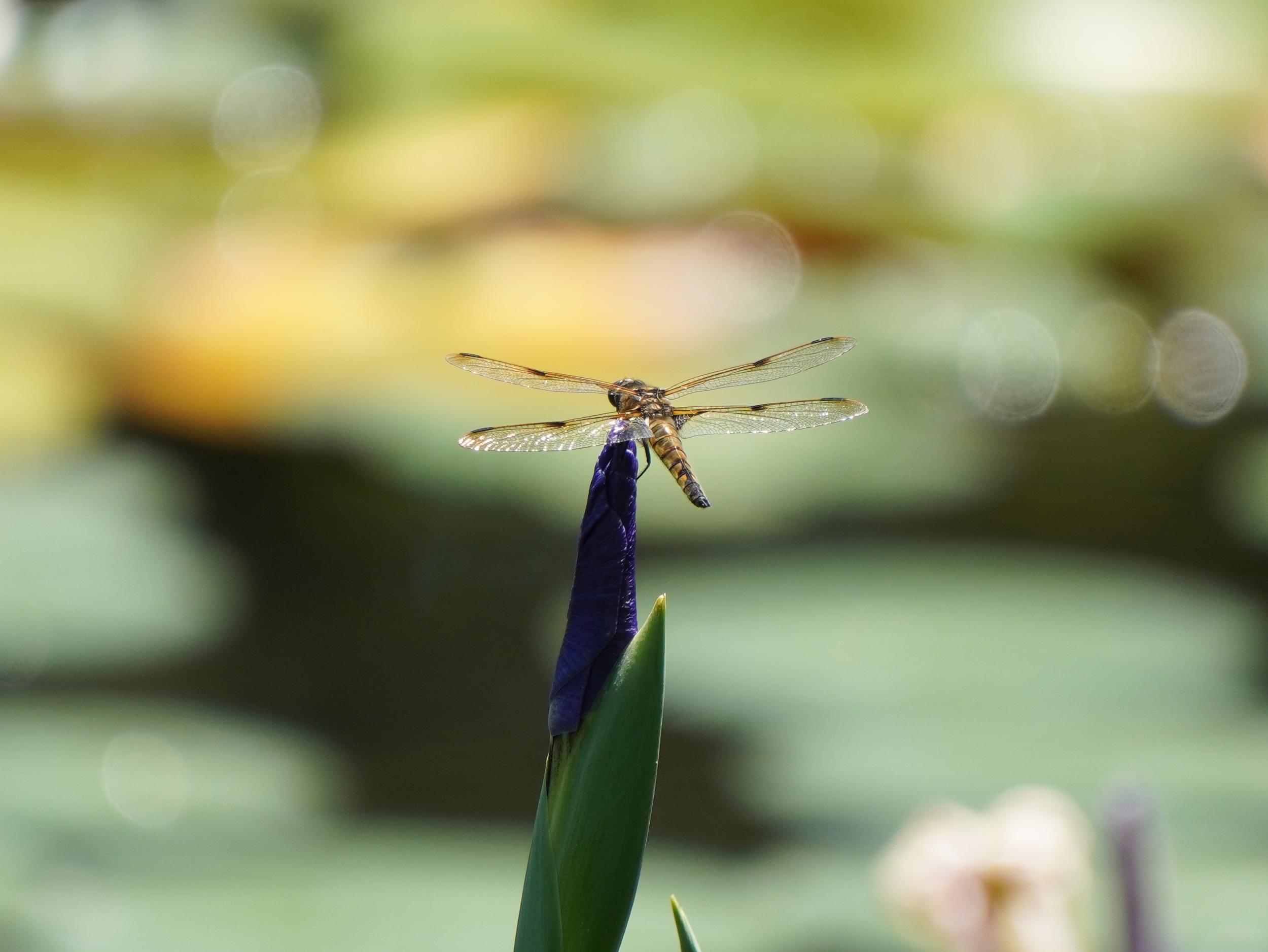 金色のトンボが止まってくれました。ヨツボシトンボです。去年の今時分にも深泥池で会ってます。その前は大田神社のカキツバタ。京都でしか会ったことのない雅なトンボです。