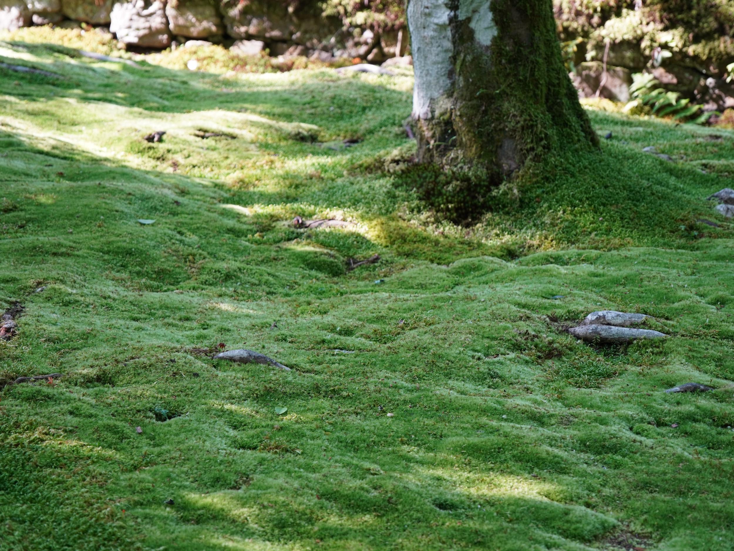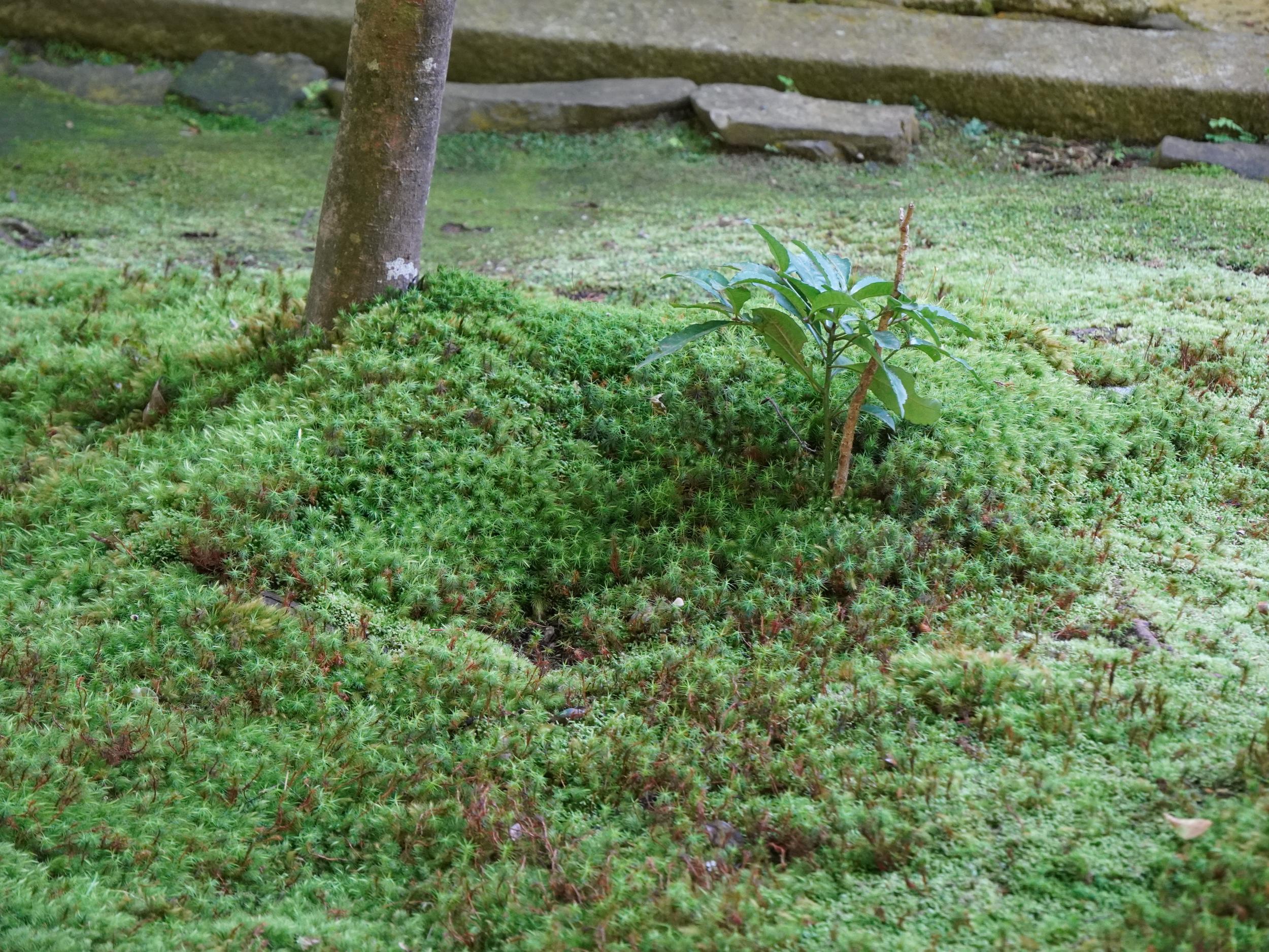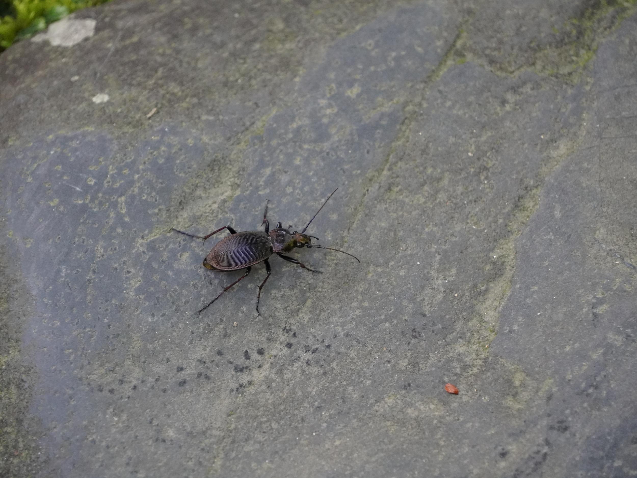 足元にオサムシ。苔の上をハンミョウより少し遅いくらいの速度で駆けて枯れ枝でひと休み。