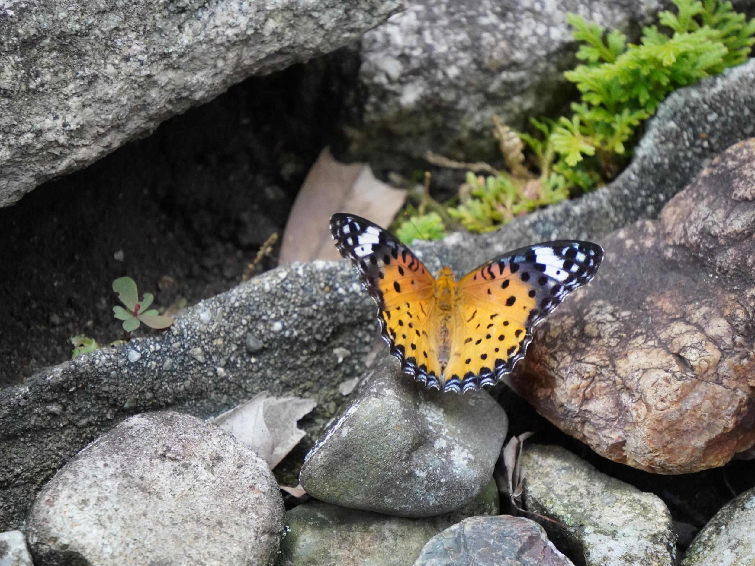 ツマグロヒョウモン♀がずっと一緒に遊んでくれているところにオオシオカラトンボもやってきました。