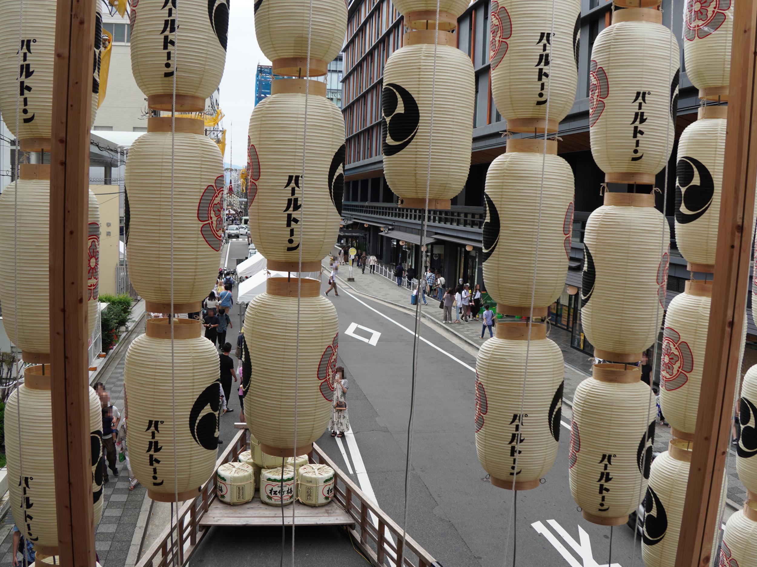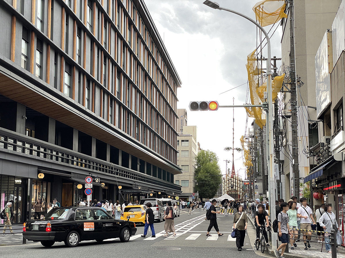 新町通は既にかなりの人人人も、まだ曳き初めまで30分ほどあります。喫煙可のステッカーを貼った喫茶店を見つけちょっといっぷく。メニュー表は紙が貼られていてアイスコーヒーが600円、どうやらお祭りプライスのようです。たぶん100円アップと推測するのですが、せこい、と感じさせます。レギュラーメニューを値上げするのではなく、季節限定の山鉾パフェを1000円で提供するとか、京都商人ならではの工夫がほしいところです。