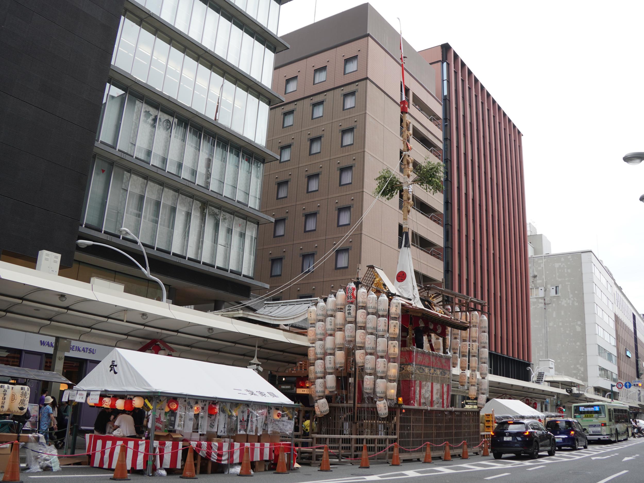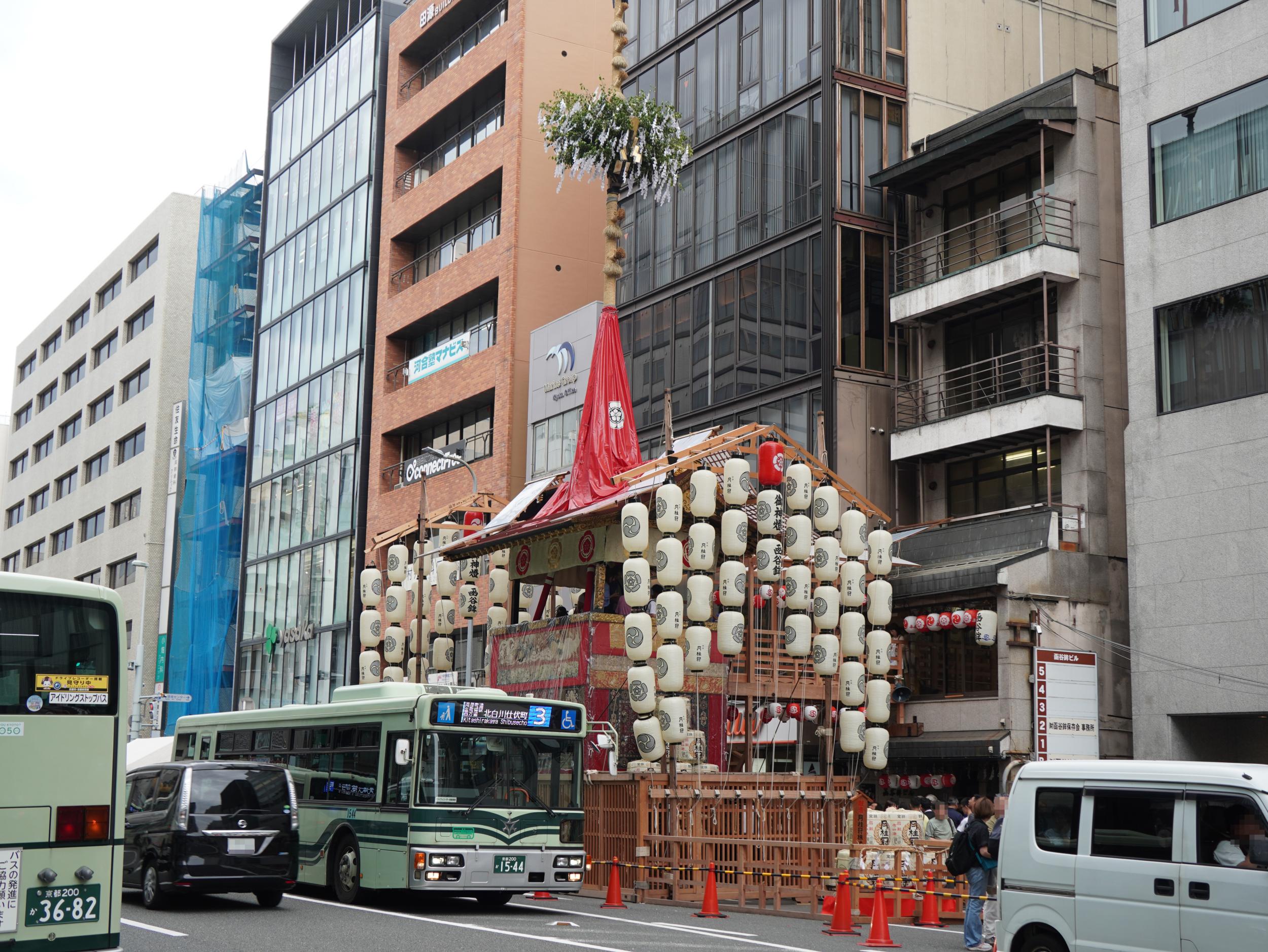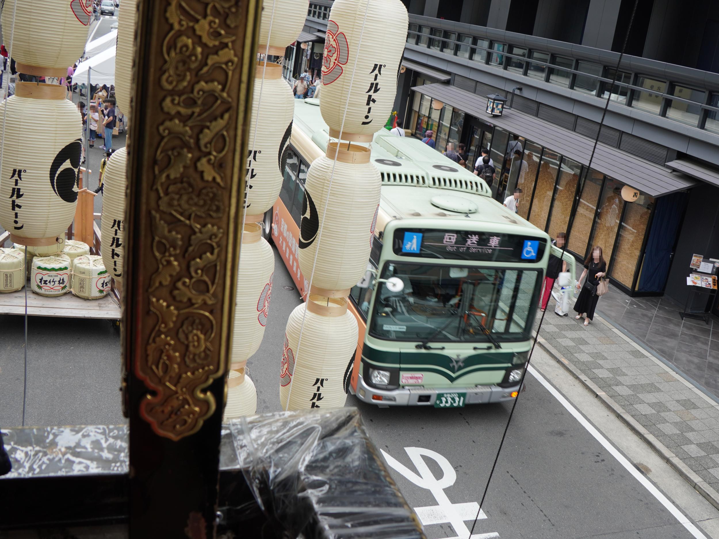 四条通すれすれくらいまで往復の船鉾と岩戸山です。船鉾は艫から戻ってきました。