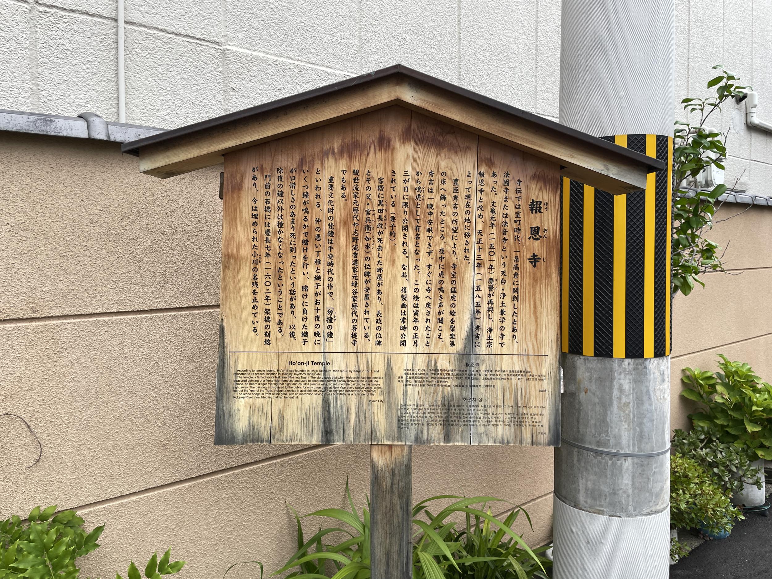 さらに北へ進むと小川跡の百々橋(どどばし)ひろばという小さな公園、応仁の乱ではこの辺りが西軍山名方と東軍細川方の主戦場になっていたこと、それに小川が埋め立てられたのはつい最近で昭和40年だったことが紹介されています。京都の空襲は他都市と較べると限定的だったこともあり、京都の人が「先の大戦」とは応仁の乱を指すというのもあながちジョークとは言い切れないと分かります。しかしながら京都も原爆投下のターゲットにされていたらしく、もし…、と考えるとぞっとします。