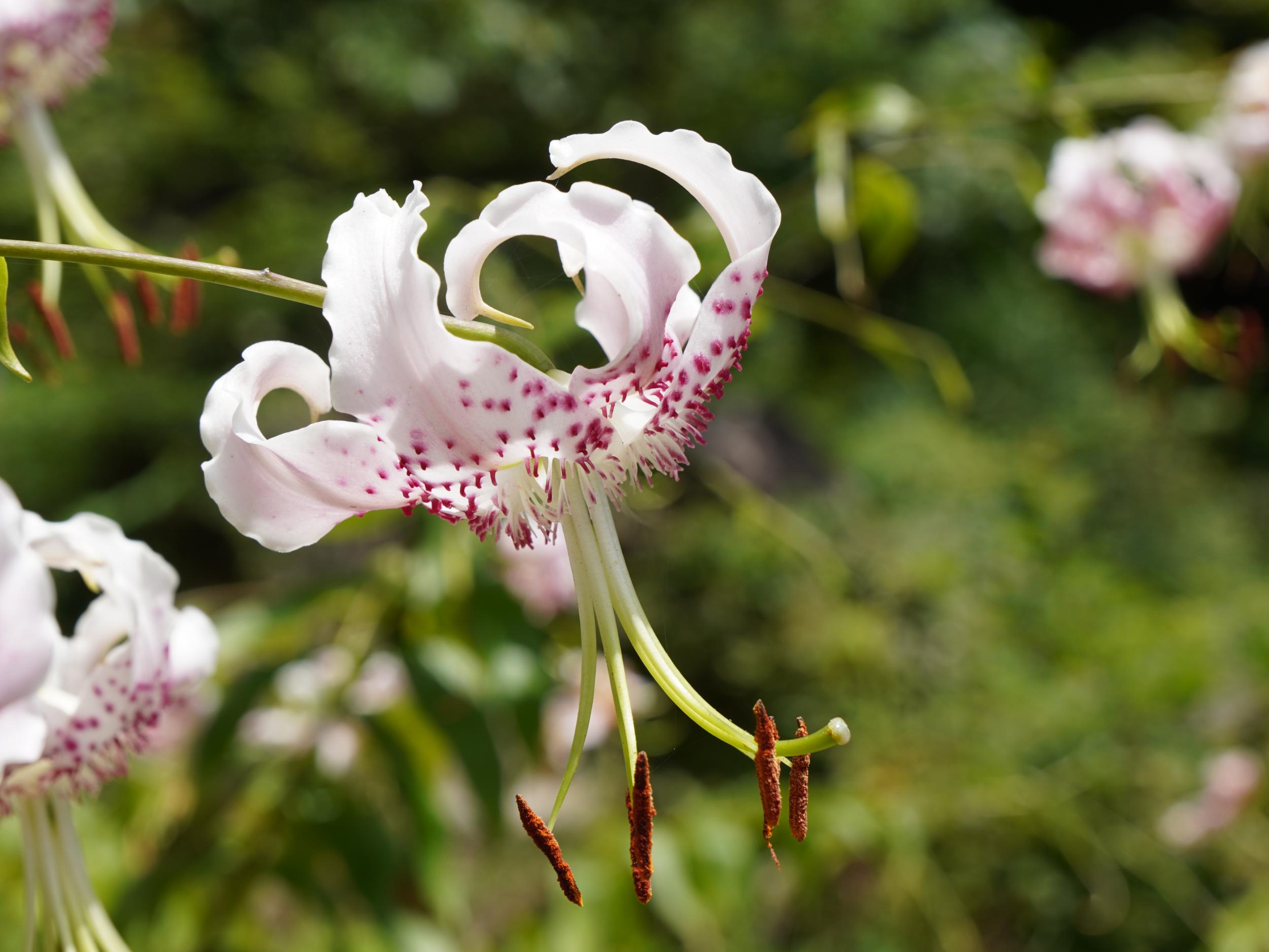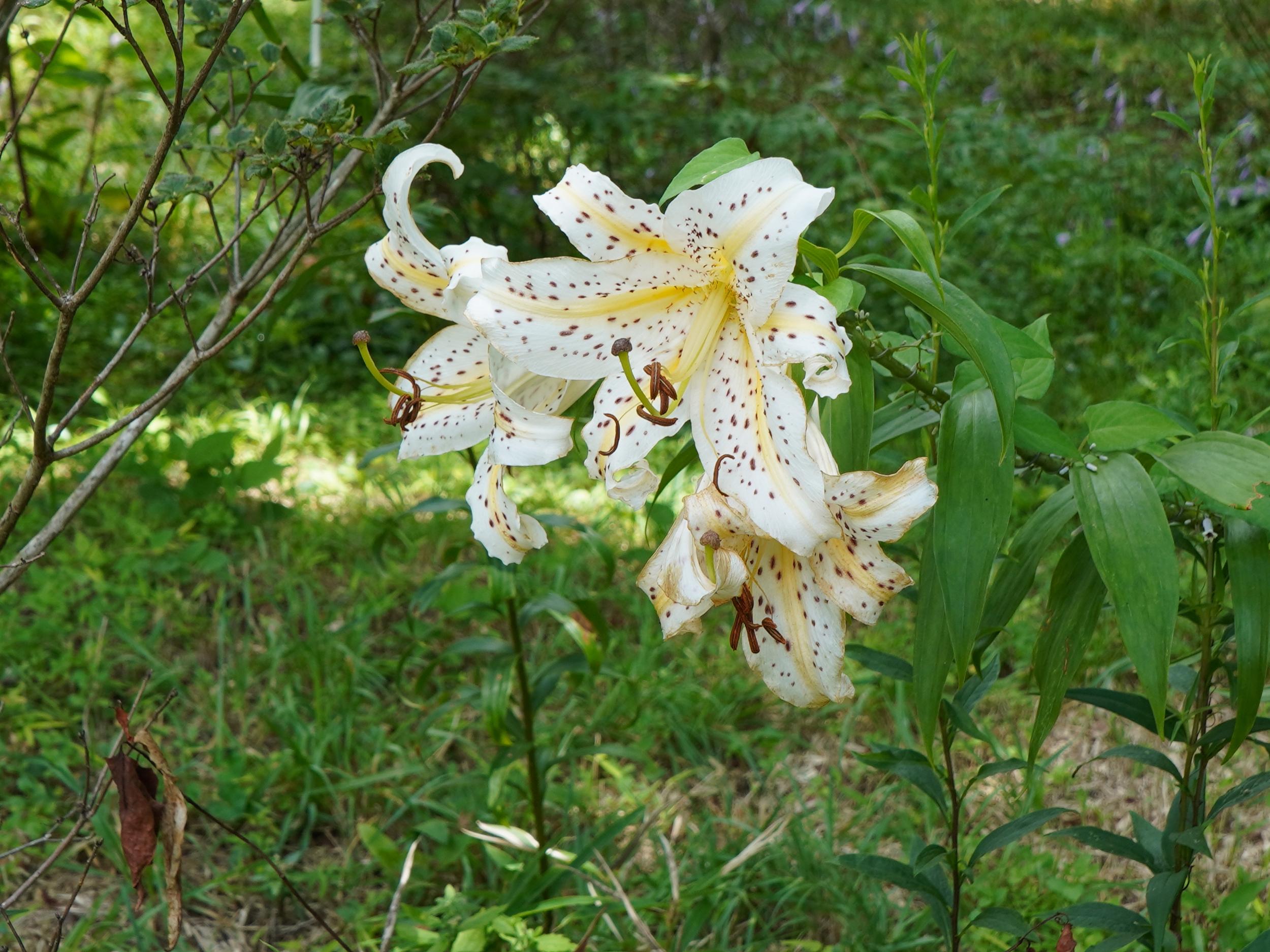 ヤマユリも日本特産のユリ、シーボルトがカノコユリの球根を持ち帰ったように、日本はユリの在来種や固有種の宝庫、カサブランカをはじめ世界中で親しまれている園芸品種のユリの多くが日本発祥だそうです(参考)。日本が誇るべき花はサクラだけじゃないです。