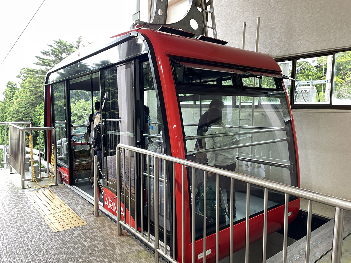 頭上にはロープウェイの乗り場らしきが、でも有馬はこの反対方向のはず。ウチへ帰ってから頭上の乗り場らしきは平成16年に休止となったケーブル六甲山上方面への乗り場と分かりました。廃止じゃなくて休止なのは国立公園内にあり、廃止となると原状復帰させなければならず莫大な費用がかかるためだそうです。待合所には「本日、雷雲接近のため運転を見合わせる恐れがあります」とのお知らせに早く有馬へ下りなきゃと焦っていまったものの、せっかく避暑に来たのにもう少しゆくりしてくれば良かったかも。