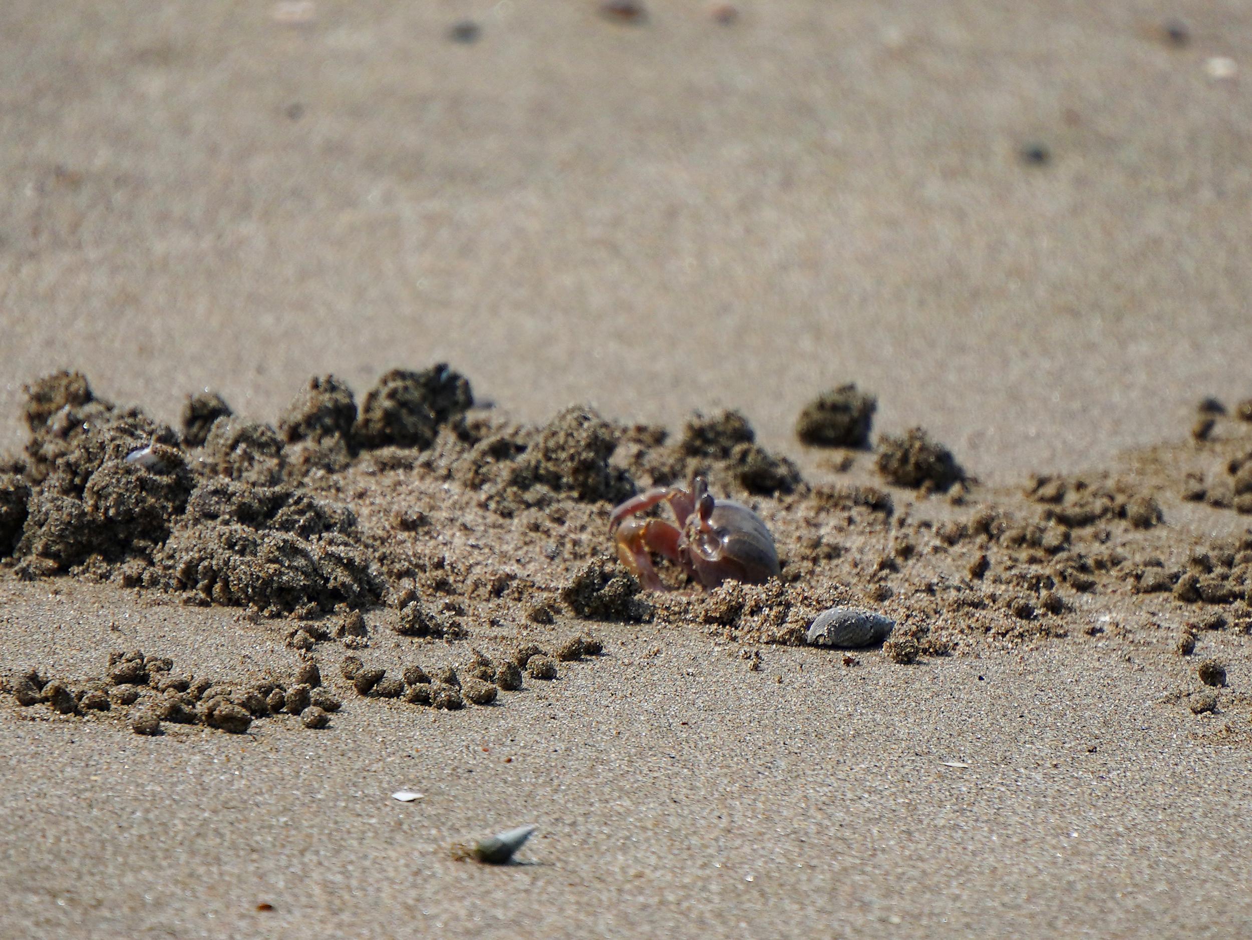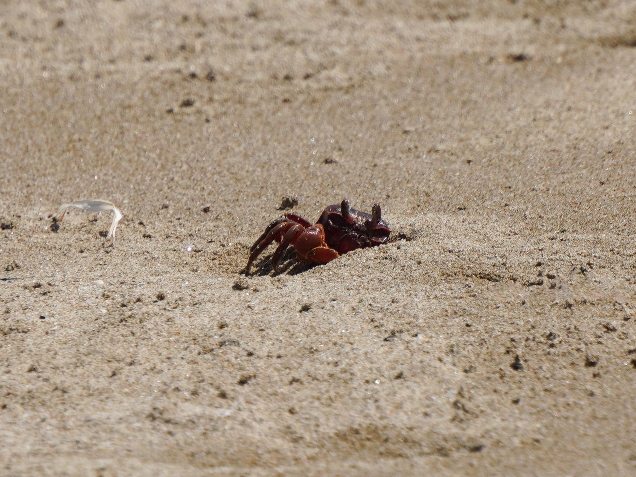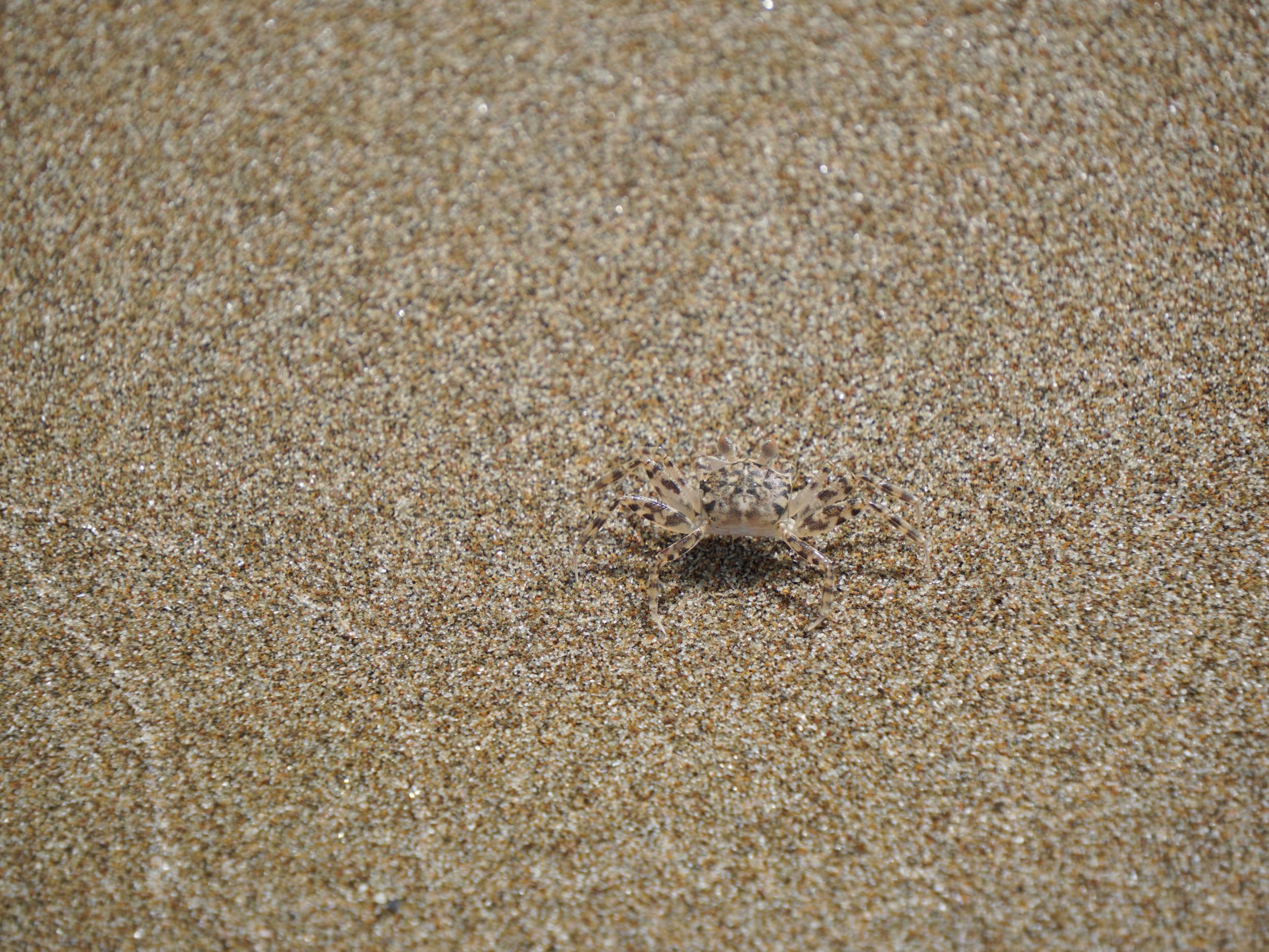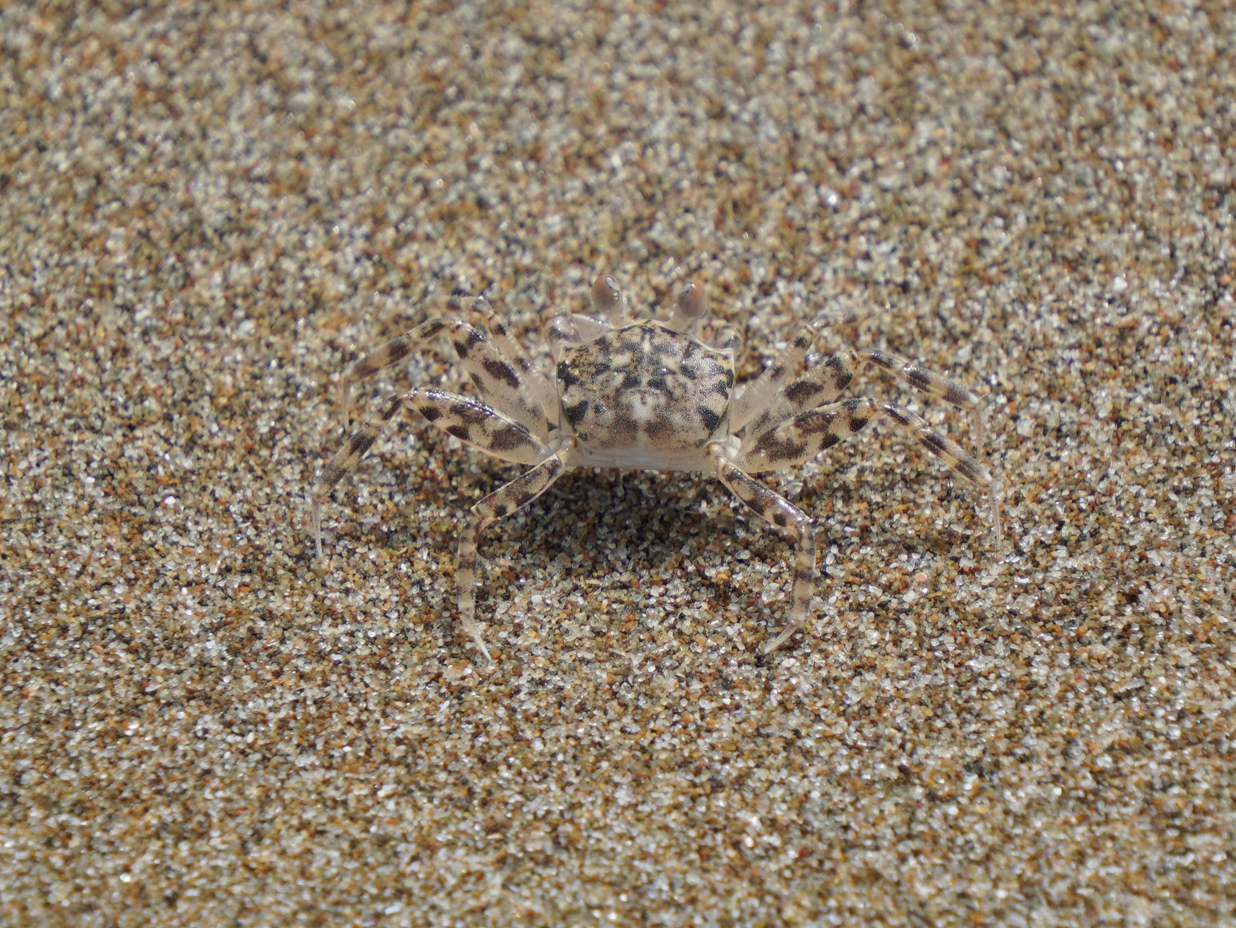 オサガニ科オサガニです。甲羅がすべすべしていて横に長いのも特徴的。泥の中にいるヤマトオサガニと砂の穴にもぐっているオサガニ、生態が全然違ってます。ハサミもかなり小さい。