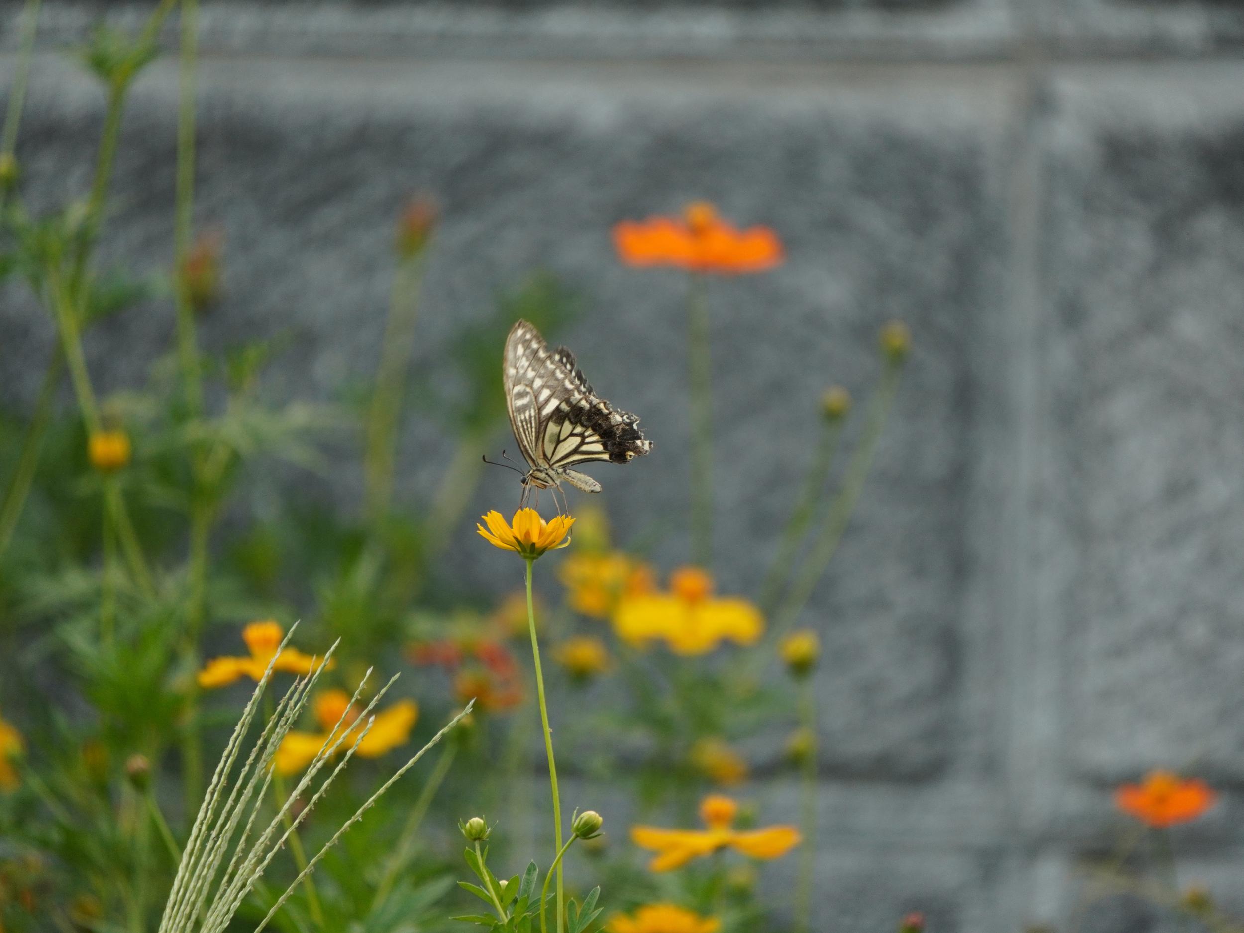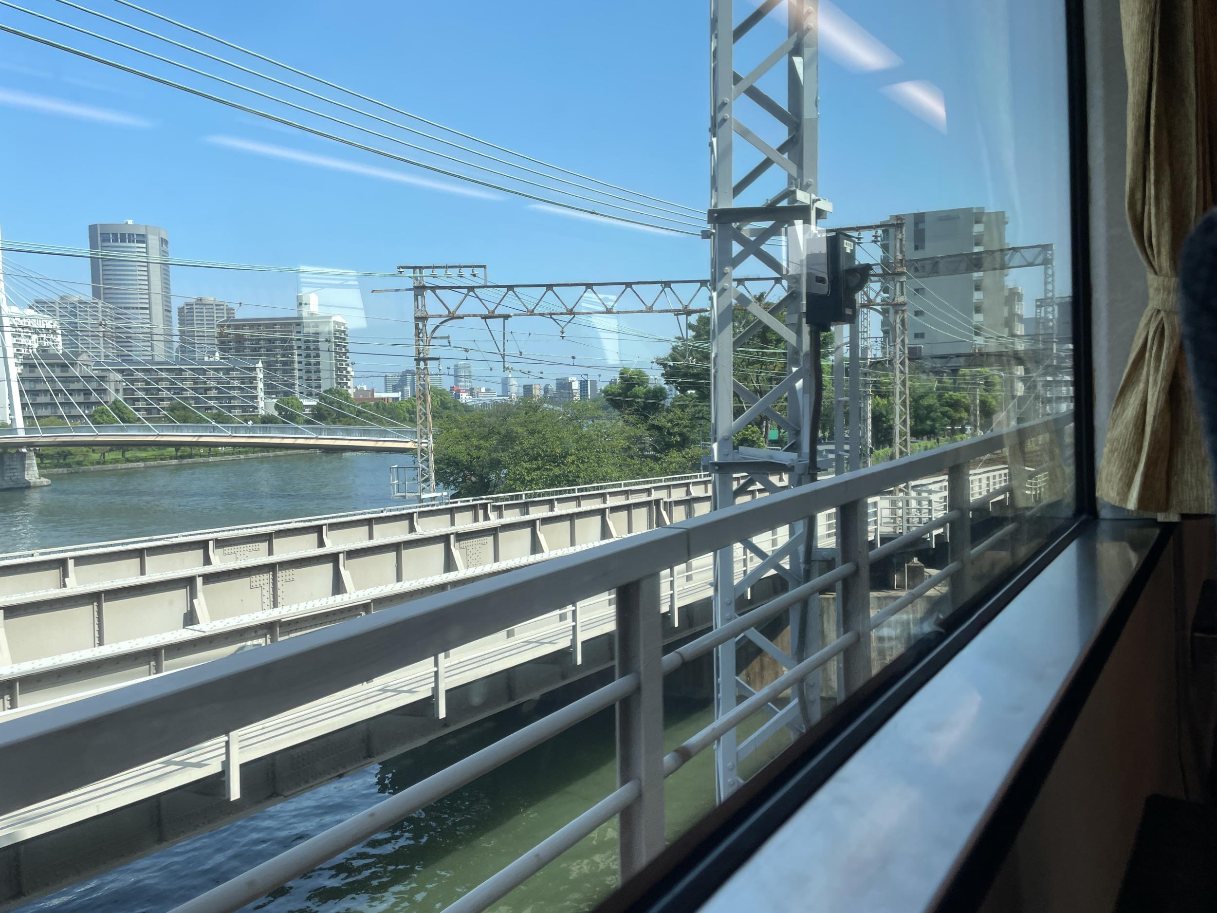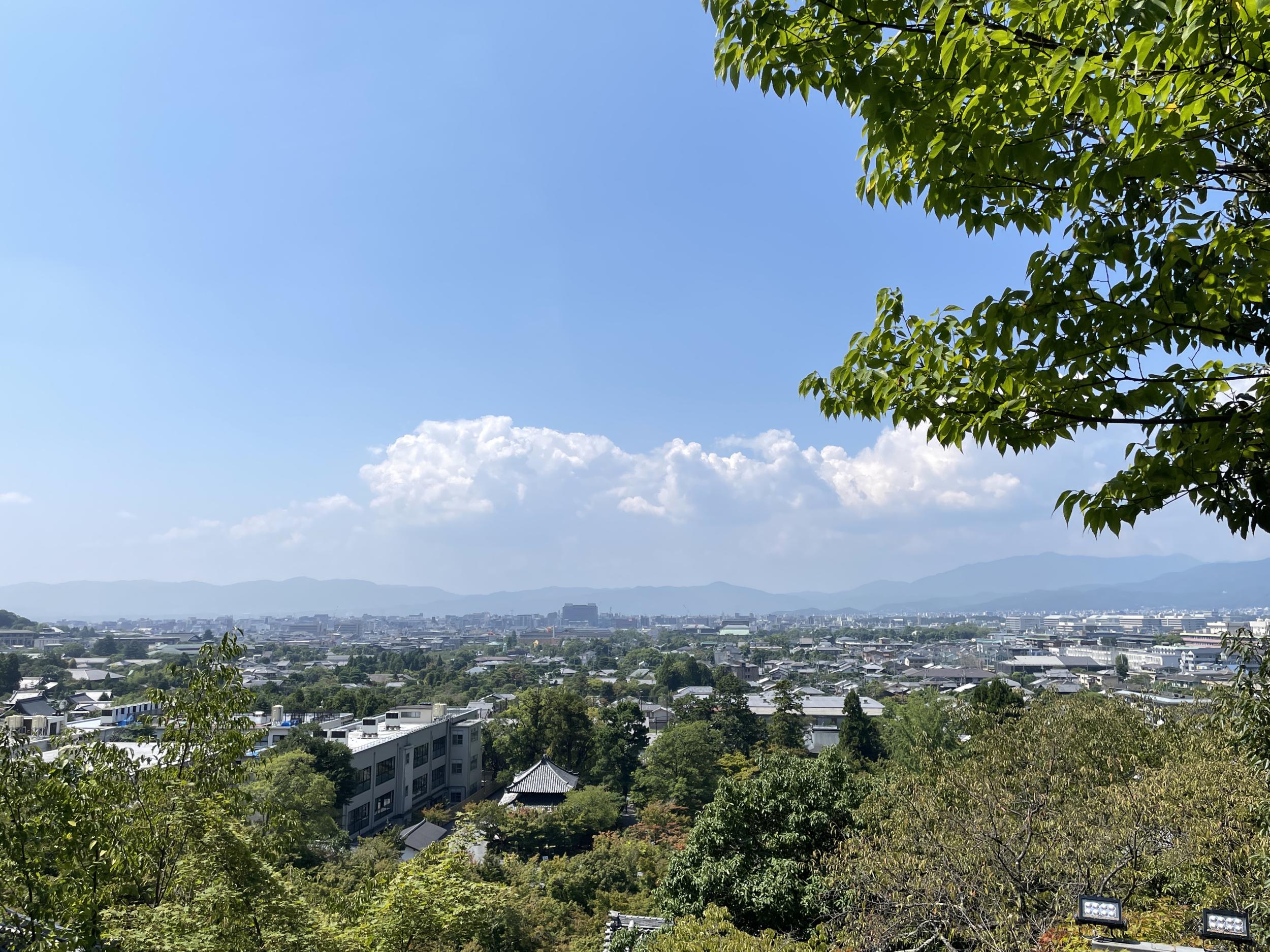 すぐ目に入ってくる金色の像は京セラ美術館で9月1日まで開催されていた「村上隆もののけ京都」展の「お花の親子」、展覧会は終了もまだ撤去されていない様子。その向こうに平安神宮の大鳥居、画面左端に岡崎動物園のレトロ観覧車が見えます。平安時代法勝寺の十三重塔が立っていた場所です。残念ながら5頭の象たちは見えません。