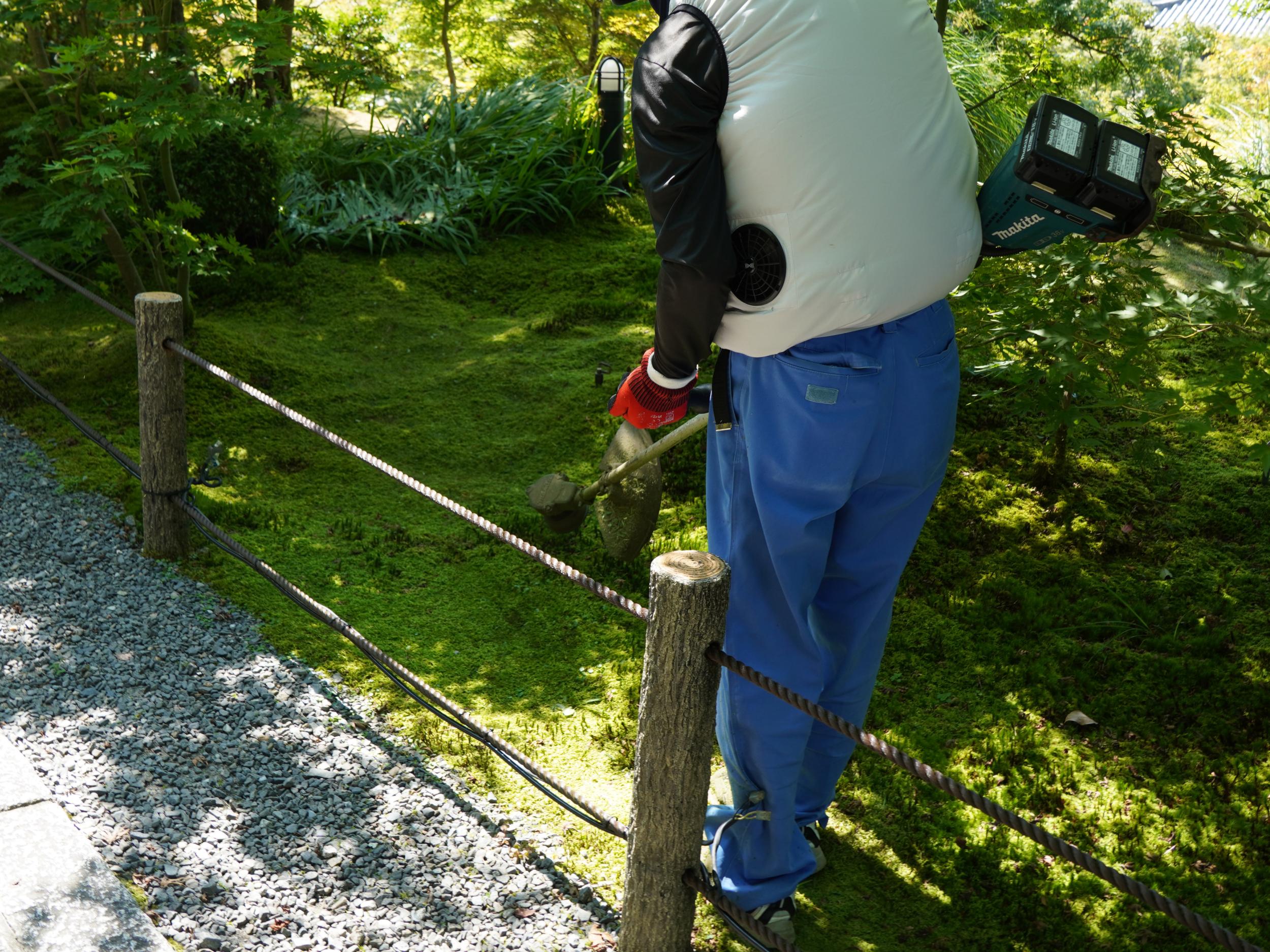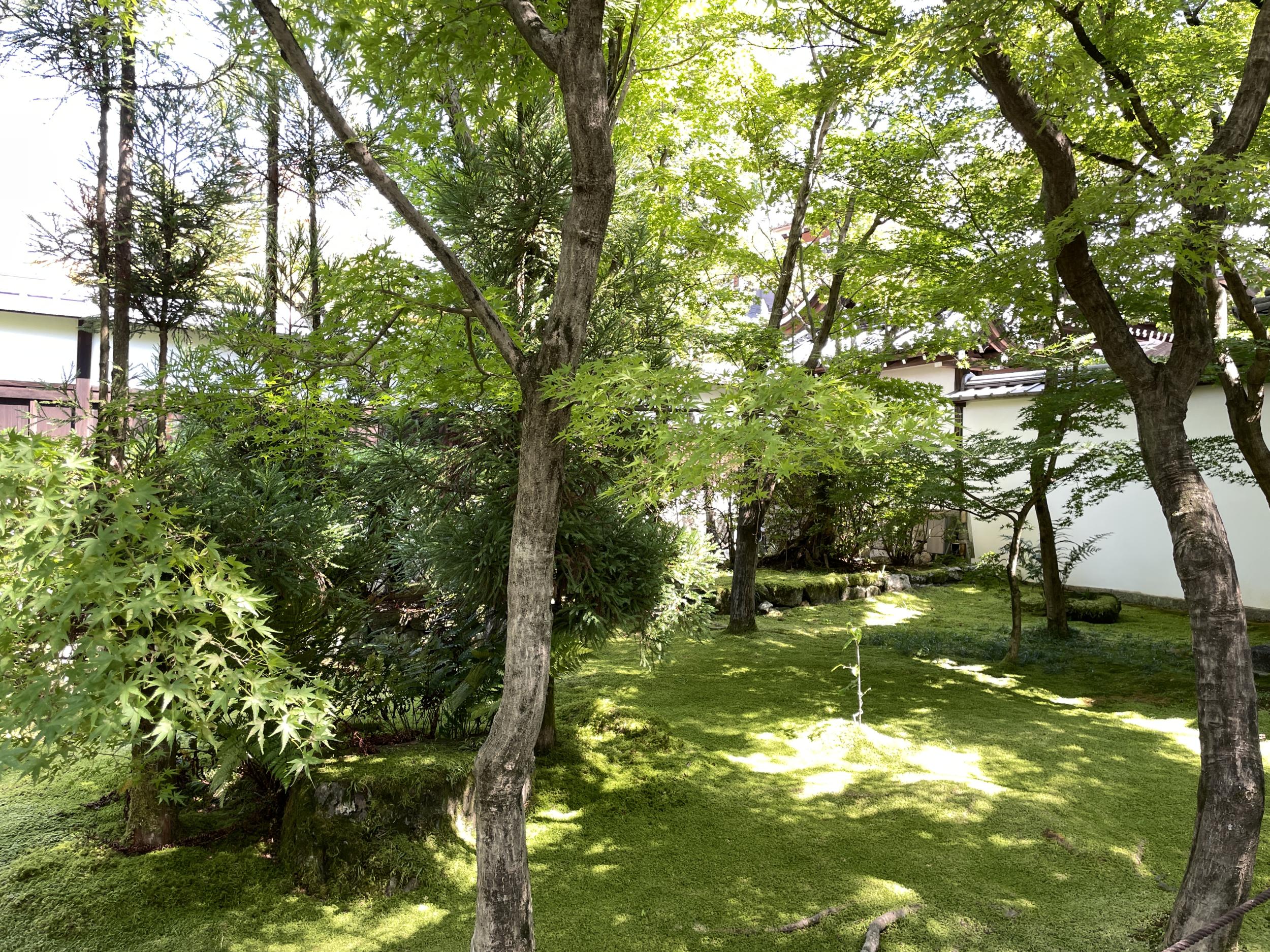 植えられたばかりと思われる地面の青モミジです。中門に戻るとすーっと涼しい風が吹いてきました。たっぷり2時間、テーマパークのように見どころたっぷりの永観堂、まだ見落としたものが少なくないような気がします。多宝塔への石段の手すりに代えてバリアフリーも兼ねて農業用モノレールを設置すればテーマパークのライドになるかと。