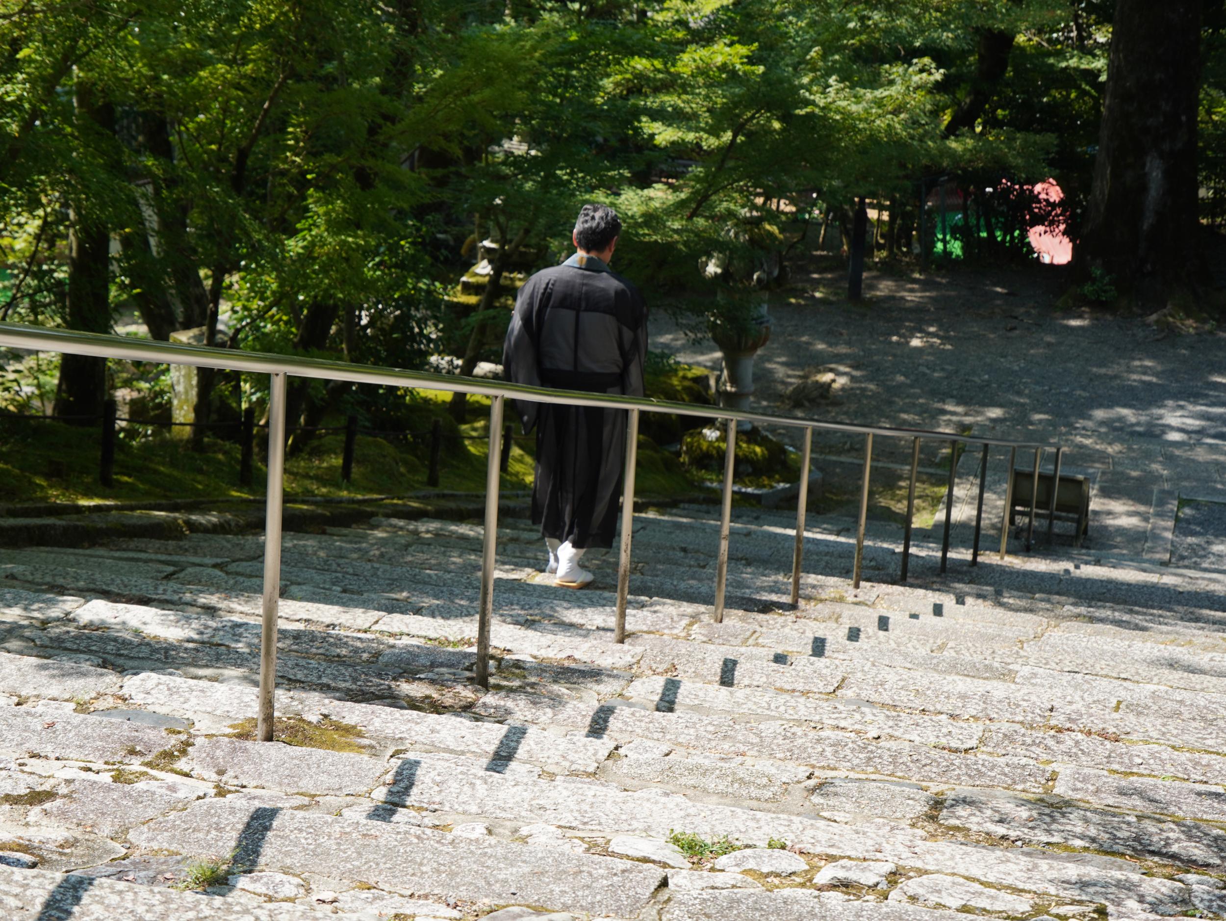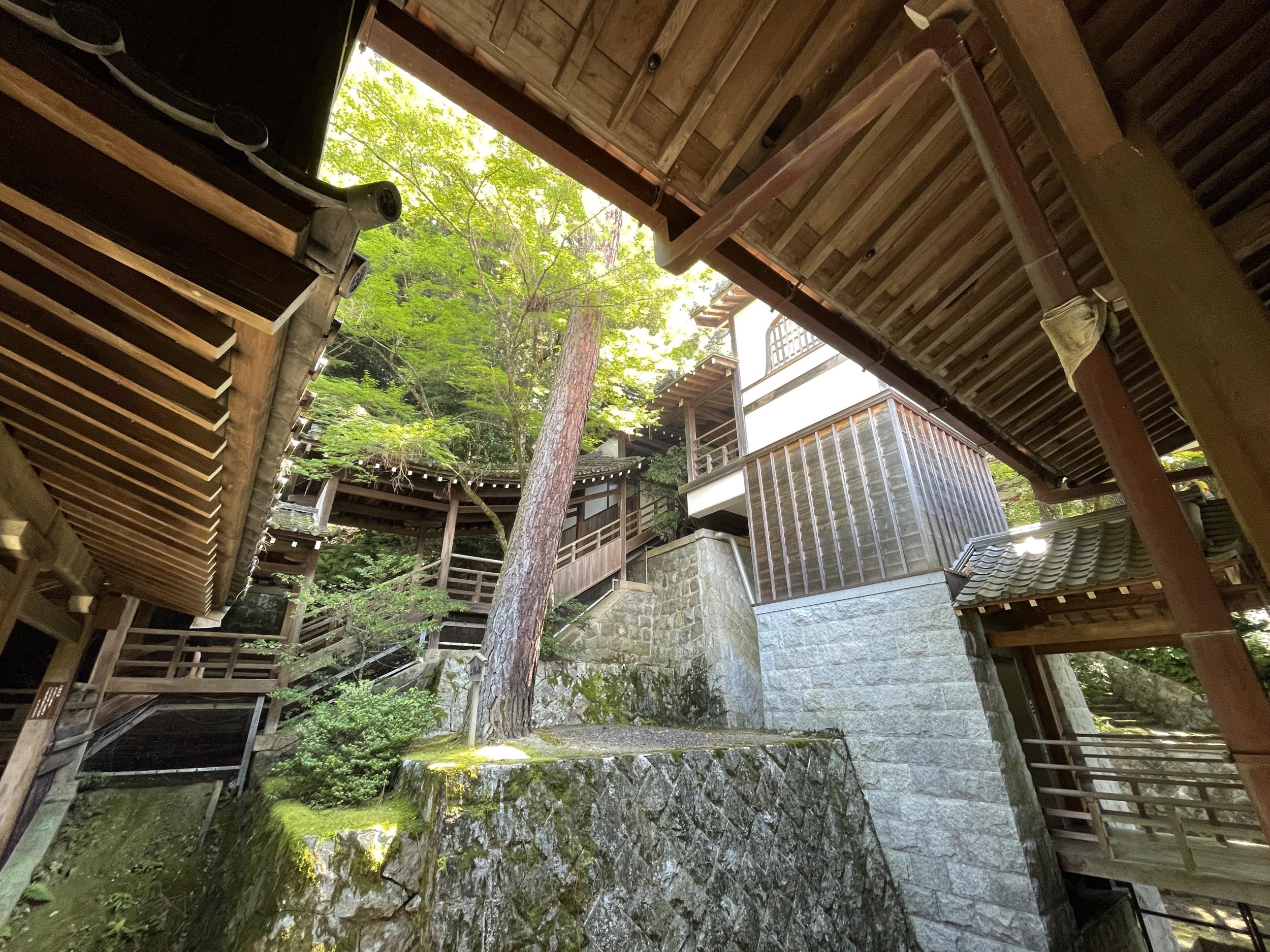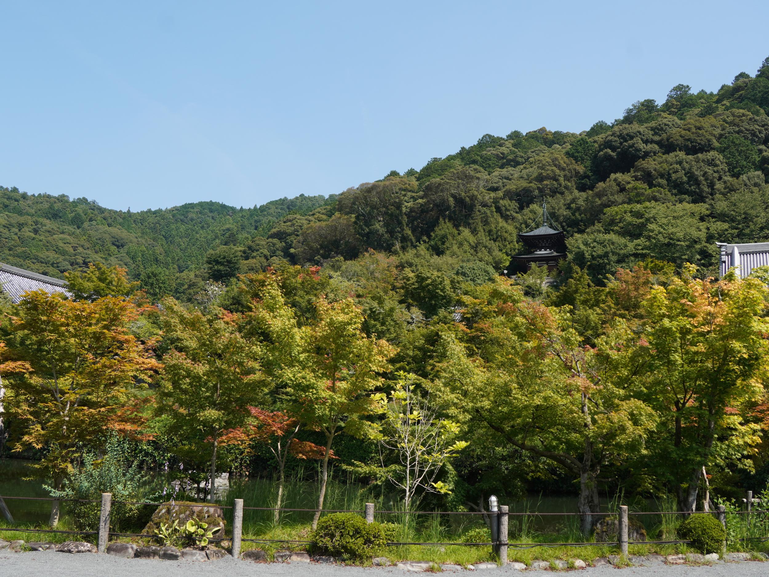 思ったよりずっと広く感じさせる境内、水平方向だけじゃなくて立体的にも堂宇が配置されていて、石段を上るとが臥龍廊つきあたりの開山堂の外に出て来ました。ちょっと嵯峨野の常寂光寺に似た感じです。