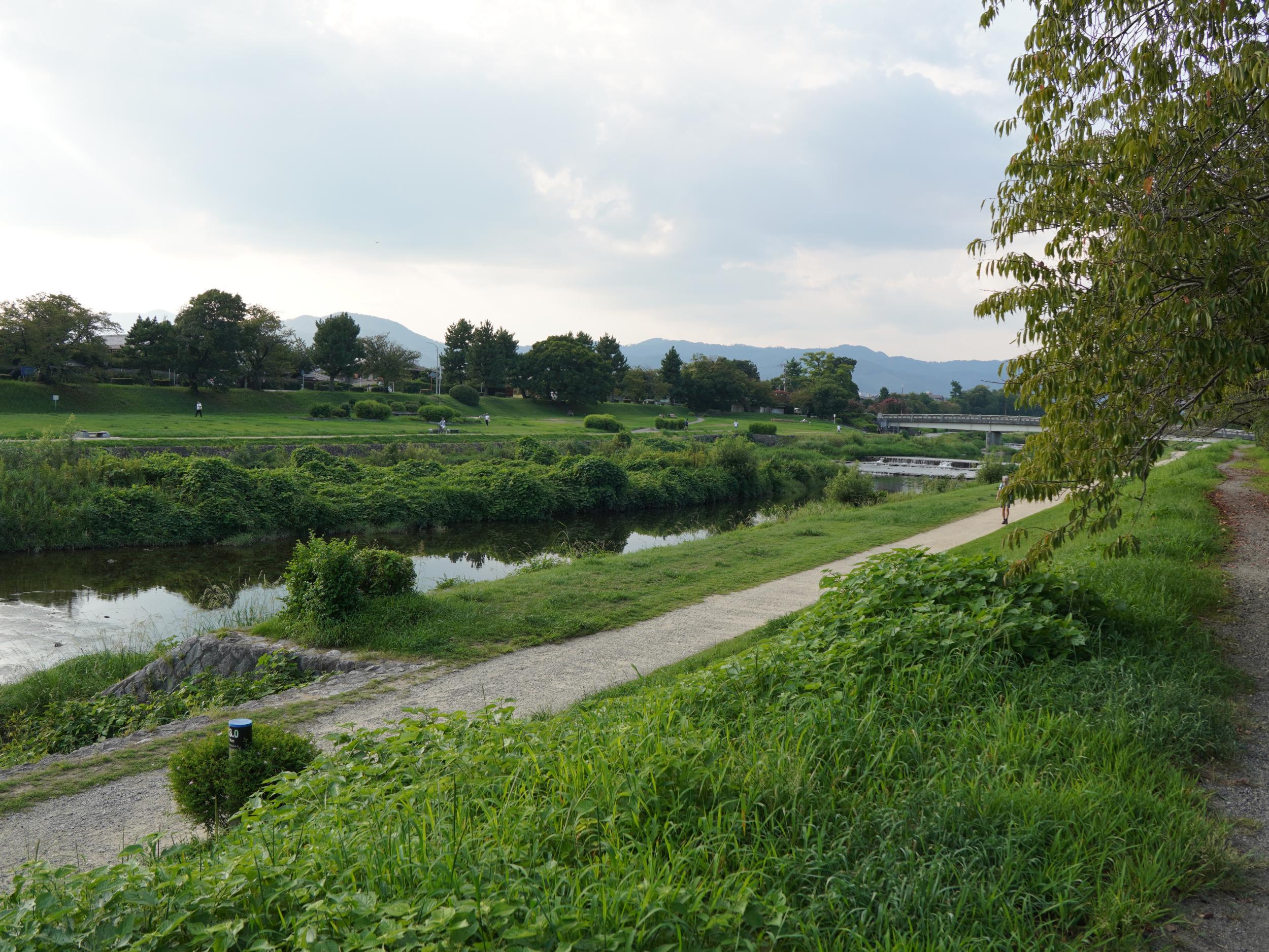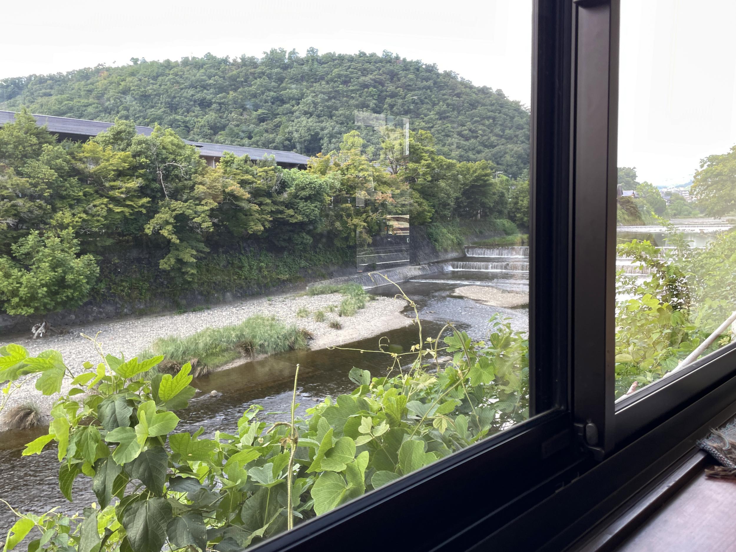 修学院道で下車、次の目的地は高野川辺に立つジュゲムという定食屋さんです。この辺りの高野川は土手の道がなく、お店のすぐ横が高野川、運良く窓際のテーブルがゲットできました。