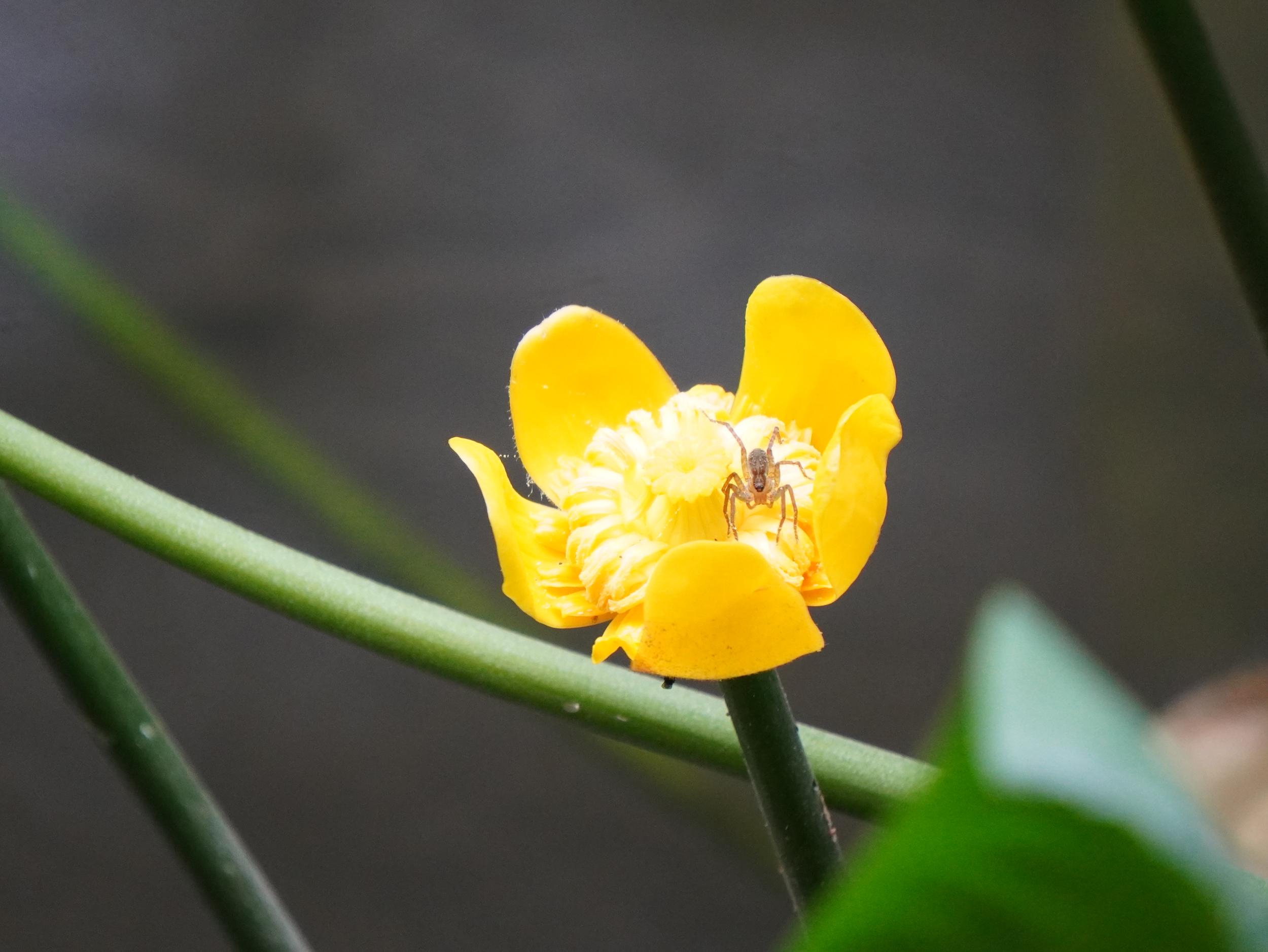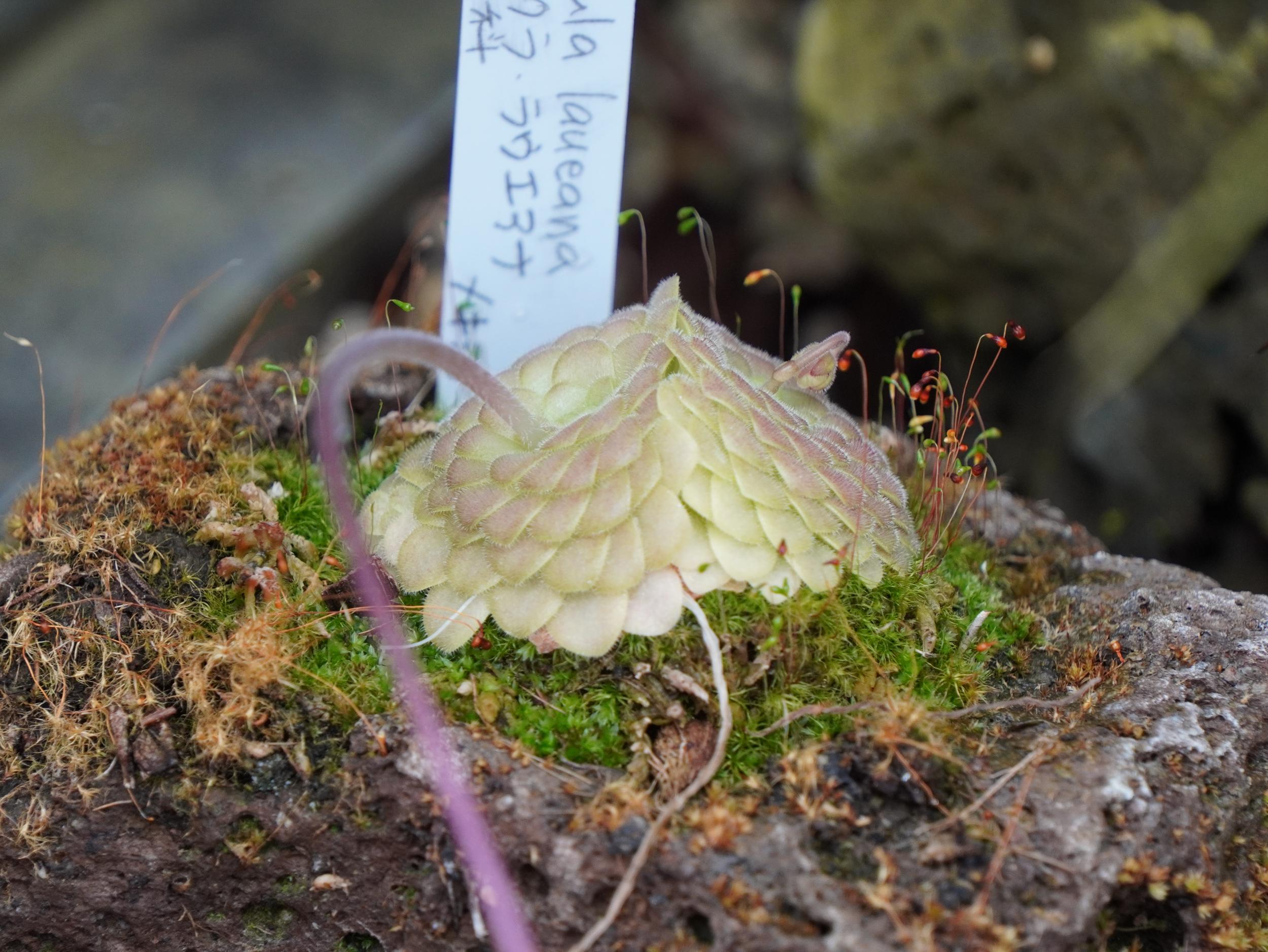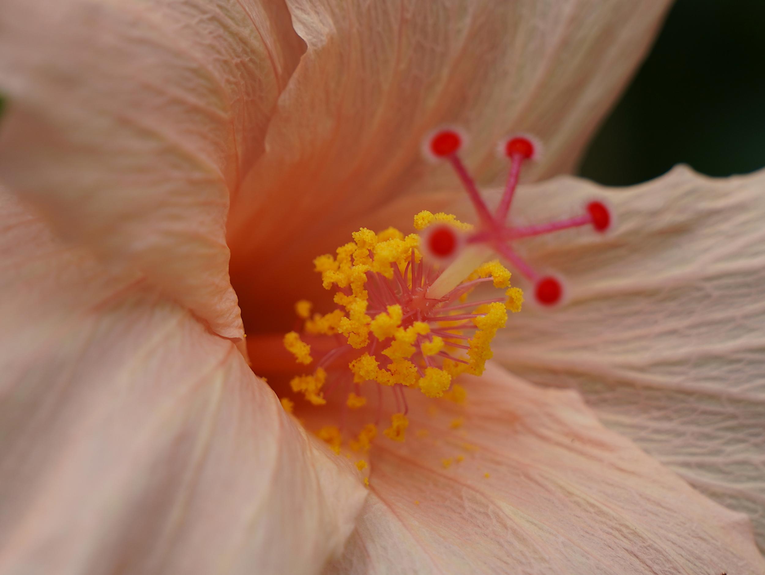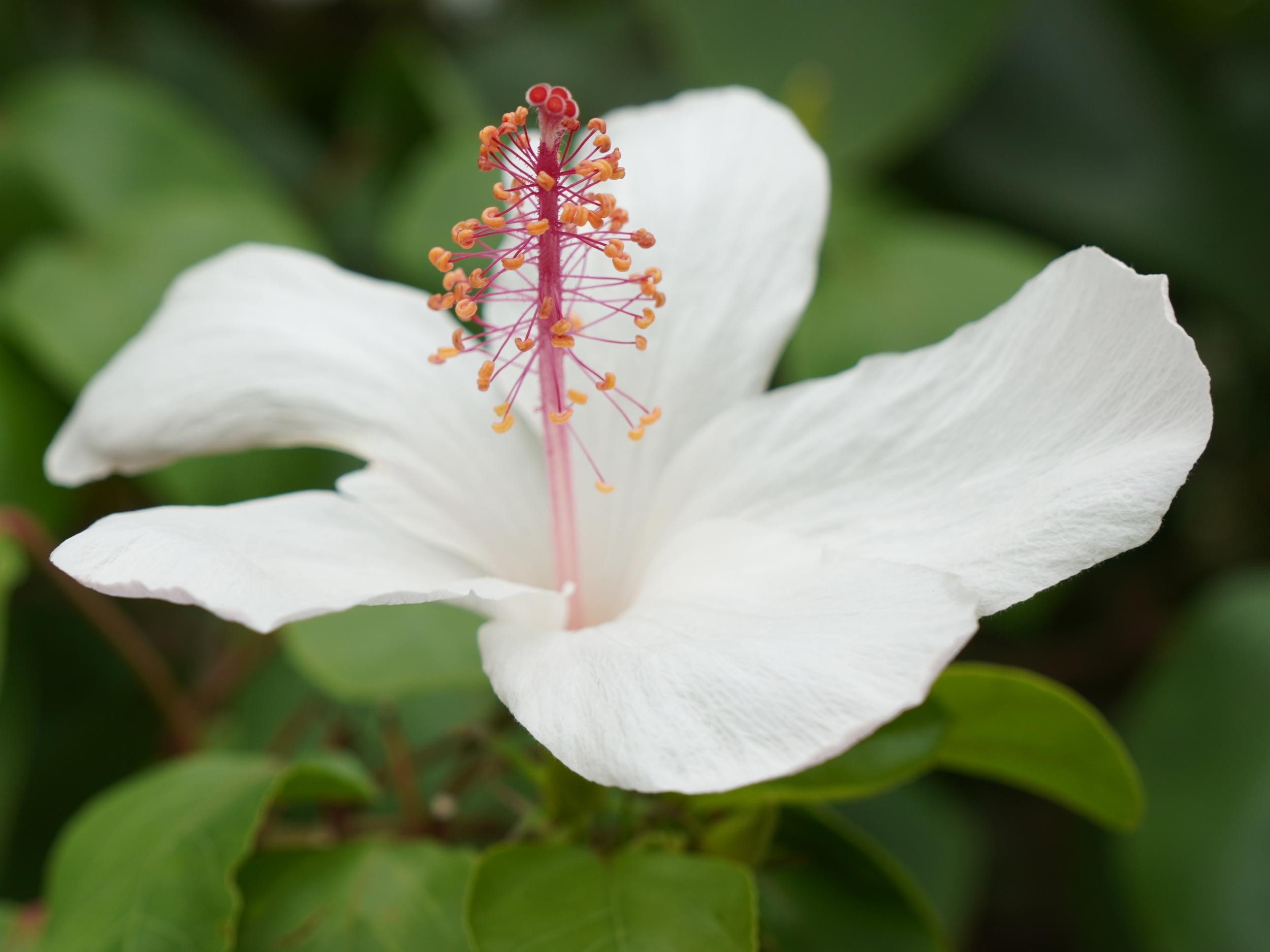 他に類をみない不思議な形の花、サギに見立てられる前方部分は3つに別れた唇弁で両脇はの唇弁はサギの羽のように切れ込んでいます。後方の四角い花びらは側花弁、唇弁と側花弁の間がハイビスカスでも見た雌しべと雄しべの合体した蕊柱で、黄色い部分が花粉が入っている葯室、その先端の粘着帯と呼ばれる白い球体が密を吸いにやってきた虫にくっつき葯から花粉が出てきて別の花へと運ばれるというメカニズムだそうです(参考)。