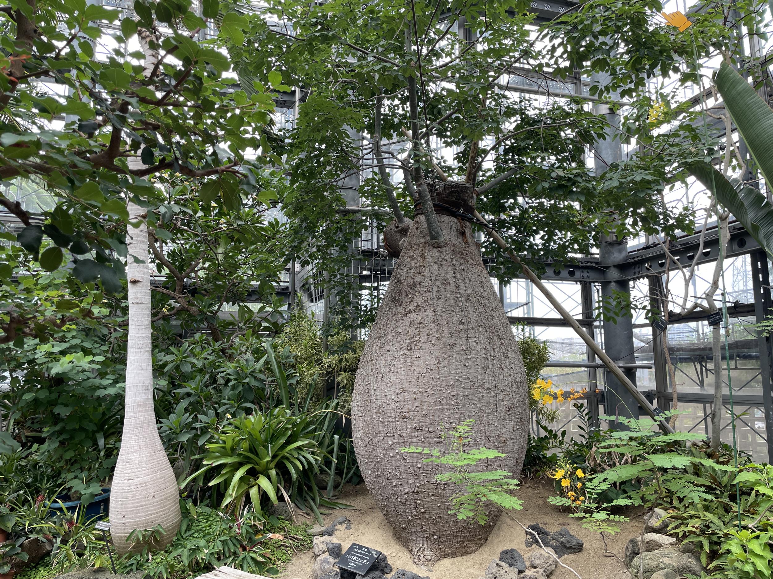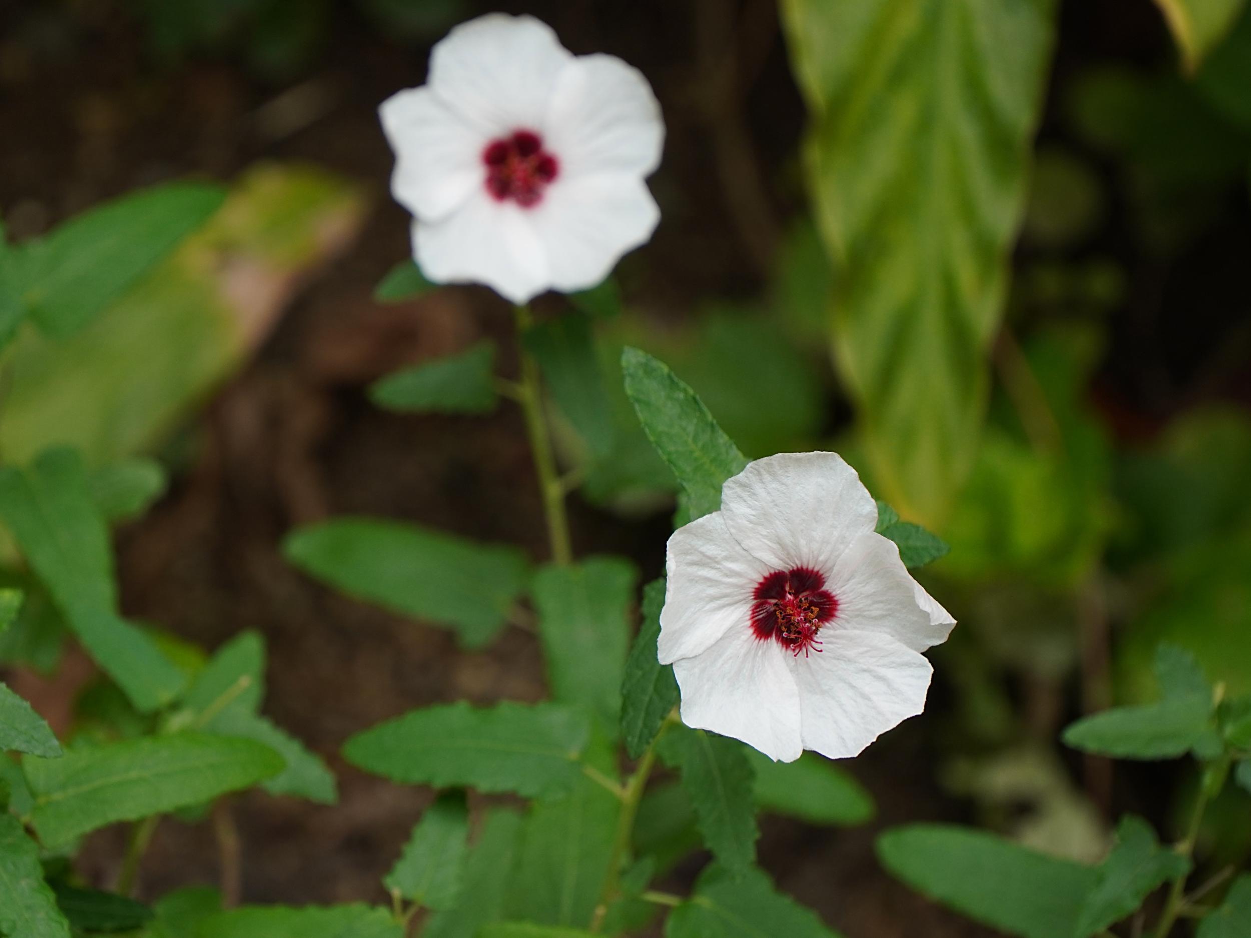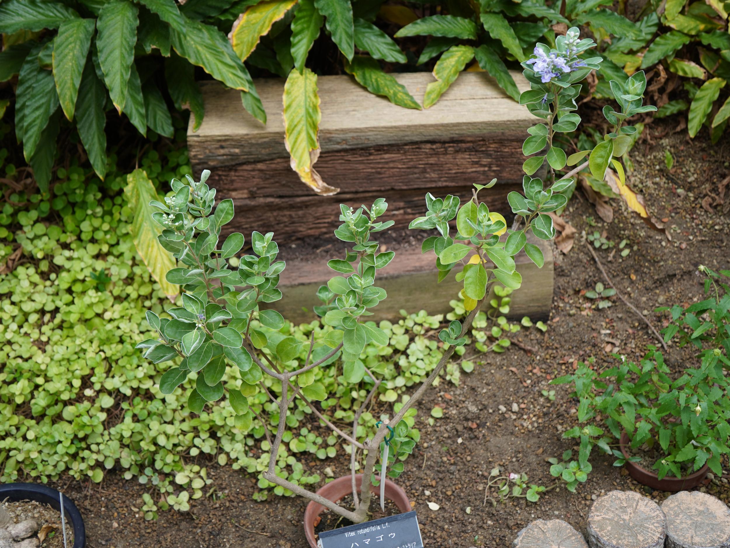 ハマゴウの隣にはヤノネボンテンカ、10月に谷町筋の植栽で咲いている花です。ハマゴウもヤノネボンテンカもなぜ熱帯花木室にあるのかは分かりませんが馴染の花に植物園で会えると嬉しい。