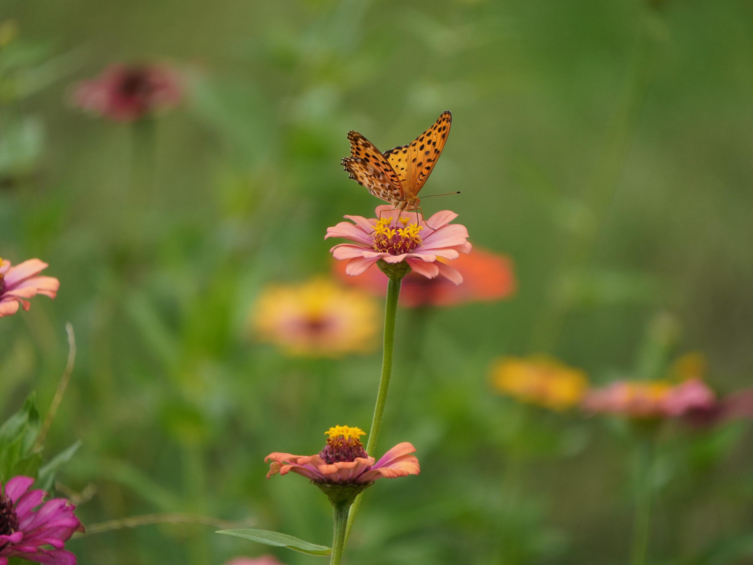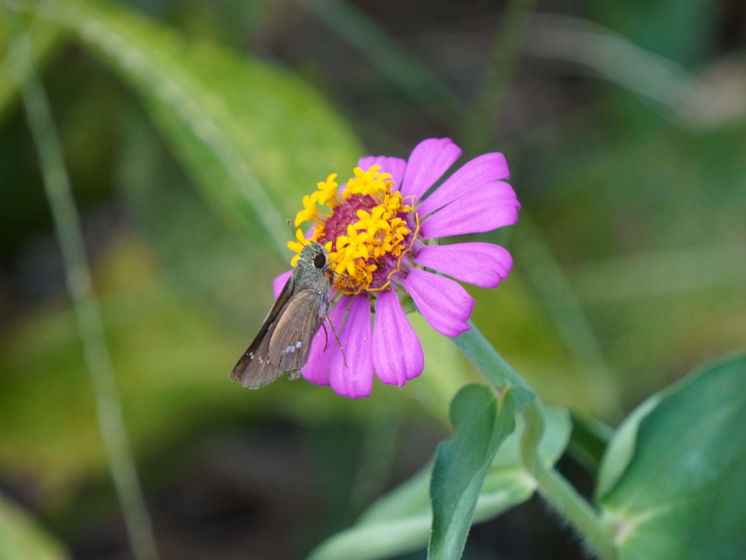 ヒャクニチソウにチャバネセセリ。