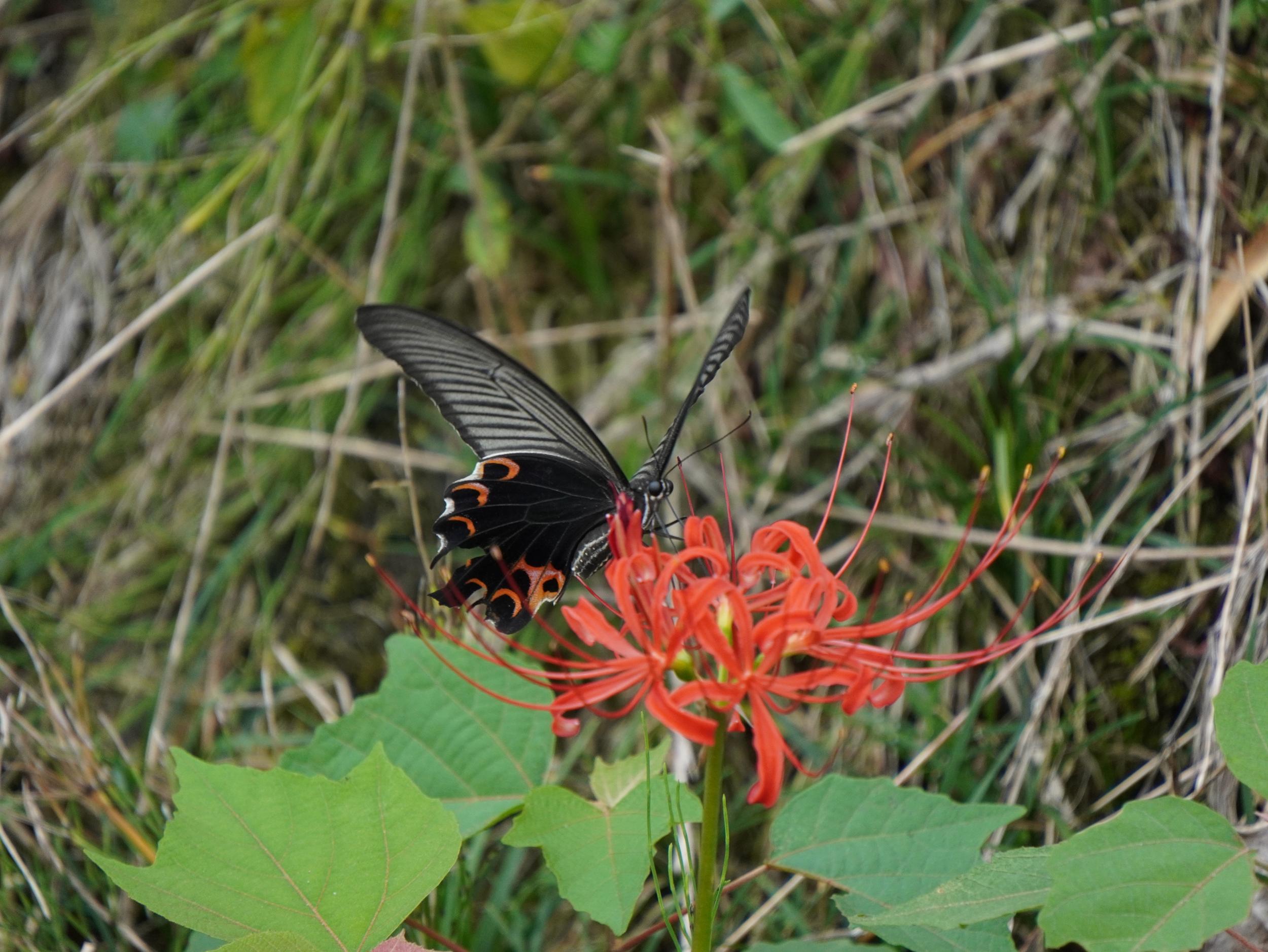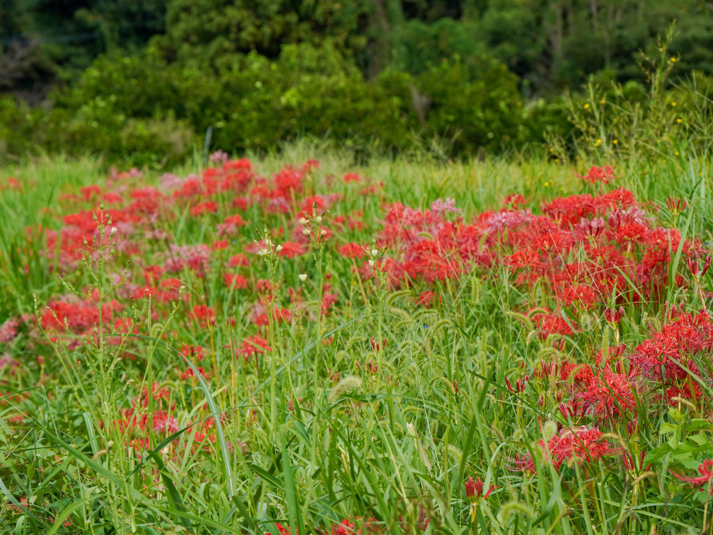 いくらかまとまって咲いているヒガンバナ、まだつぼみがいっぱいで、田んぼの周囲が真っ赤に彩られるまでまだ1週間以上かかりそうです。こんな感じで咲いているヒガンバナを期待していたのですが、今年の夏は暑すぎました。