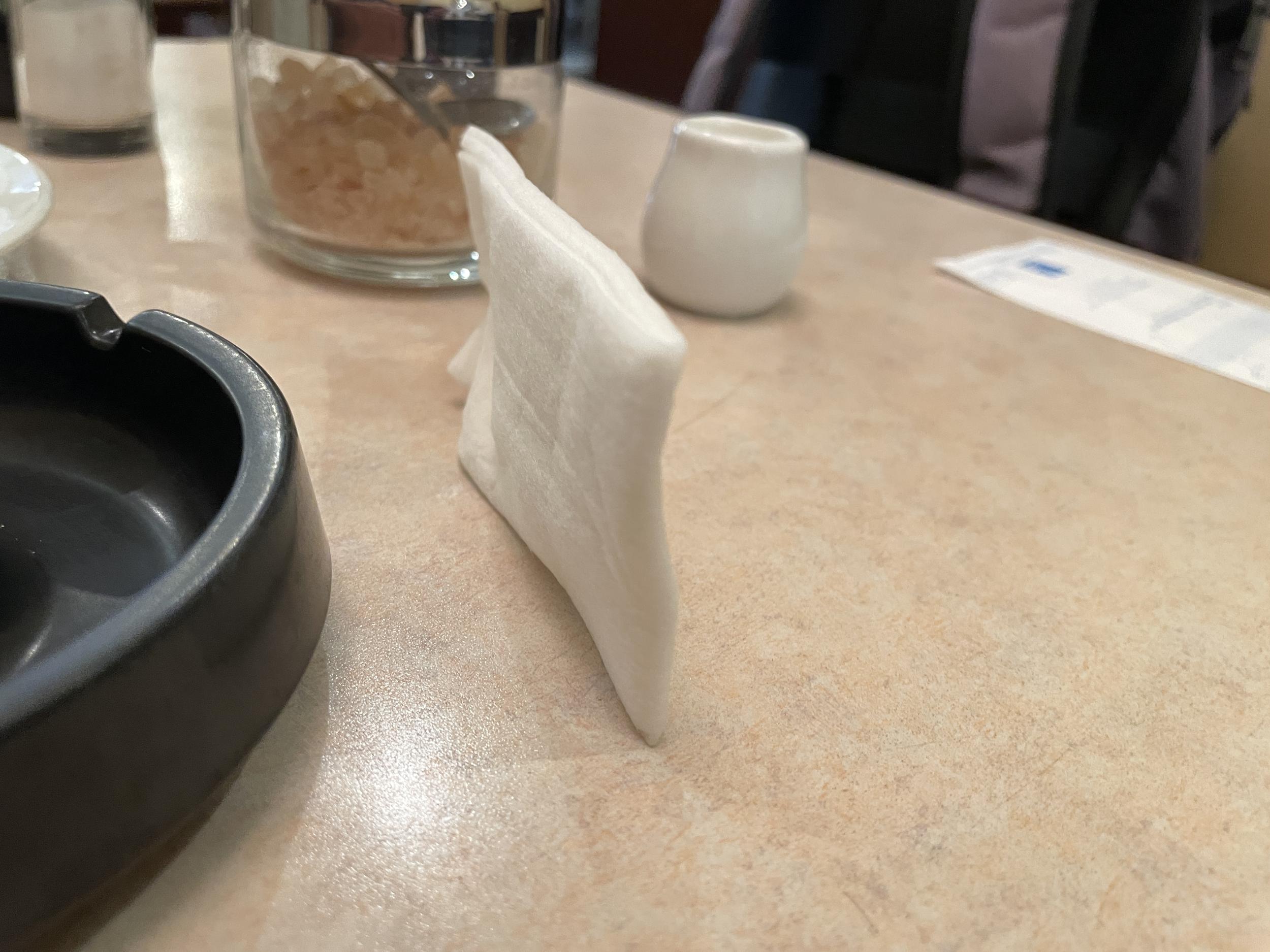 お手拭きが立った