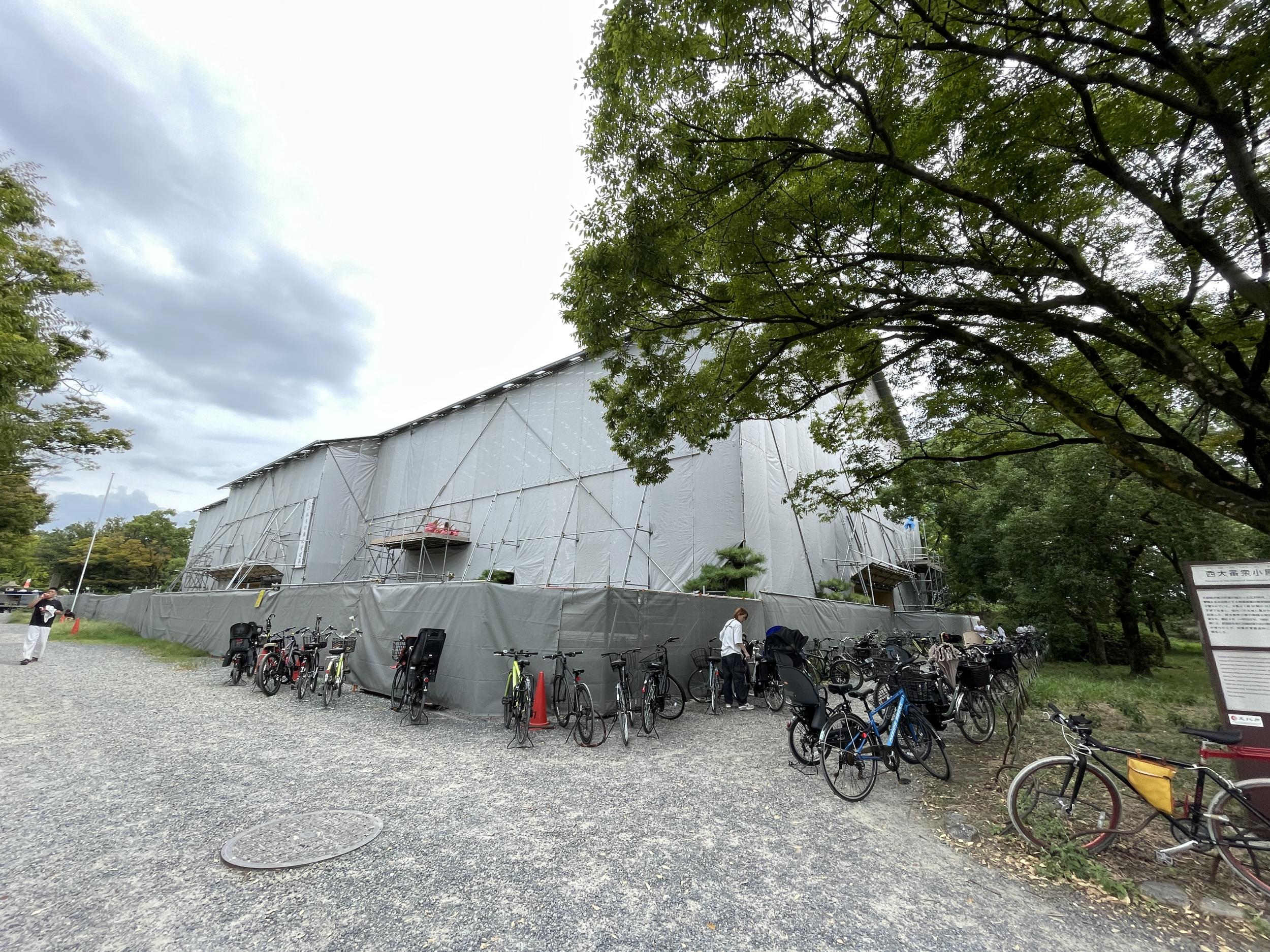 3月以来半年ぶりの登城です。修道館全体が工事用の足場と幕で覆われていたものの、中は使えるようで、柔道の大会が開催されていました。大屋根の工事でやはり来年4月までかかるそうです。