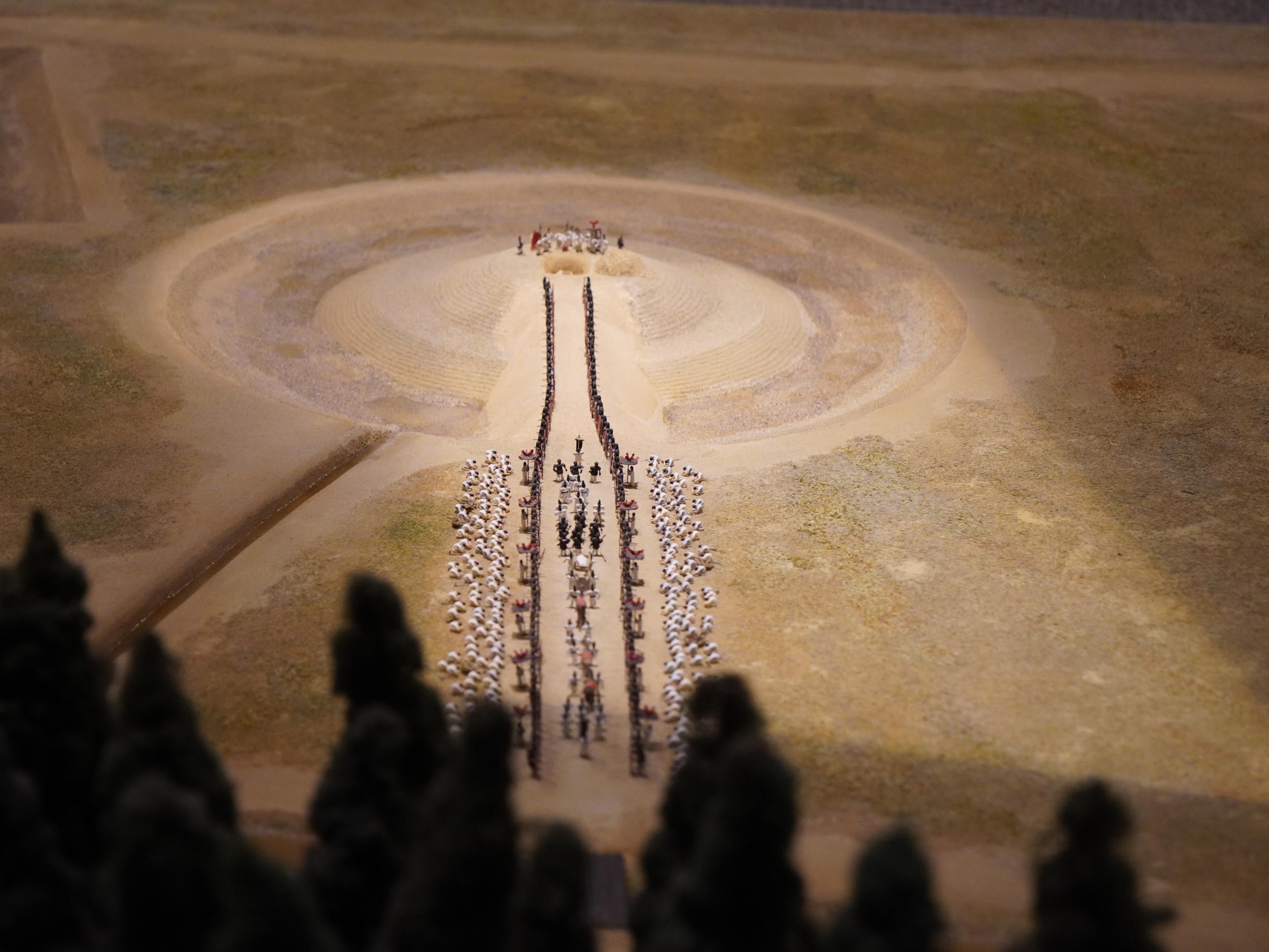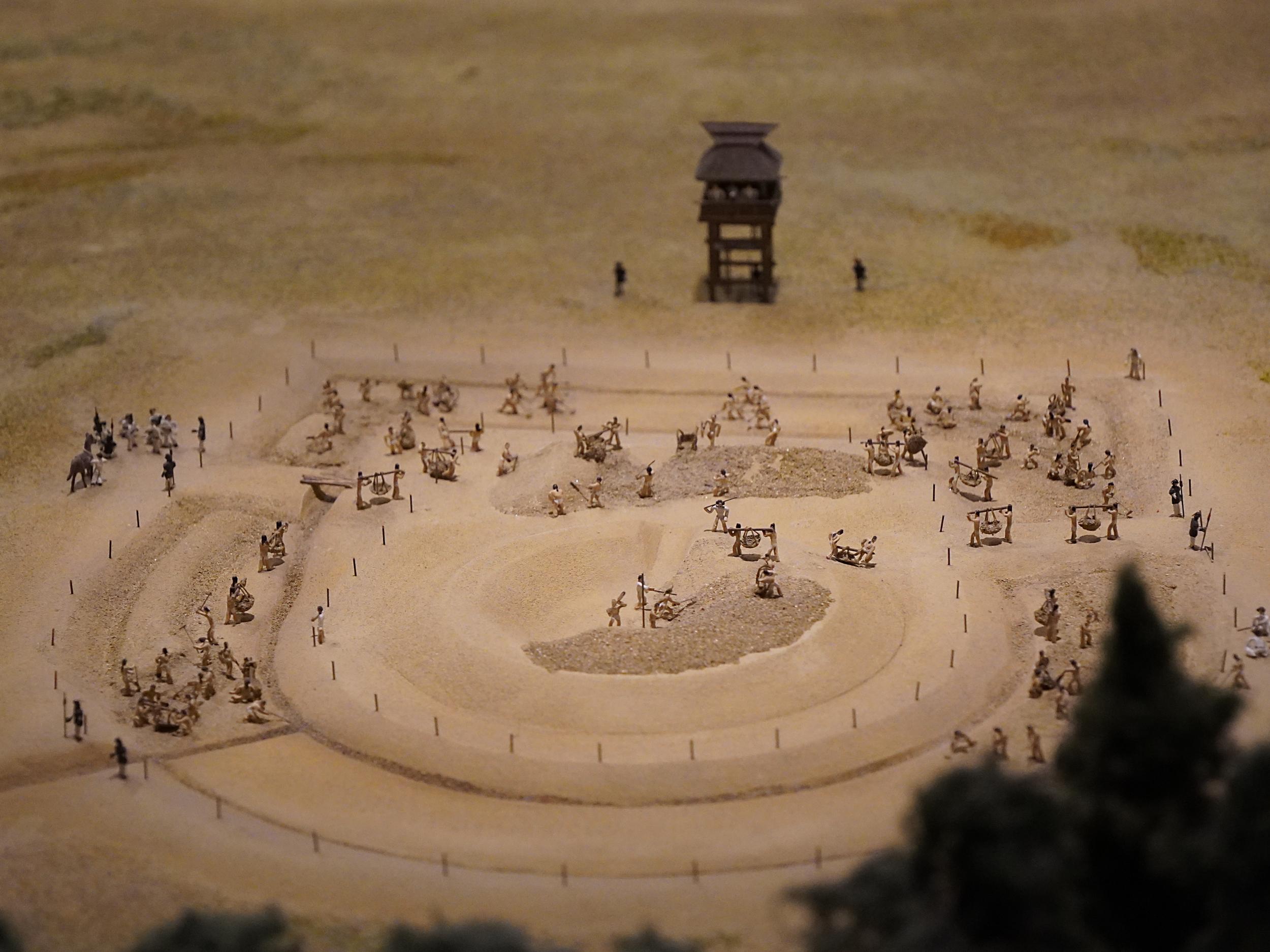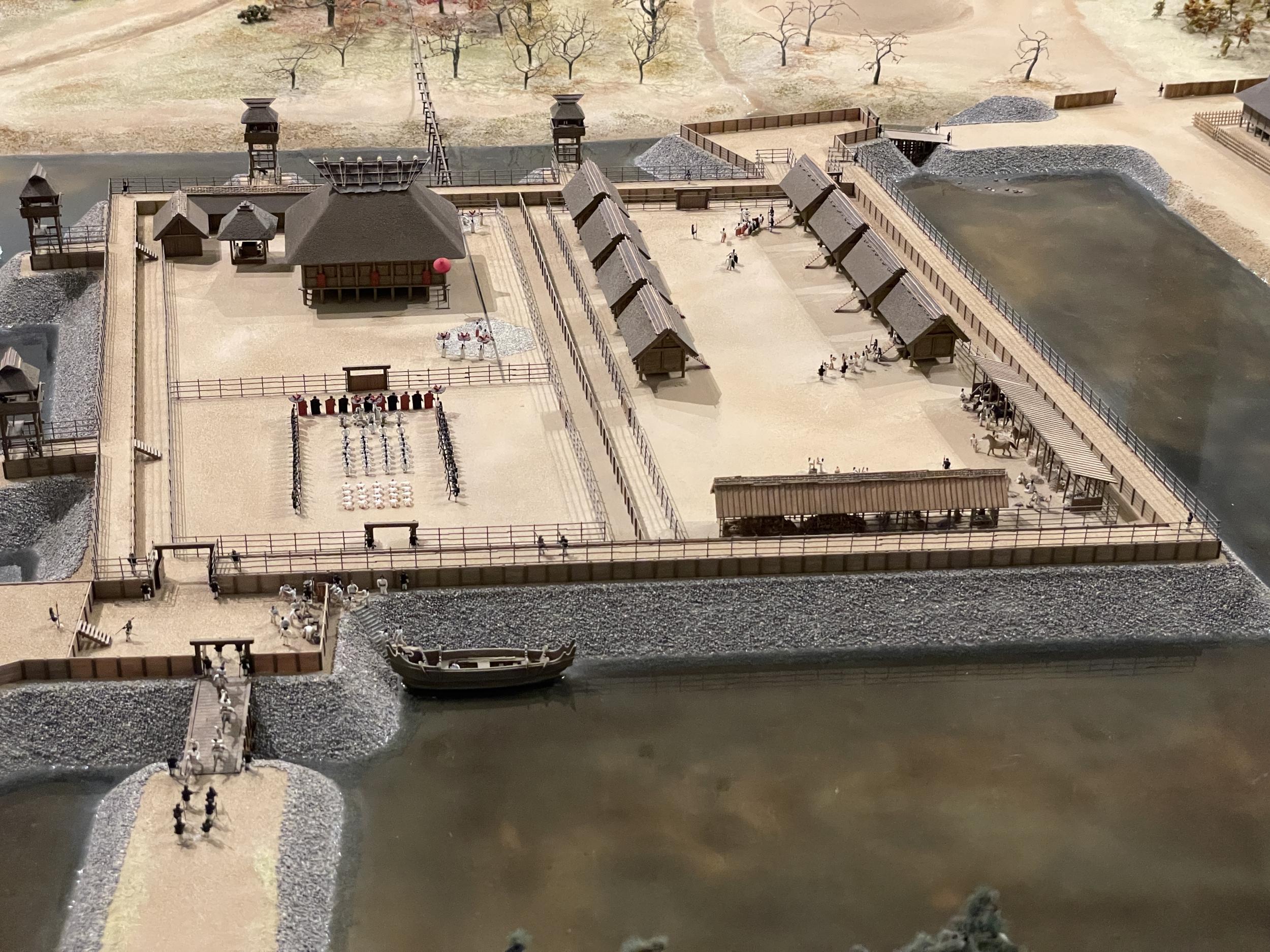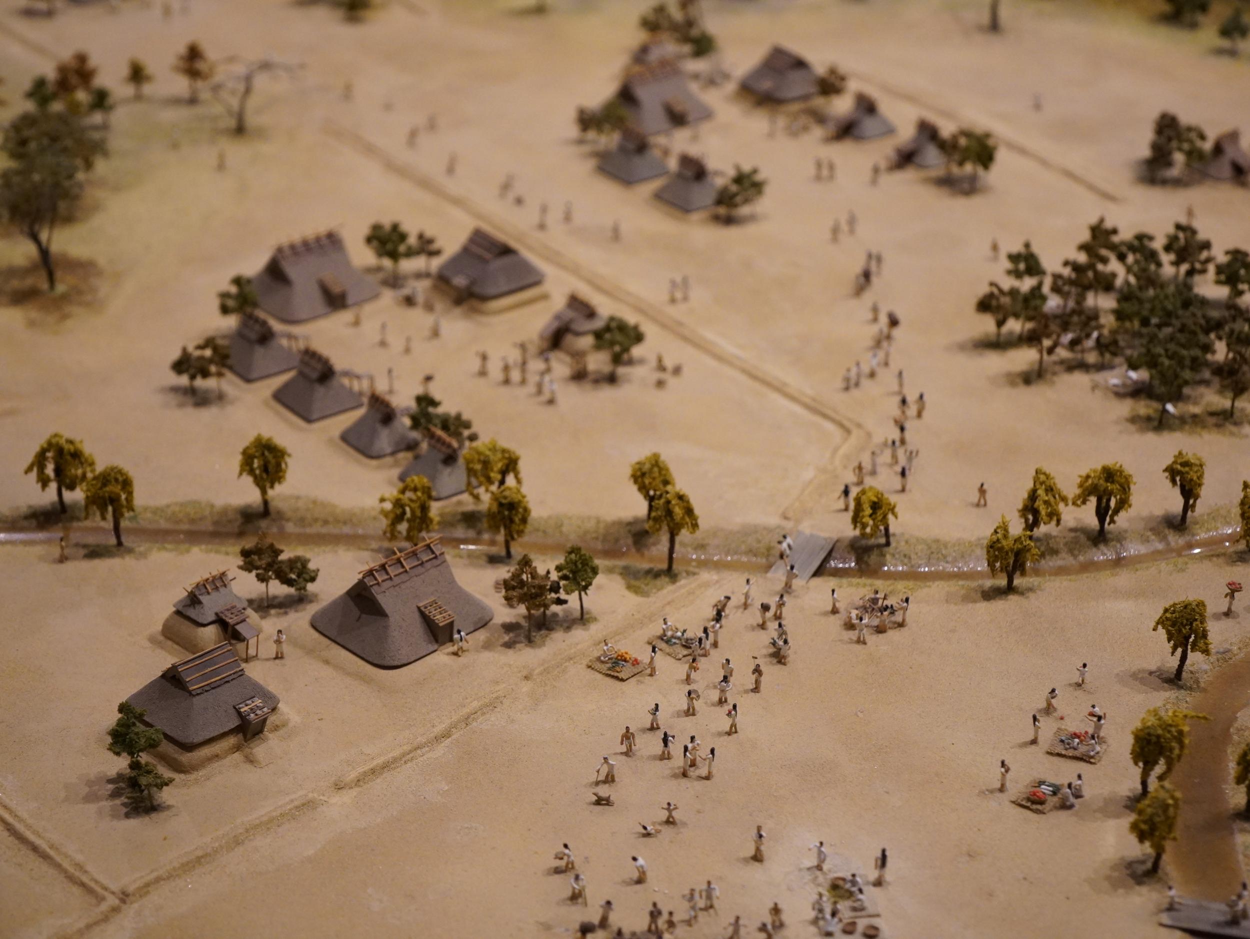 平安京創生館の平安時代末期の平安京同様にいつまでも見飽きないジオラマ。1/1000のジオラマでは表現できない息吹が感じられる1/150スケールです。