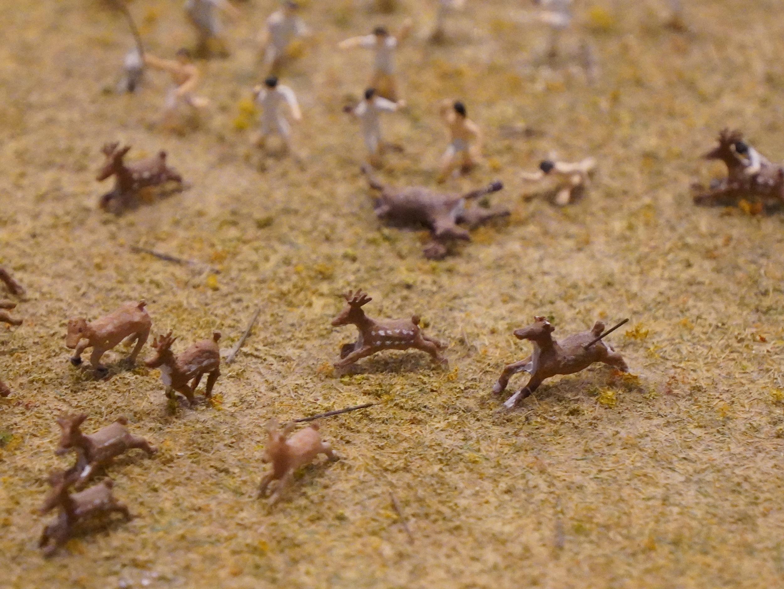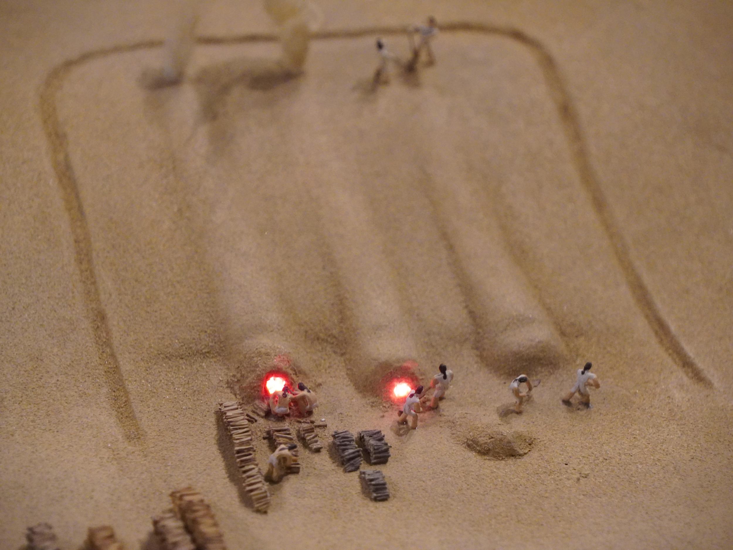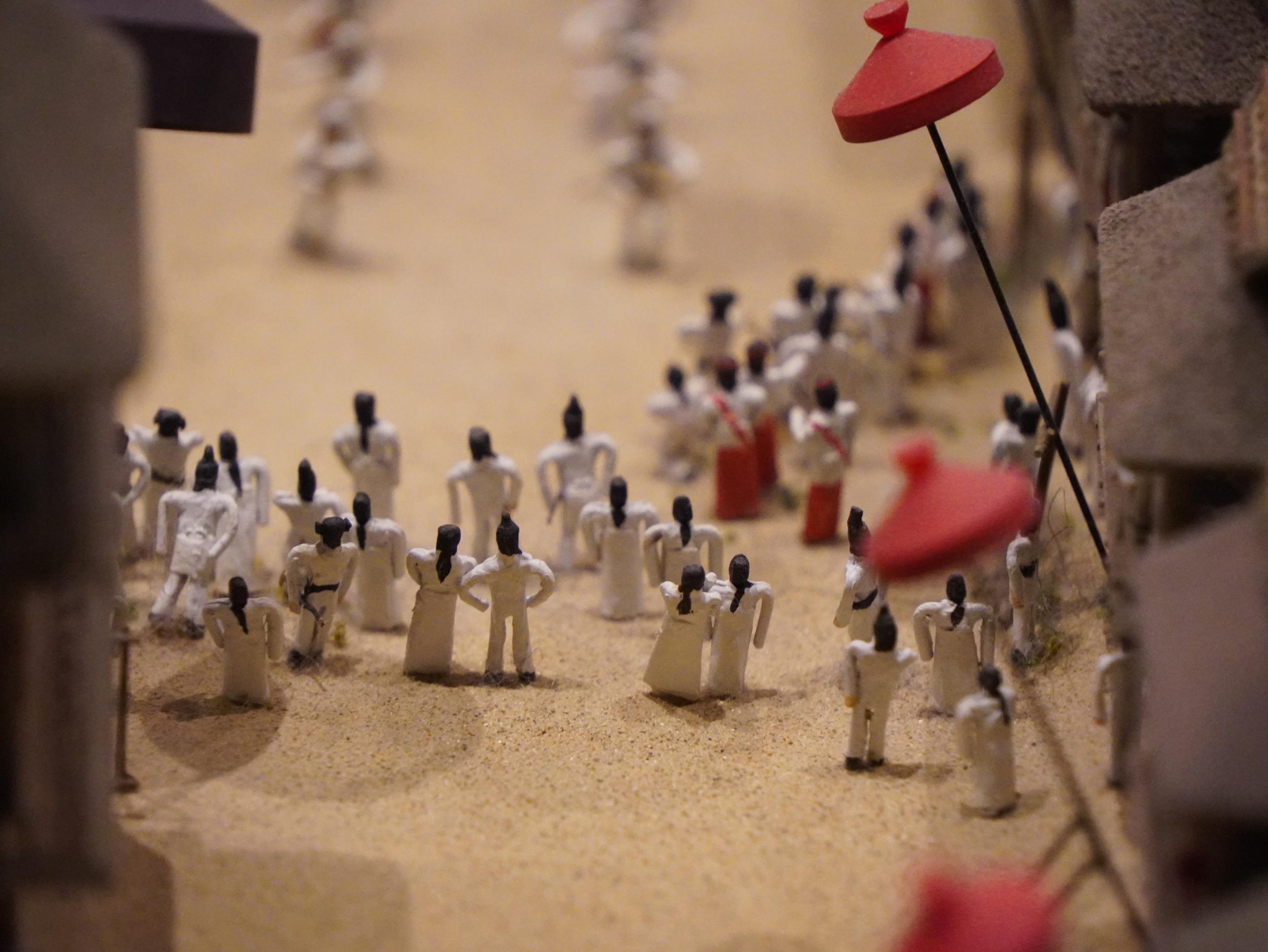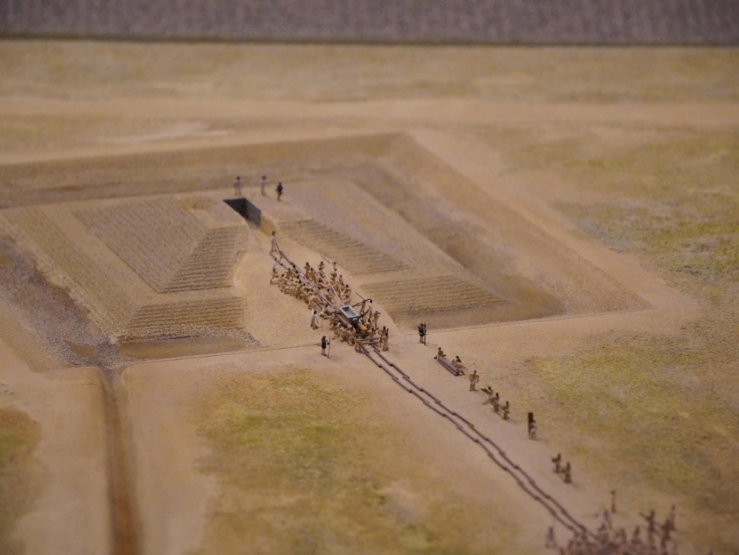 平安京創生館の平安時代末期の平安京同様にいつまでも見飽きないジオラマ。1/1000のジオラマでは表現できない息吹が感じられる1/150スケールです。