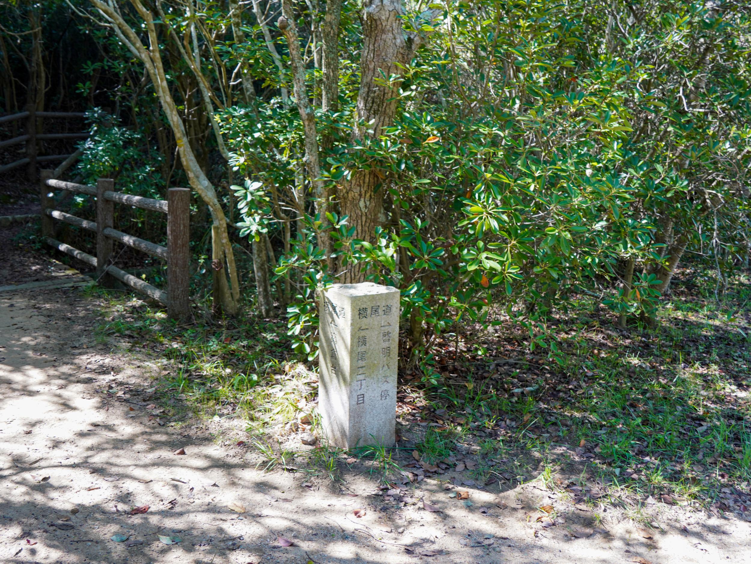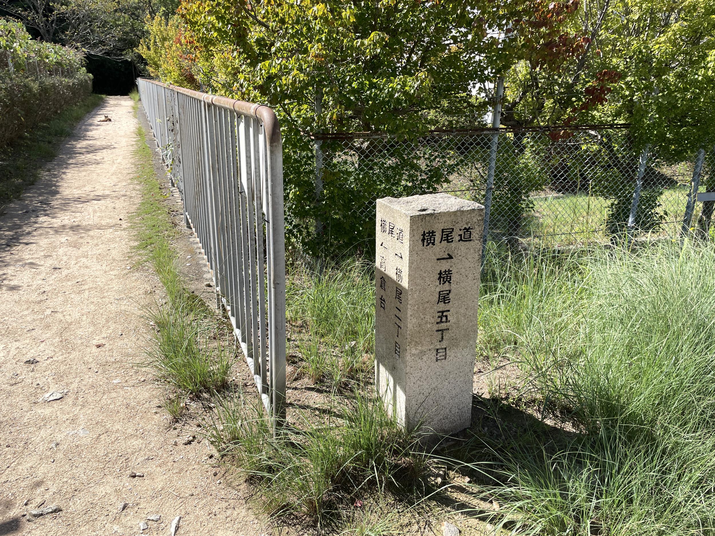 少し進むと道は二手に別れ、道標の右面には「横尾道→啓明バス停」左面には「横尾道←高倉台」とあります。右の道は山裾、左の道は右の道の少し高い位置を回る道と思われ、悩んでチョウが多そうな左の道に進むことにしました。