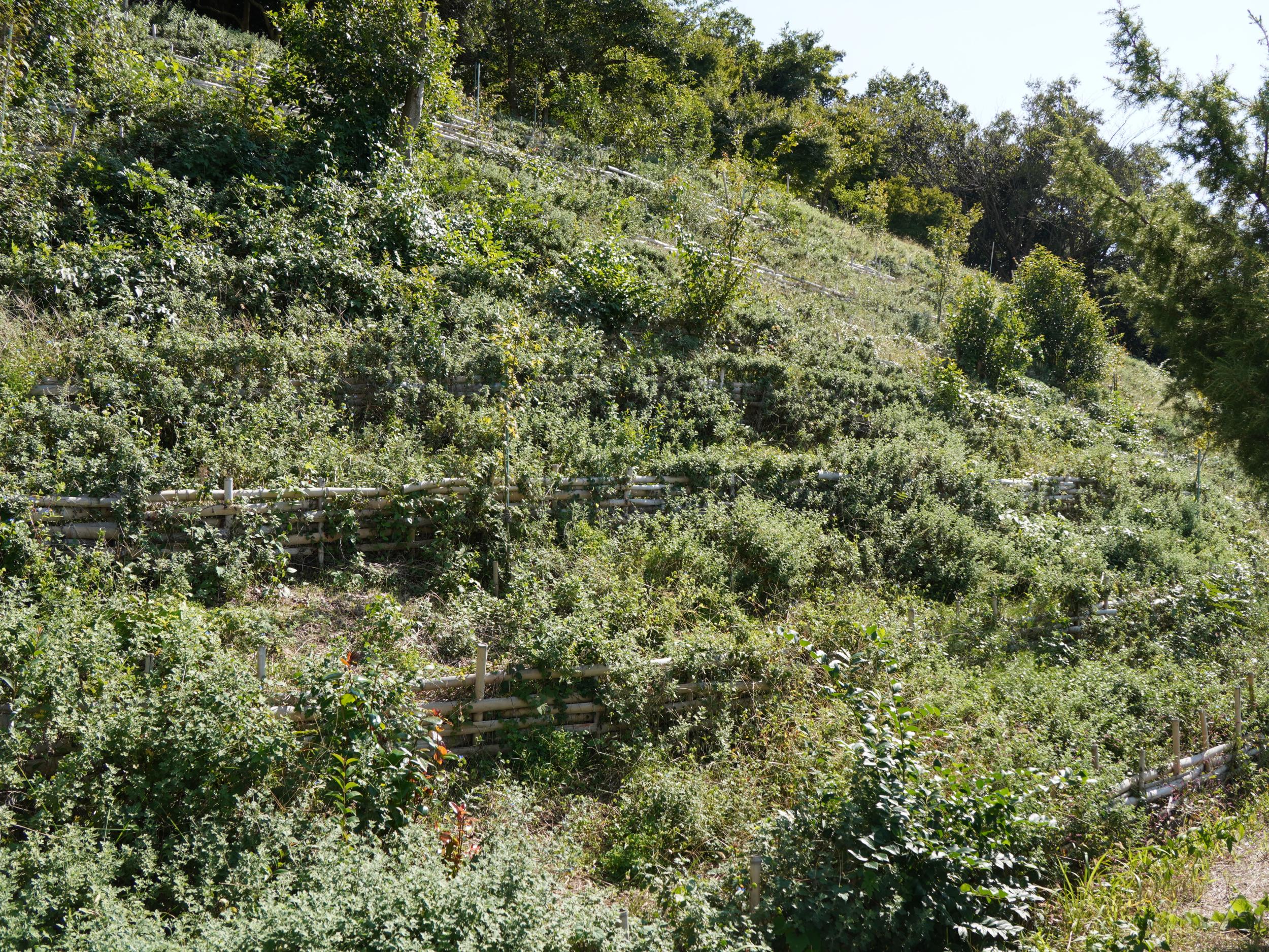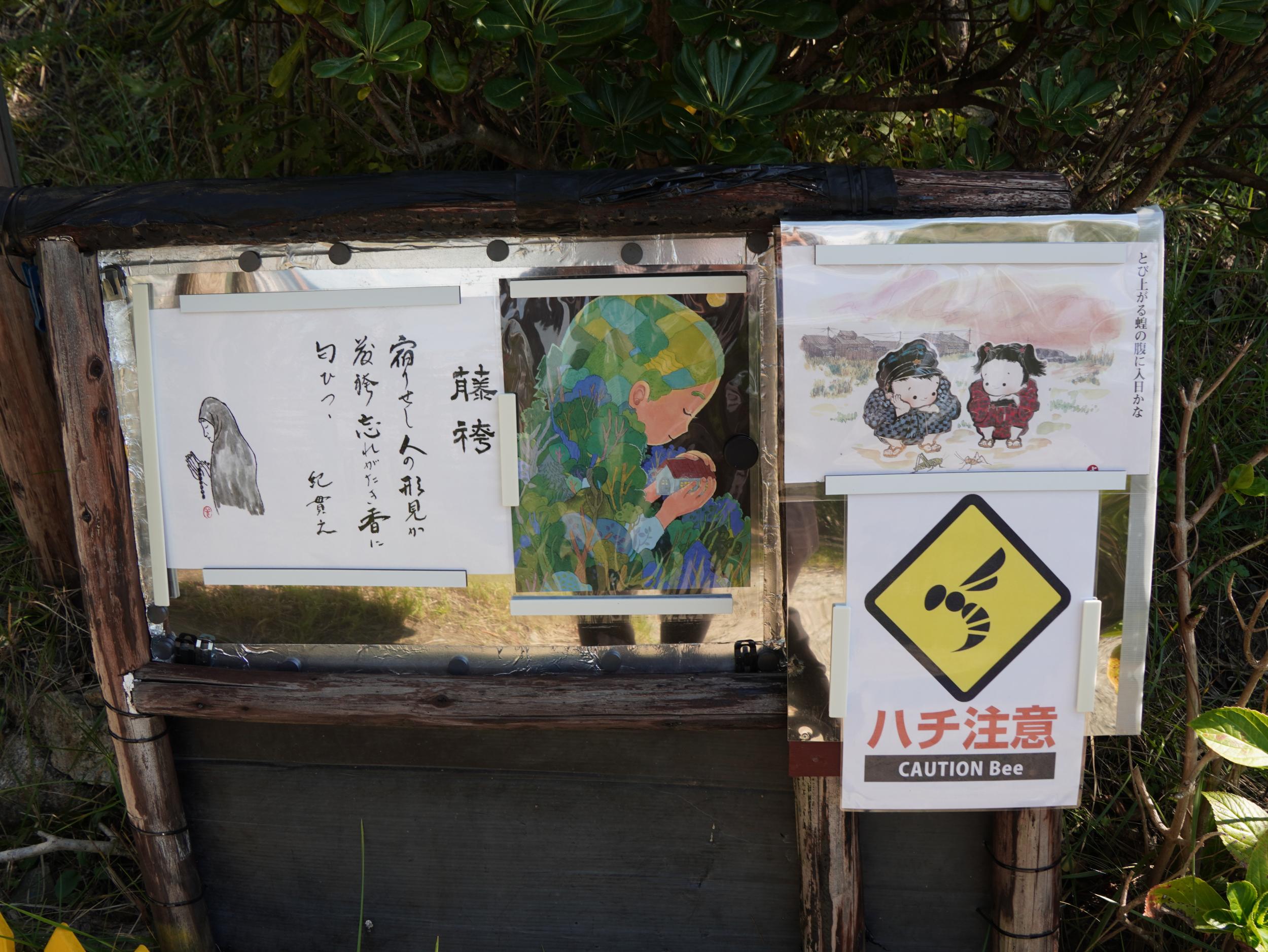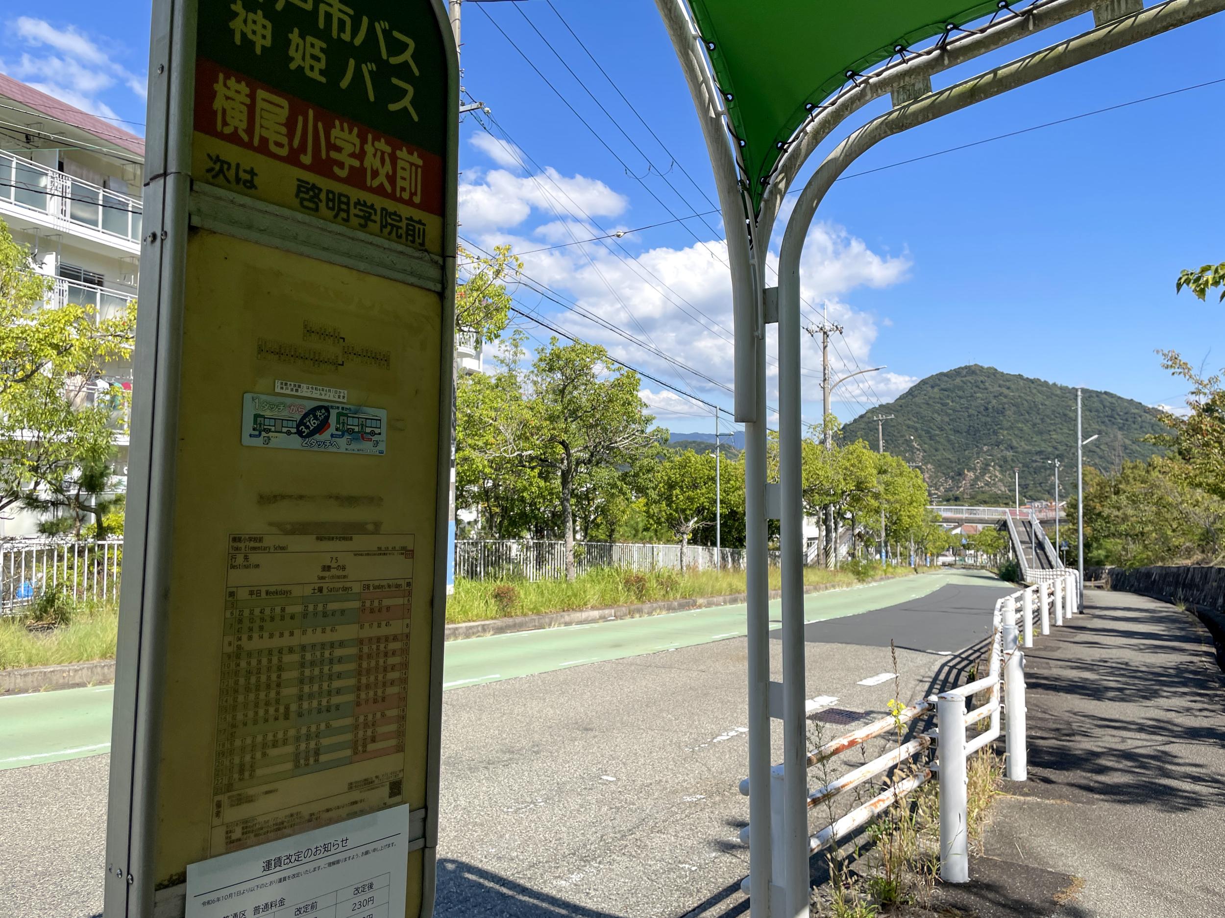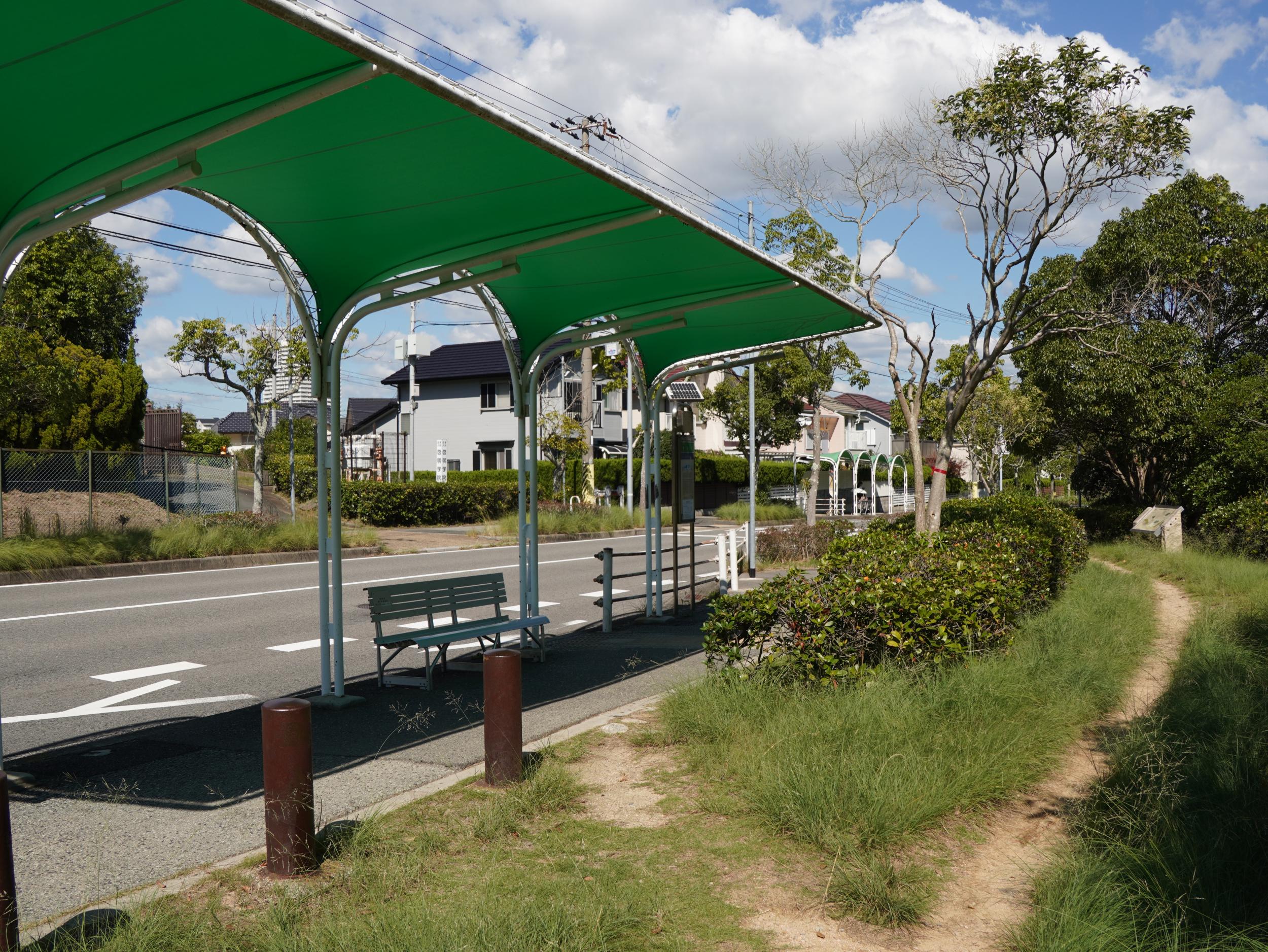 野路菊の丘から急坂を下りて竹の杖を返却、さらに坂道を下りて啓明学院前バス停のベンチにへたり込みました。結局横尾道ではアサギマダラはおろかフジバカマにも全く会えずじまいも、ベルトコンベアの成し遂げた偉業をいくらかでも体感できればとここまでやってきたので、野路菊の丘に置かれた地元の人たちの誇りが伝わるBefore Afterの写真を見ることができ、やってきた甲斐がありました。