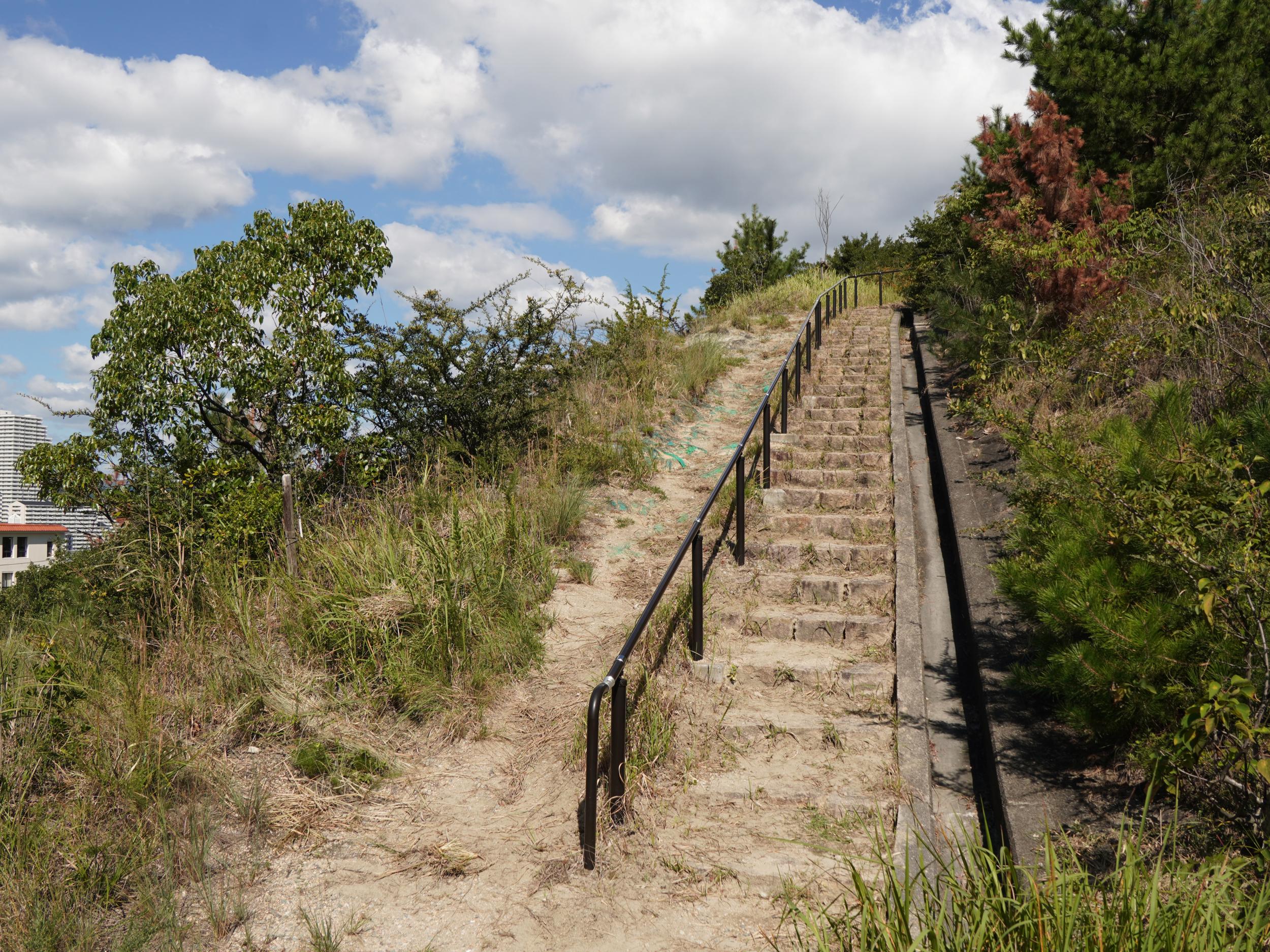 須磨一の谷行のバスに乗り込むと、須磨離宮公園の方へはまっすぐ進まず、横尾道の道標にも出てきた高倉台という団地の中をぐるっと回って行きます。高倉台6丁目、高倉台7丁目…と高倉台の中だけで7つもバス停がありました。横尾台団地と高倉台団地の間を通っていた須磨ベルトコンベヤは自然環境や農業地域、風致地区を守る観点から海岸近くを除き全面的にトンネルになっていたらしく、高度経済成長も決して環境を壊すだけじゃなかったと分かります。須磨ベルトコンベヤについては関西の土木事業・土木遺産探訪のページがとても参考になりました。