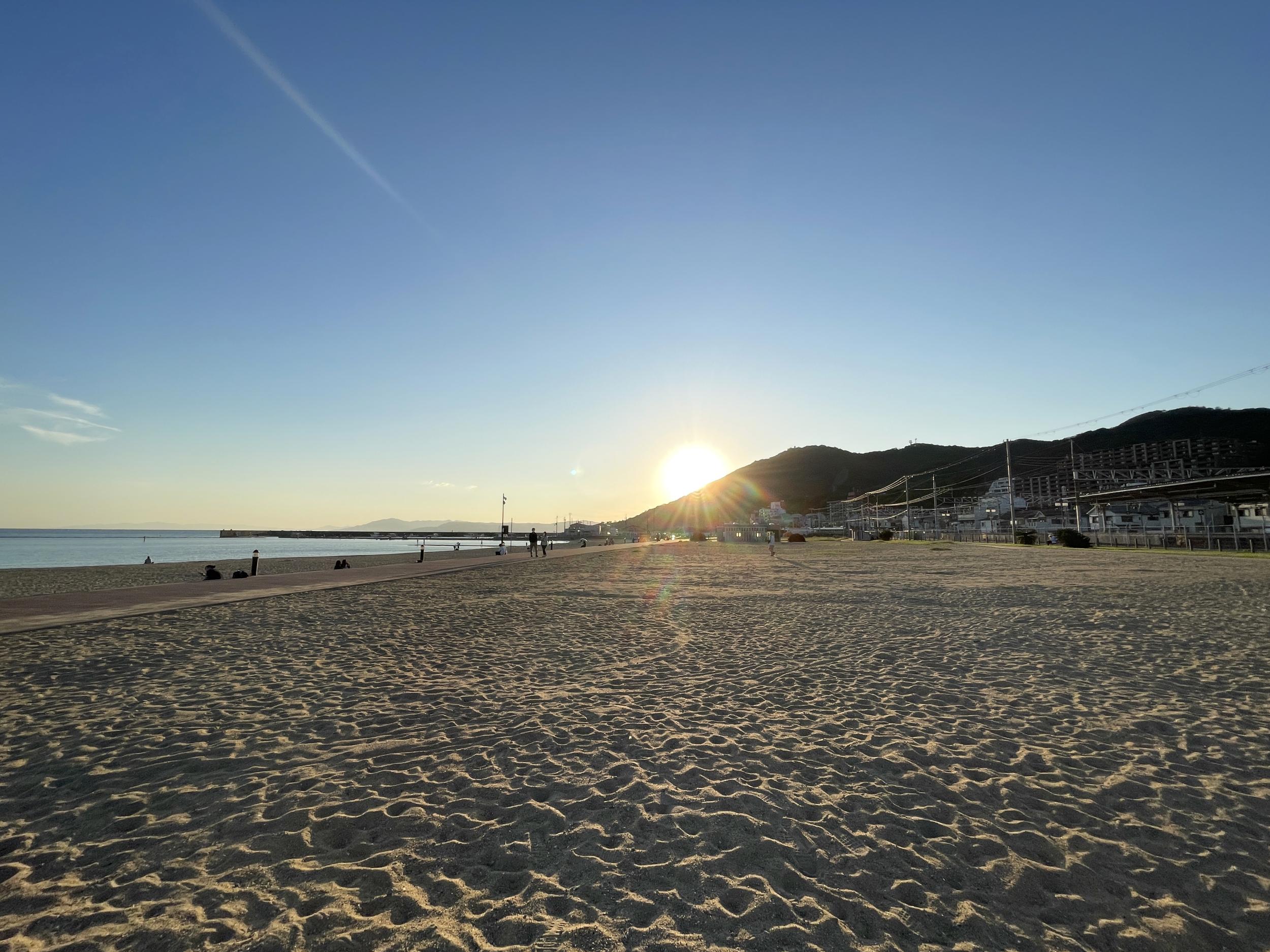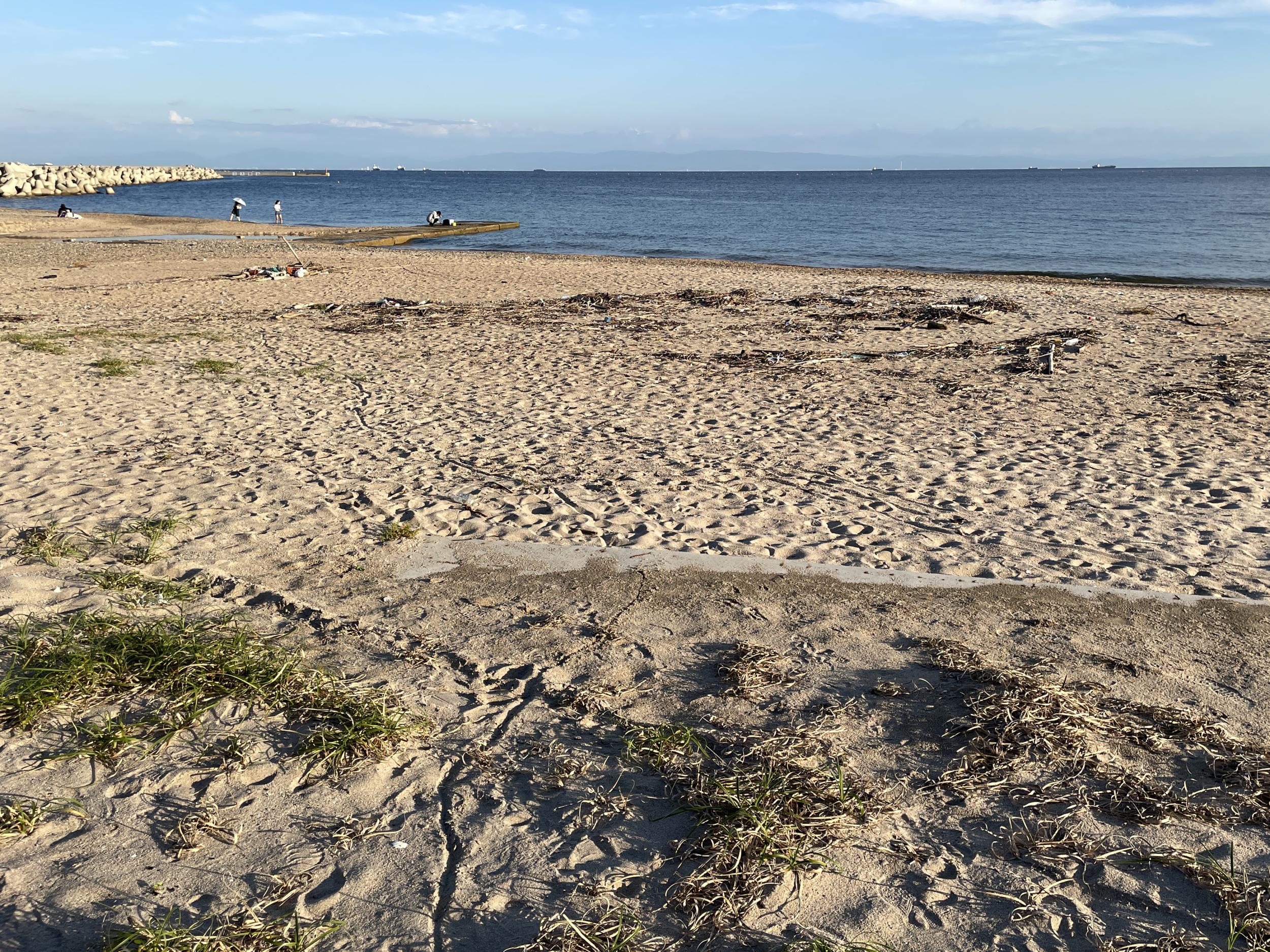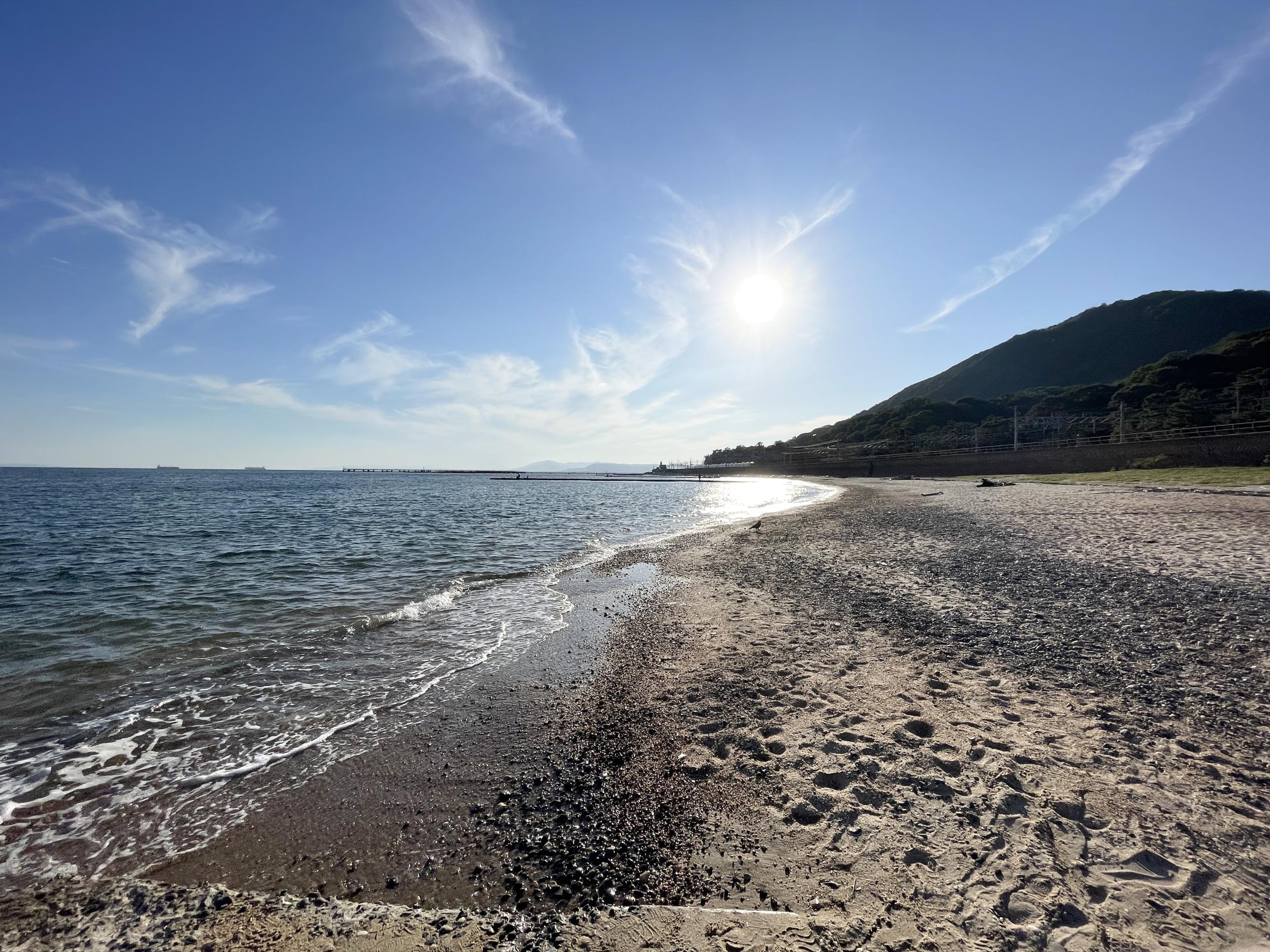 バタフライガーデンから途中道を間違ったこともあって30分も歩いて須磨海岸にたどり着きました。夏は終わったのにまだ人が少なくない海水浴場と漁港をを抜けると一の谷海岸。さっきの市バス75系統の終点、須磨一の谷バス停は山陽本線が一の谷川を渡る辺りです。線路の下をくぐり海岸へ出ることができれば、もっと楽してここまで来れたかと。