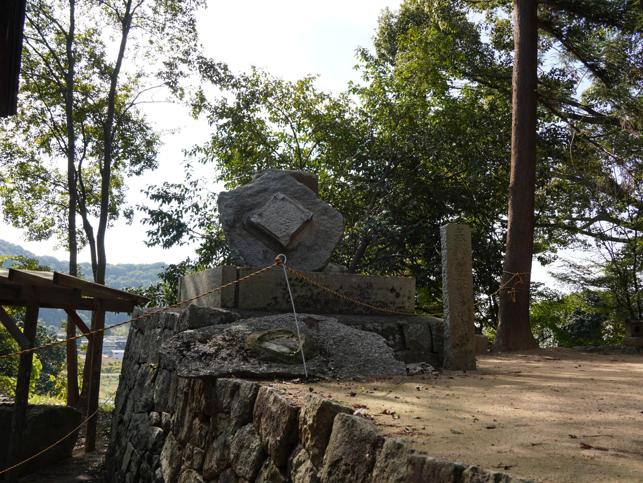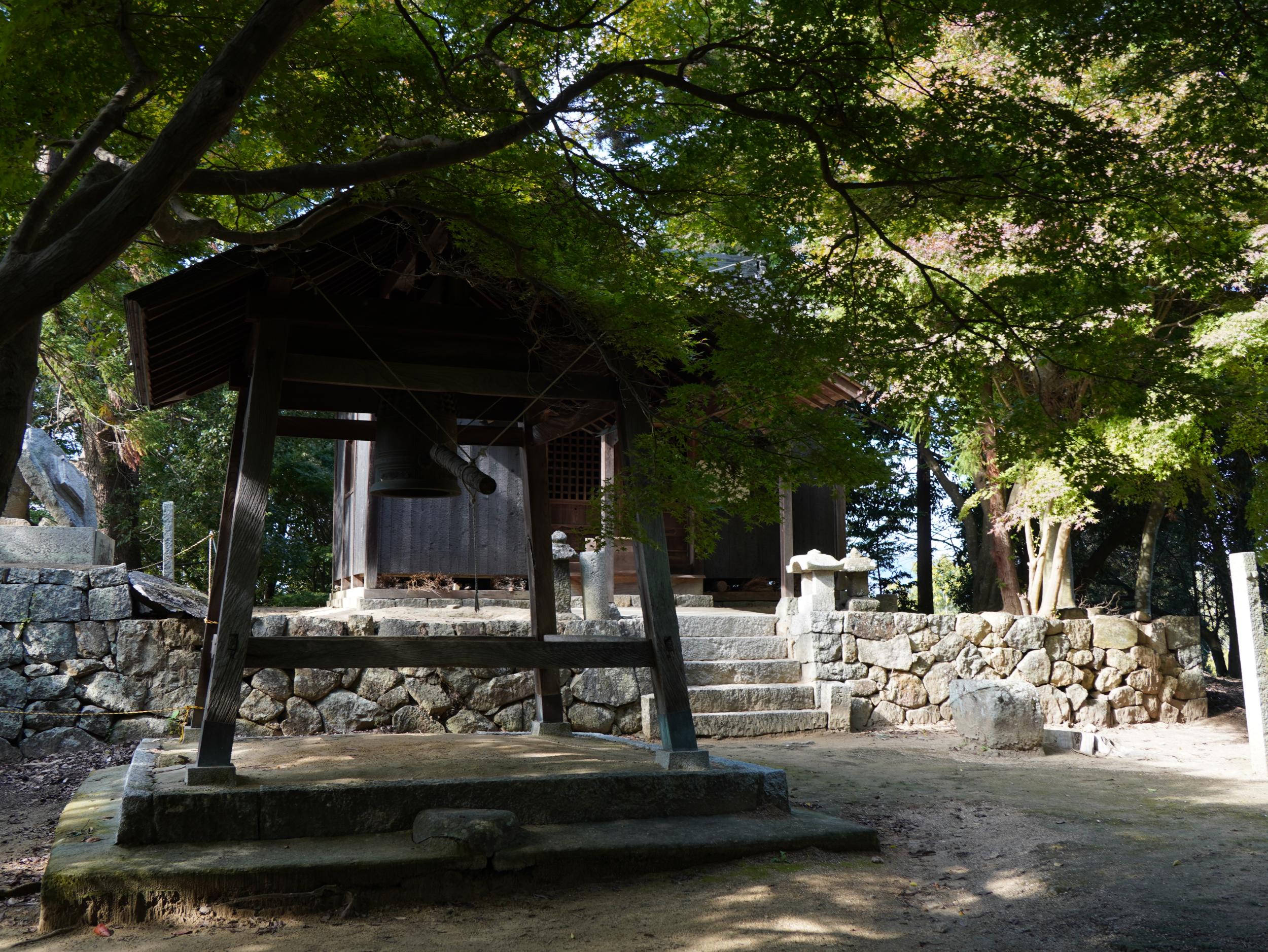 前方部に立つ荒神社、神社なのになぜか鐘楼があります。