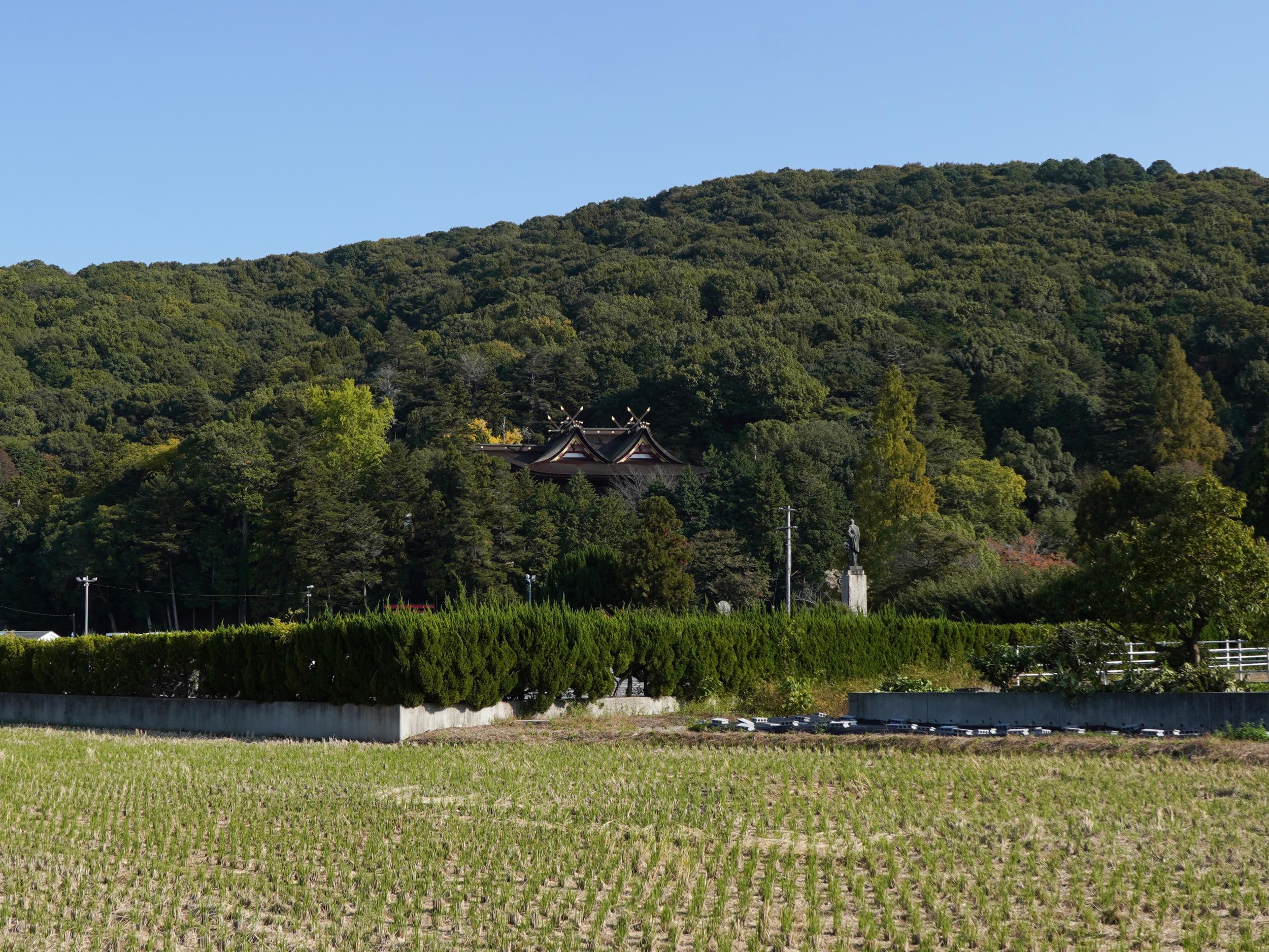 吉備の中山をバックに吉備津神社の本殿。手前に見える銅像は当地出身で五一五事件の凶弾に倒れた第29代内閣総理大臣・犬養毅。その遠祖は吉備津彦命に従った犬飼健命、やはり桃太郎伝説に関連しているようです。吉備津神社の社号標は犬養毅の揮毫。
