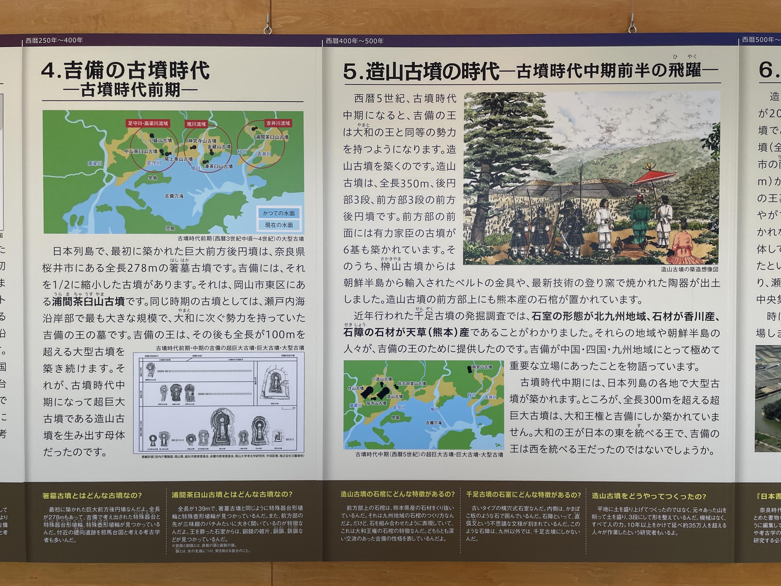 造山古墳の立体模型、陪塚が6基もあります。被葬者の名は不明ですが、大和王権に拮抗する勢力を持っていた吉備国の大王と推定されます。