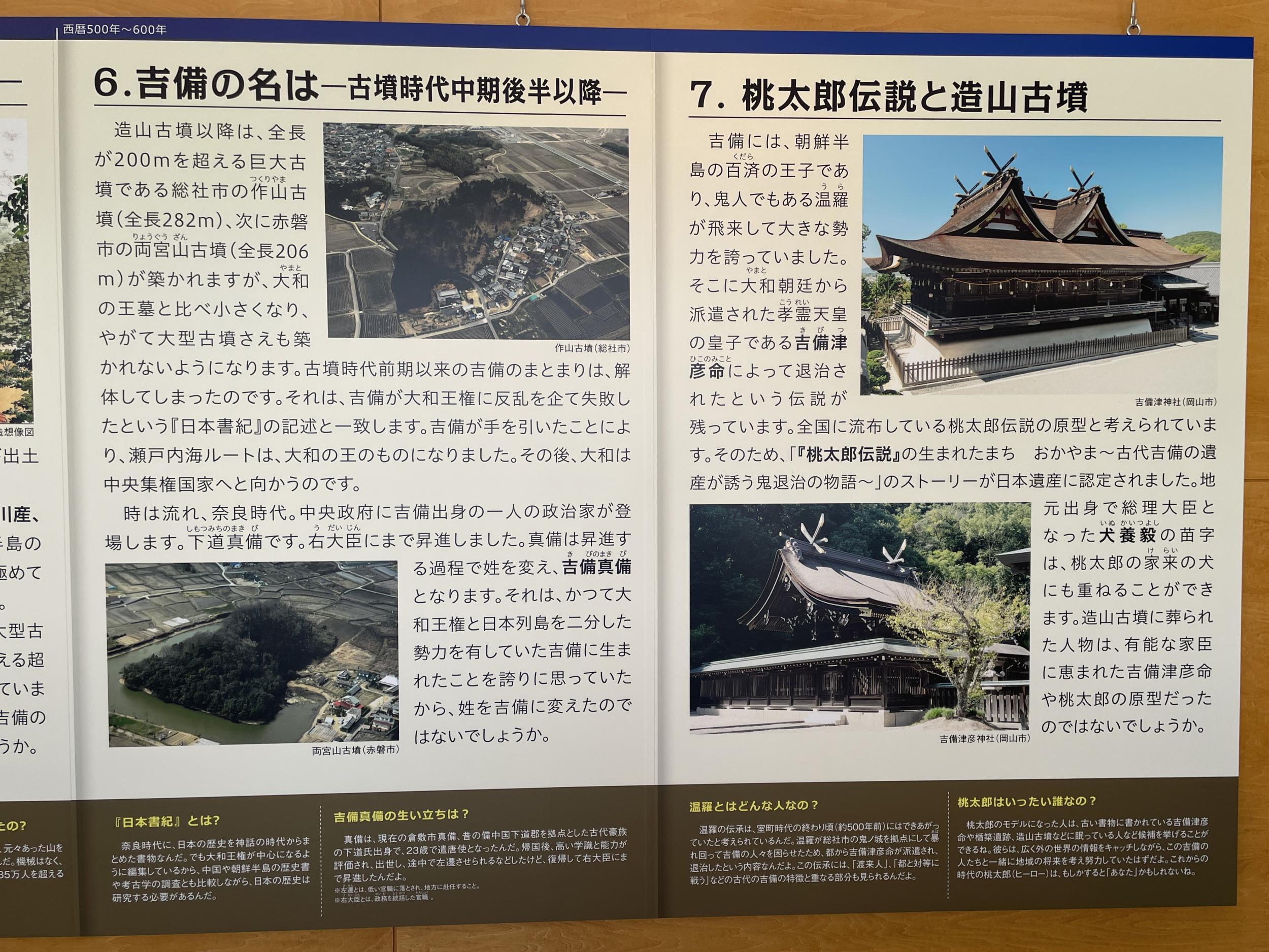 吉備津神社や吉備津彦神社に祀られ、桃太郎のモデルとされる吉備津彦命は第7代孝霊天皇の皇子、同母姉妹が箸墓古墳の被葬者に比定され倭迹迹日百襲姫命(やまとととひももそひめ)、=卑弥呼との説も有力です。つまり卑弥呼と桃太郎は姉弟だったということになります。これぞ存分に想像をふくらませることのできる古代史探訪の真髄かと。