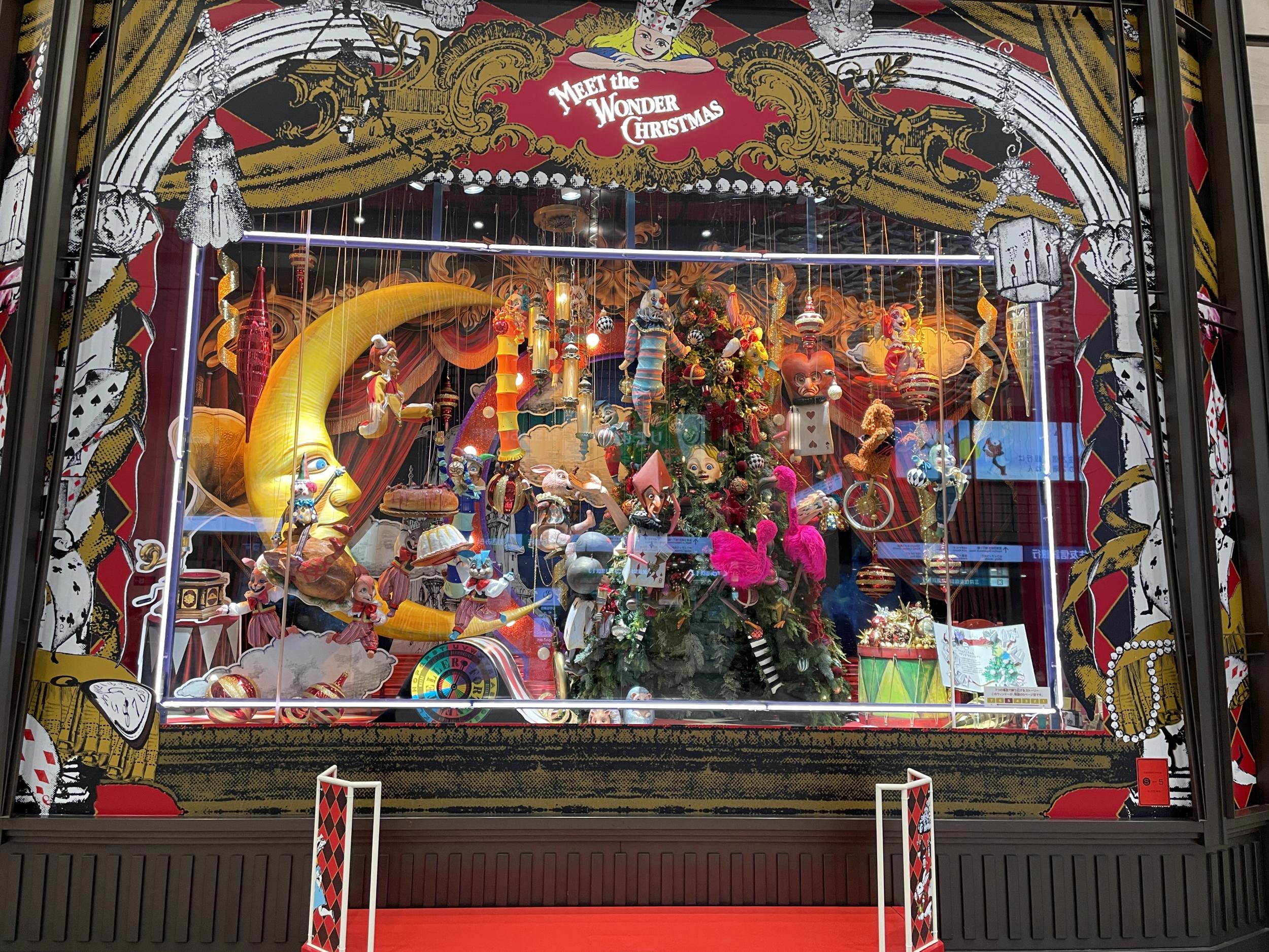阪急百貨店コンコースウィンドウのクリスマスディスプレイは去年と同じ不思議の国のアリスがテーマ、おそらく同じデザイナーさんの作品も去年とは趣向を変えているようですが、イマイチその違いがよくわかりません。