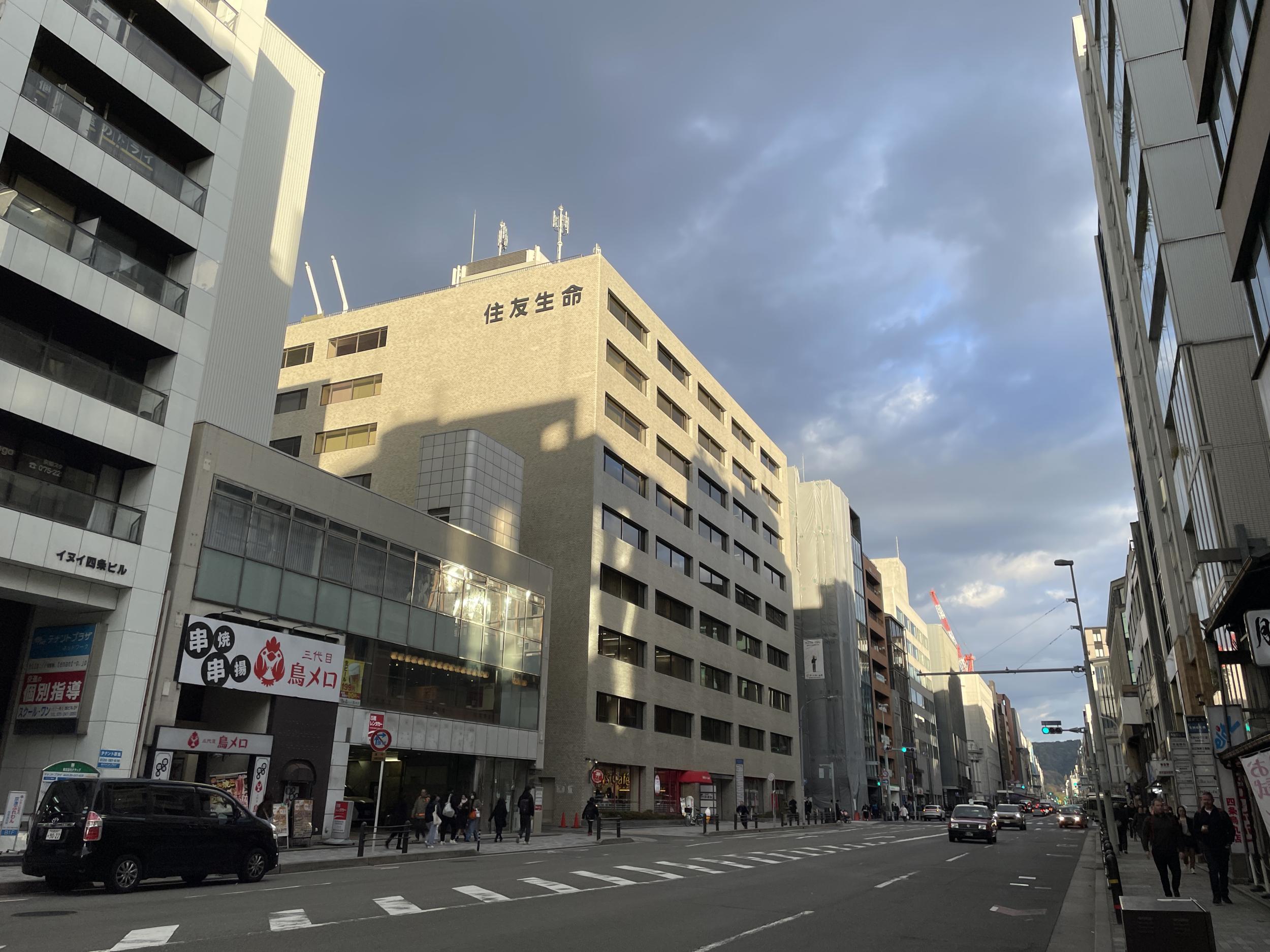 バスは堀川通を右折してしまうようなので四条大宮で下車、四条通りを歩いてお店を探し、これ以上迷ってもしょうがないのでやよい軒に入りすきやき定食。四条通りのビルの上半分だけ西日が当たった景色は大阪と違ってます。