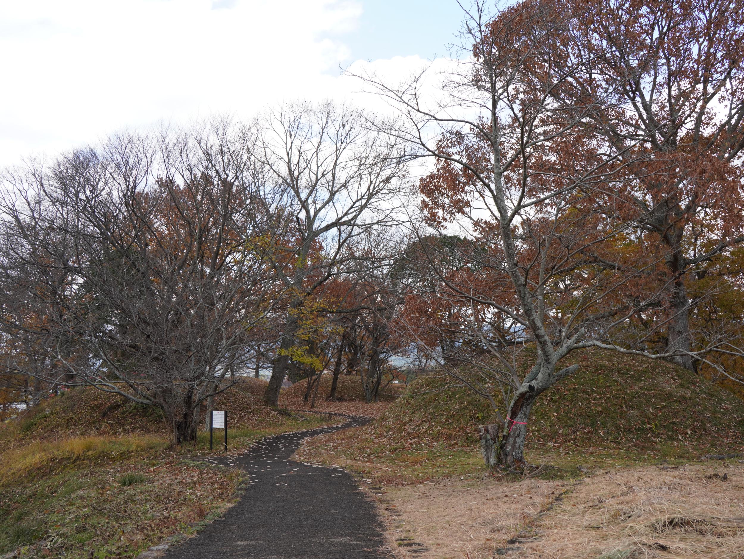 墳丘を縫うようにクネクネ道が続いています。