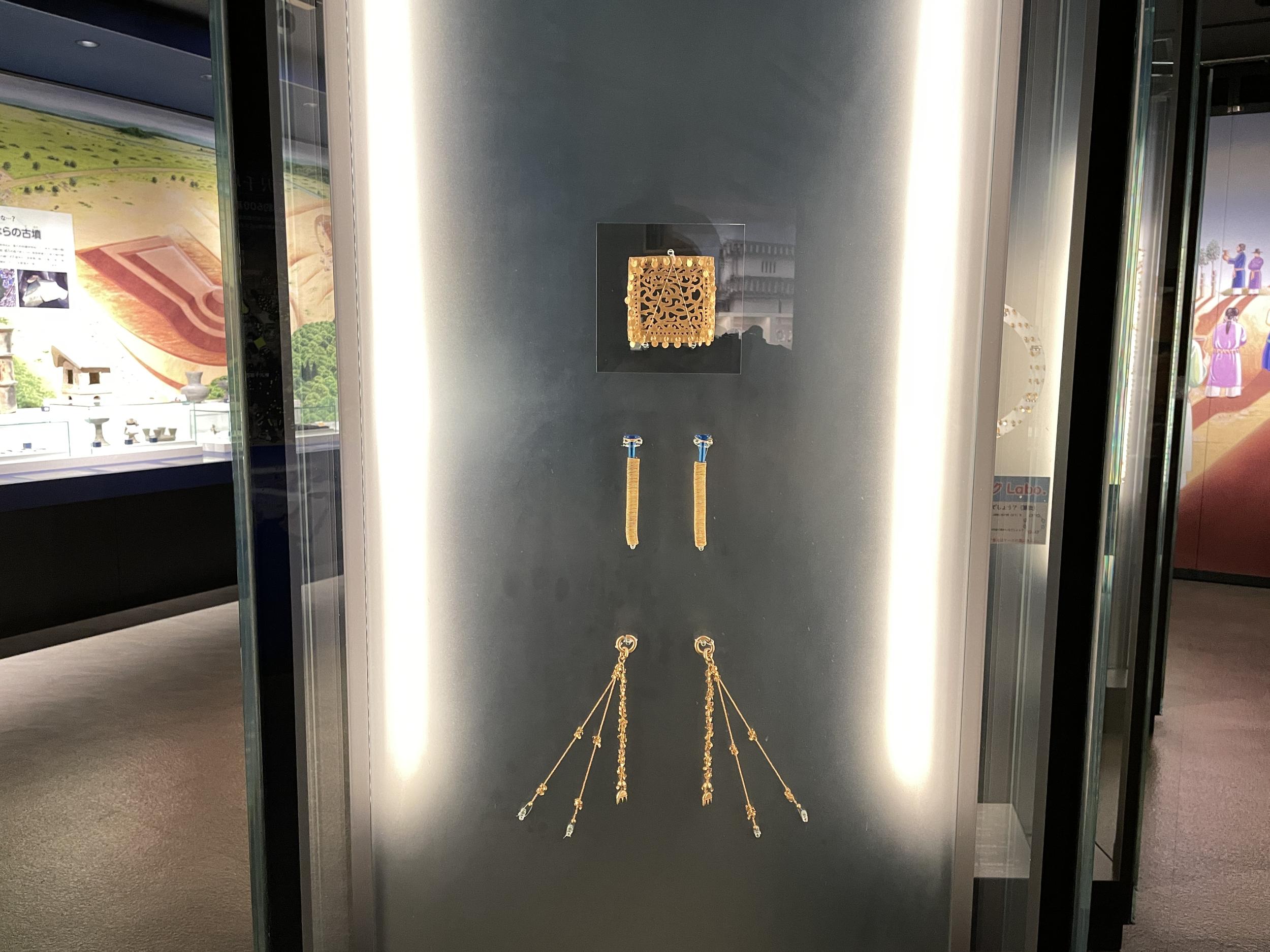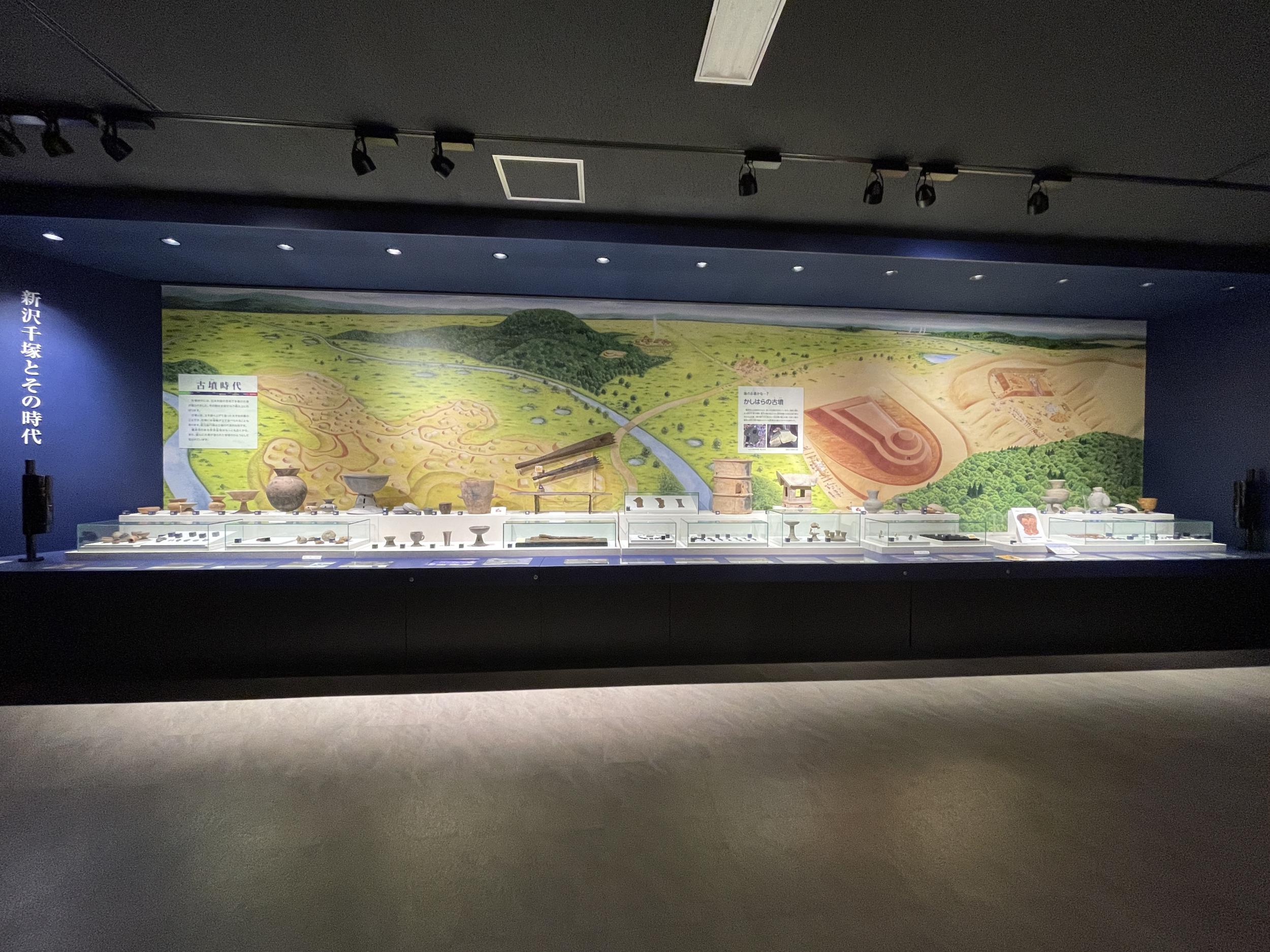 新沢千塚古墳群の目玉、126号墳です。22m×16mの方墳で高さ1.5と周囲と比べて平べったい古墳も、ペルシャからシルクロードを経て渡来したらしい瑠璃色のガラス皿などの副葬品が多数出土しています。