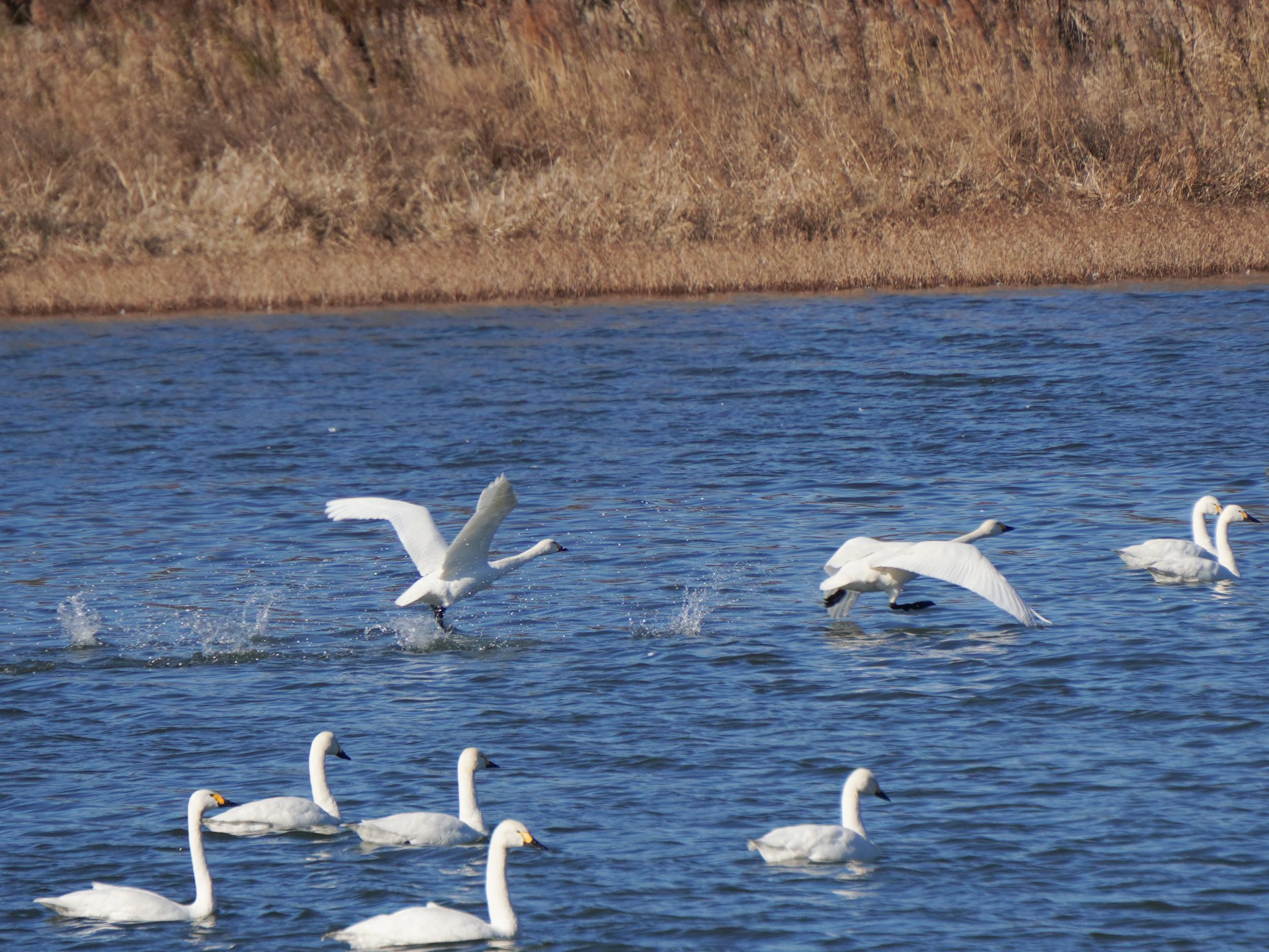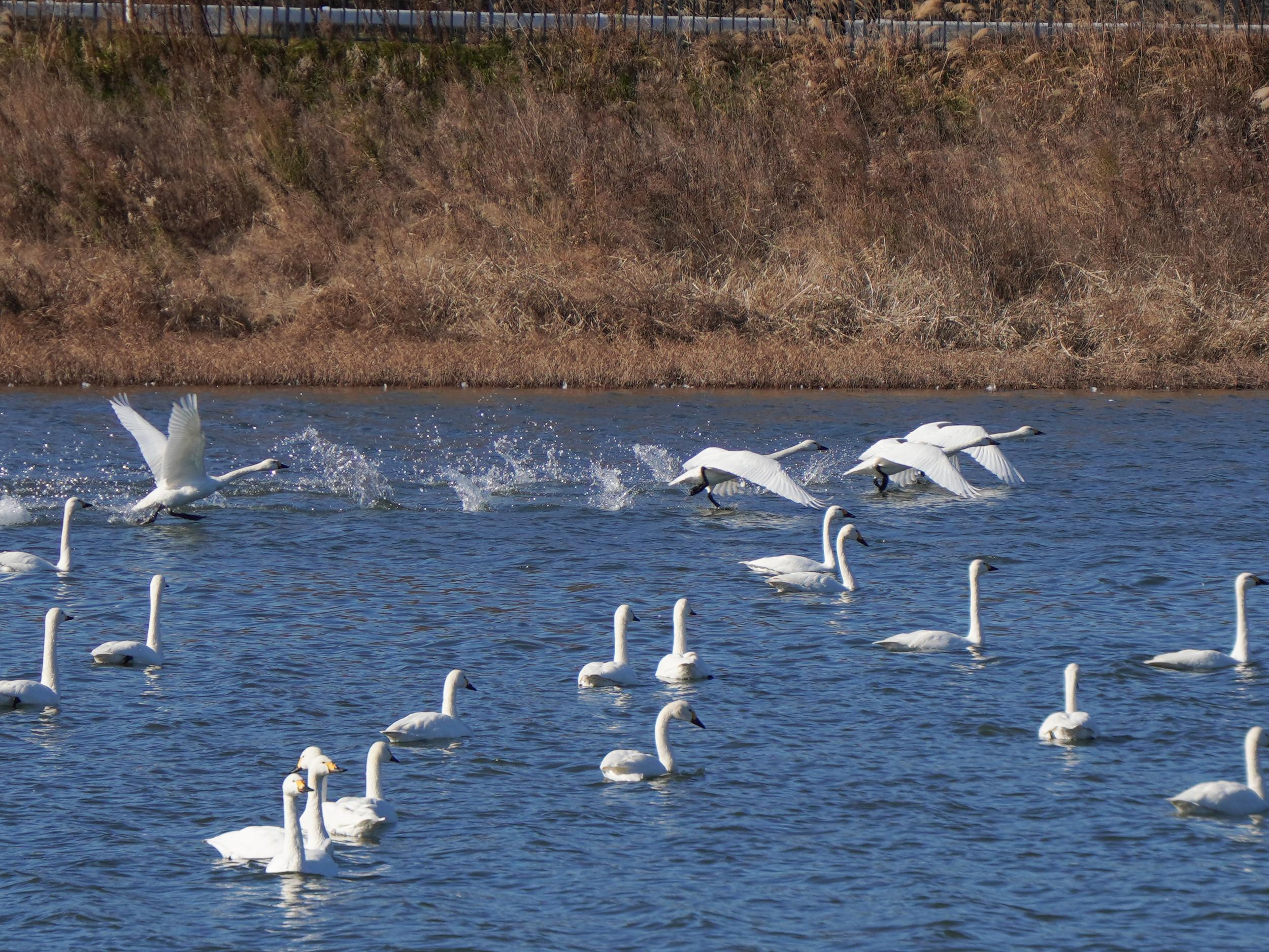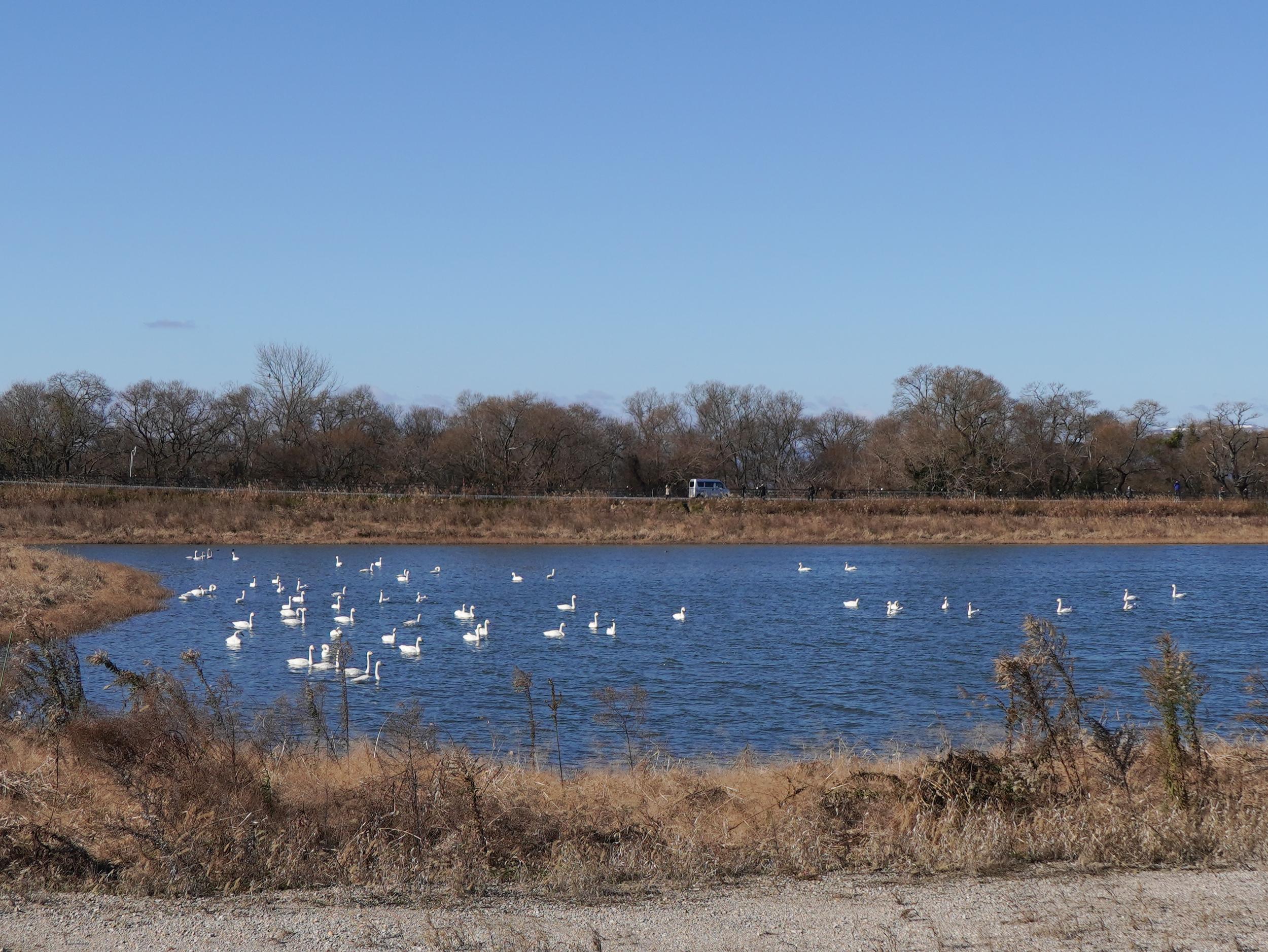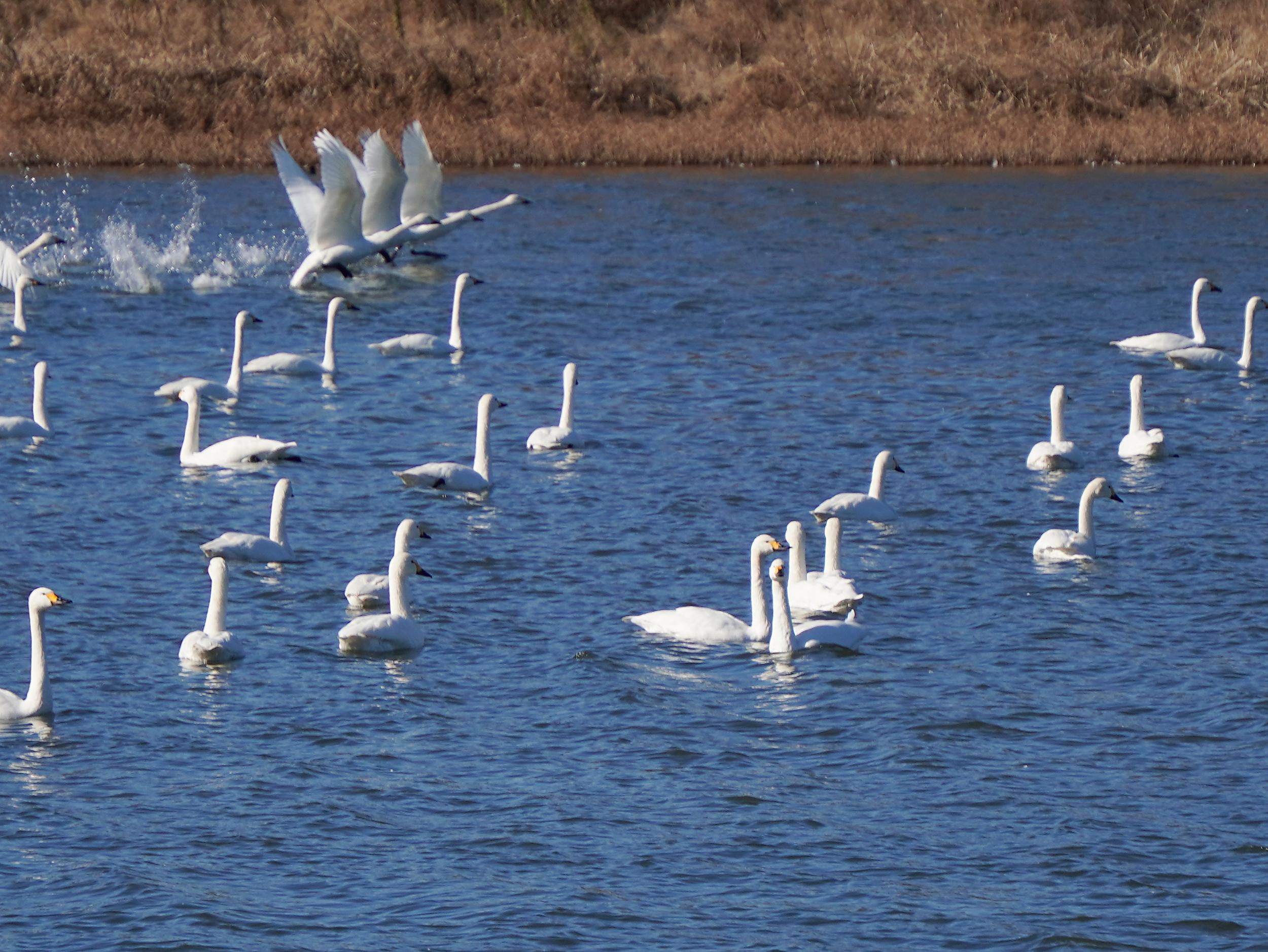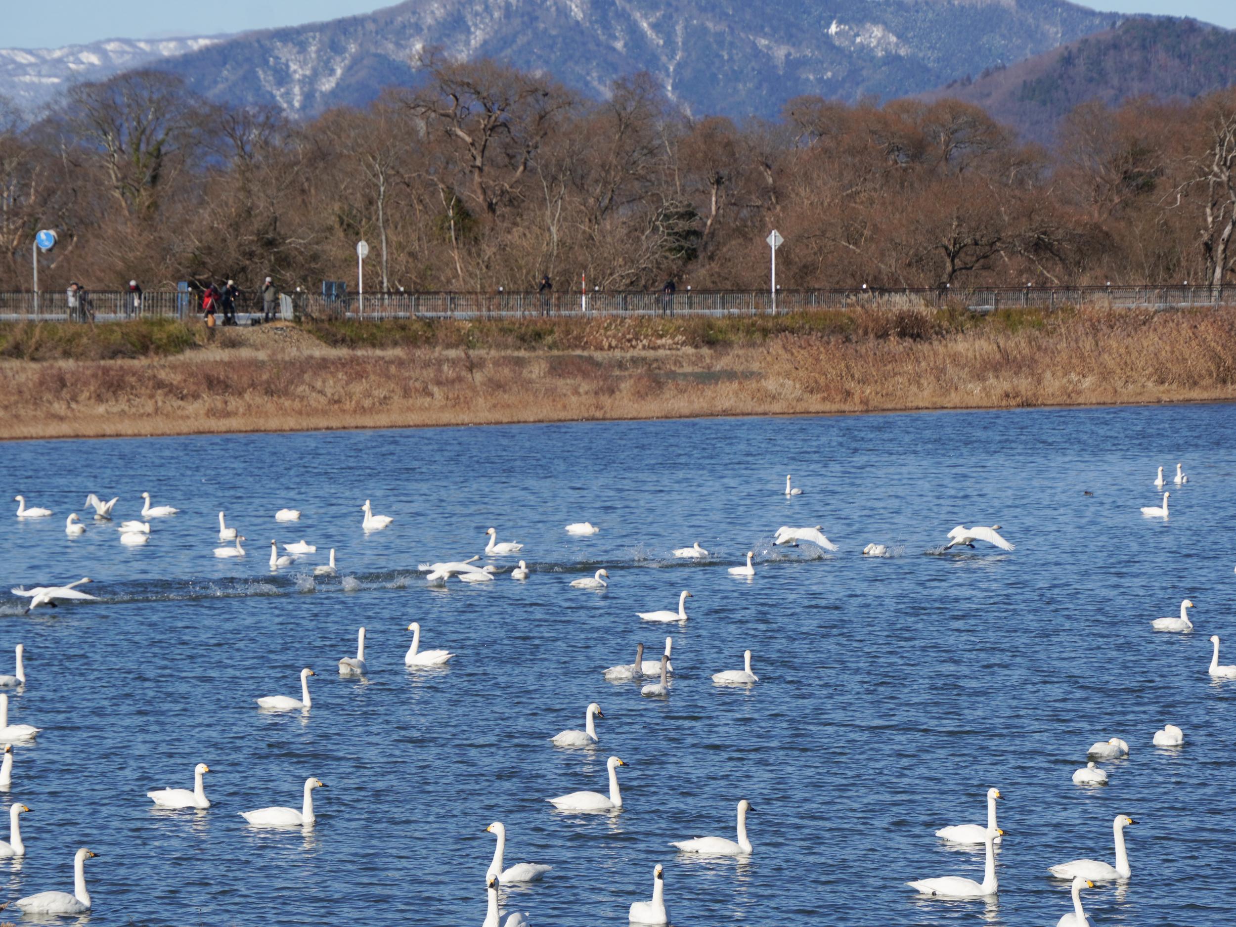 まだ集まってくるコハクチョウたち。クルマにもどってラストショット。