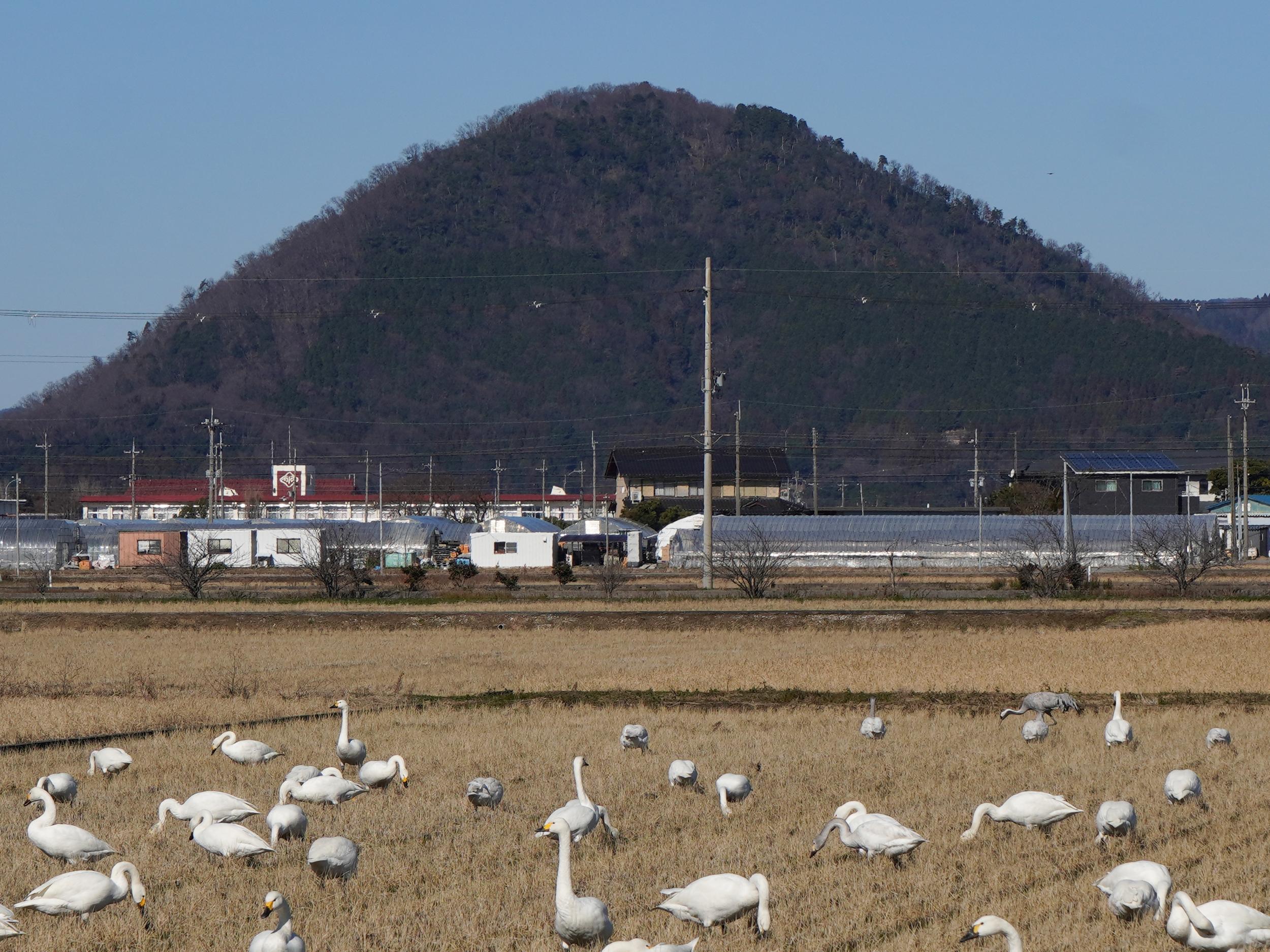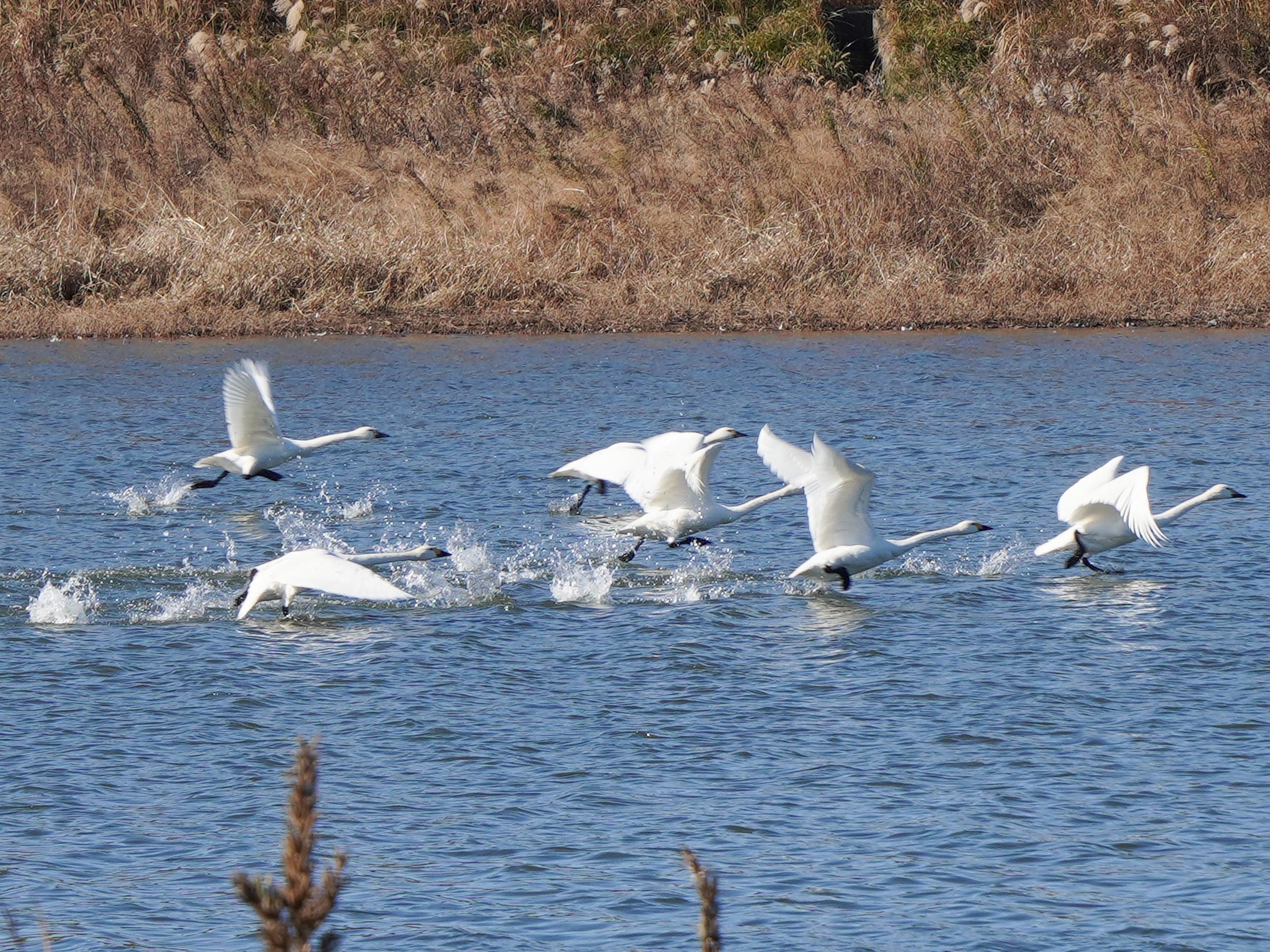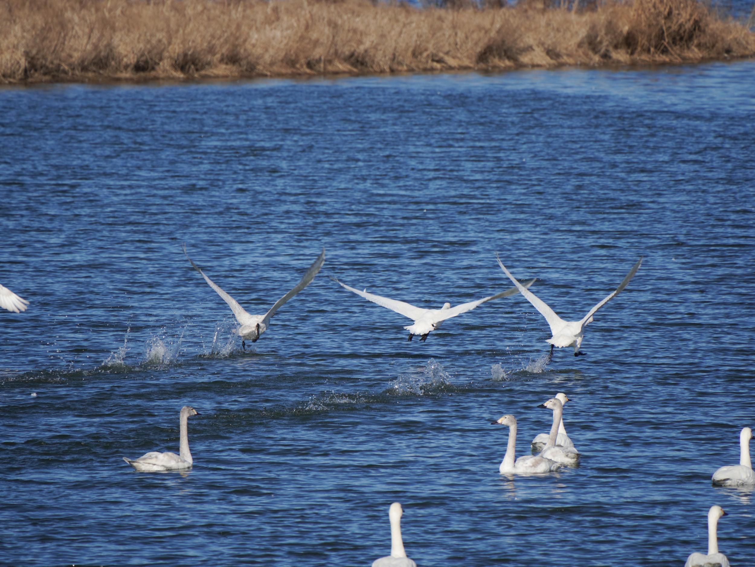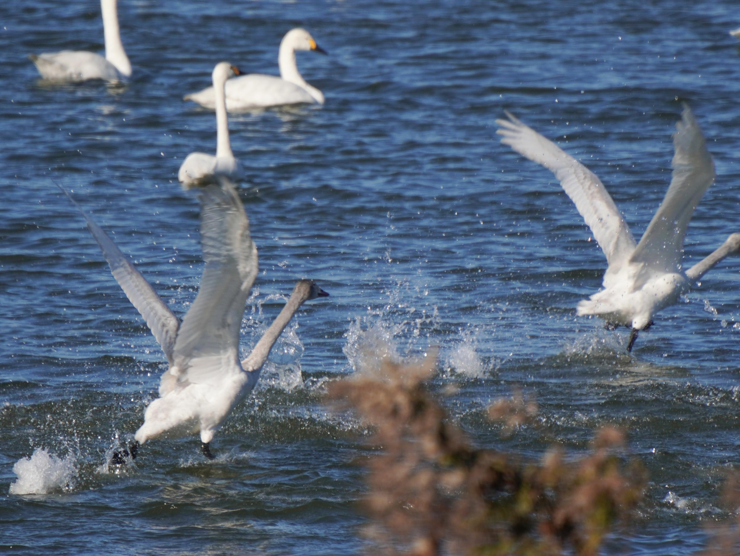 まだ集まってくるコハクチョウたち。クルマにもどってラストショット。