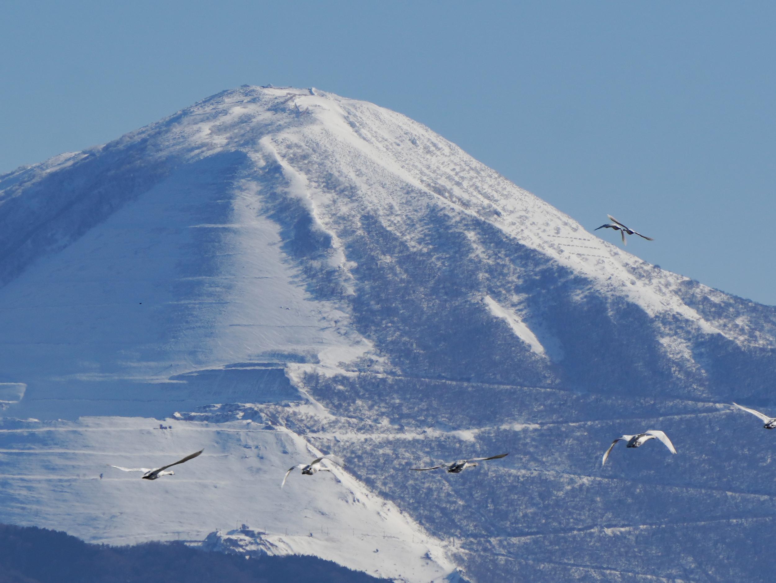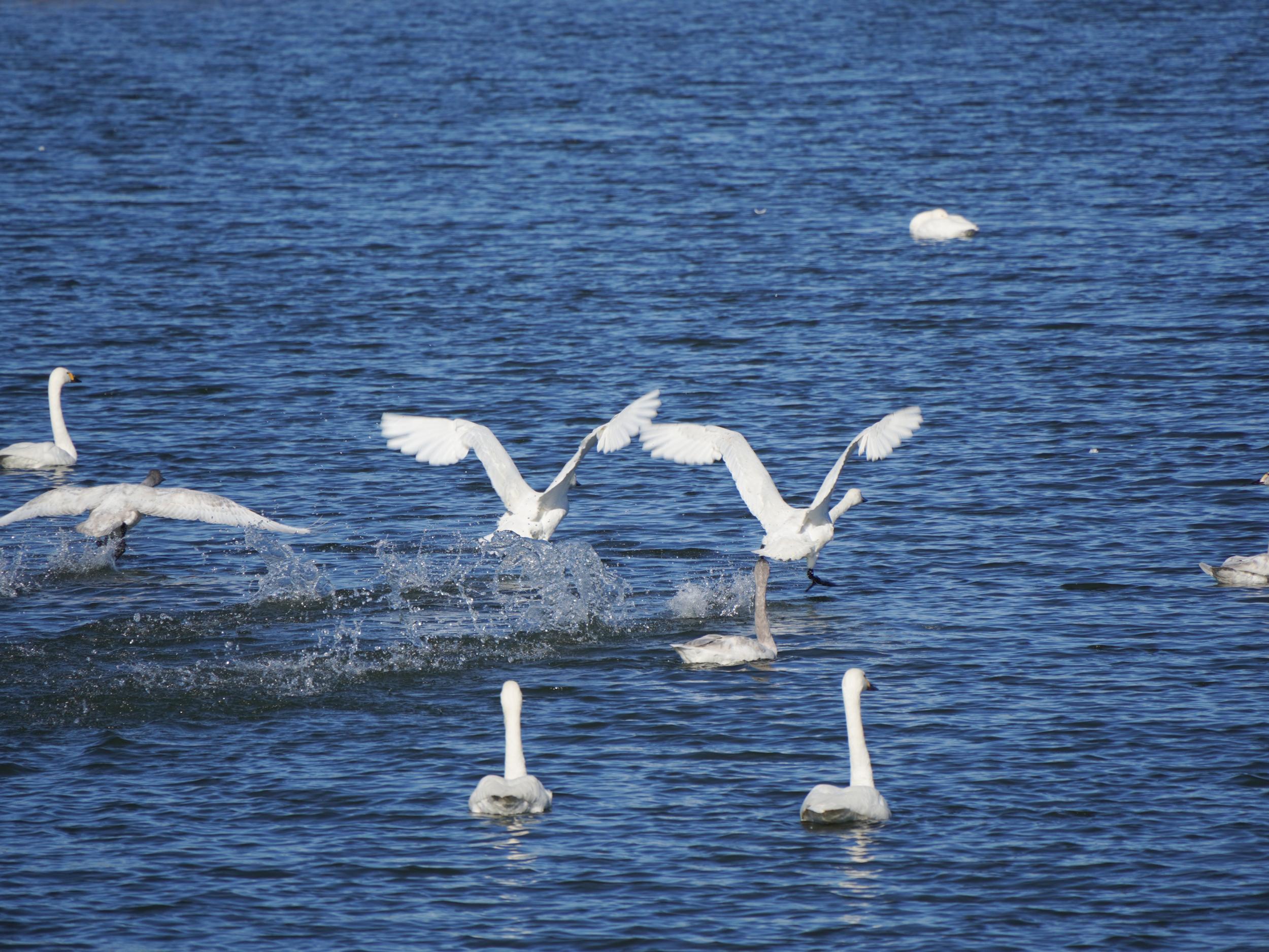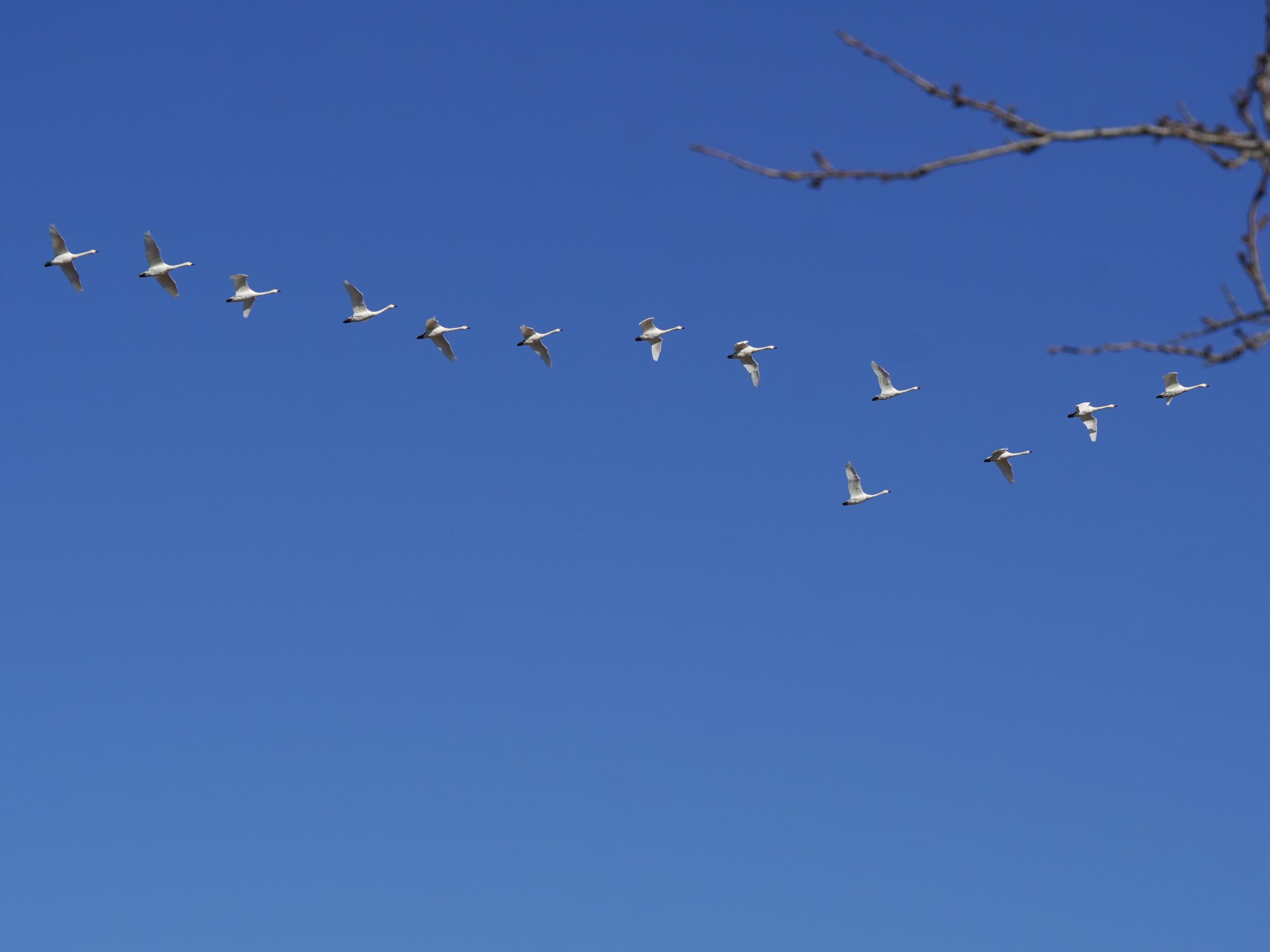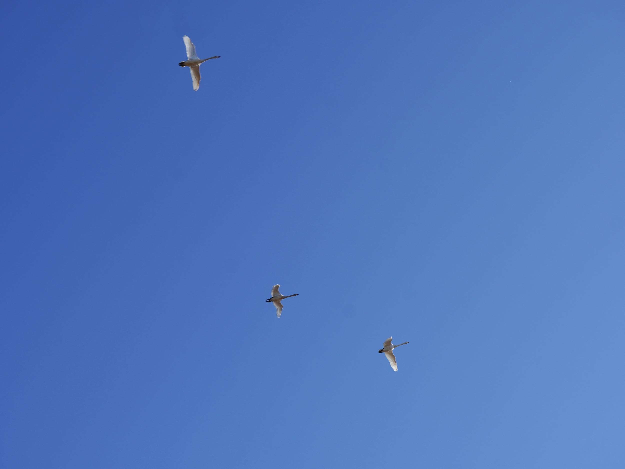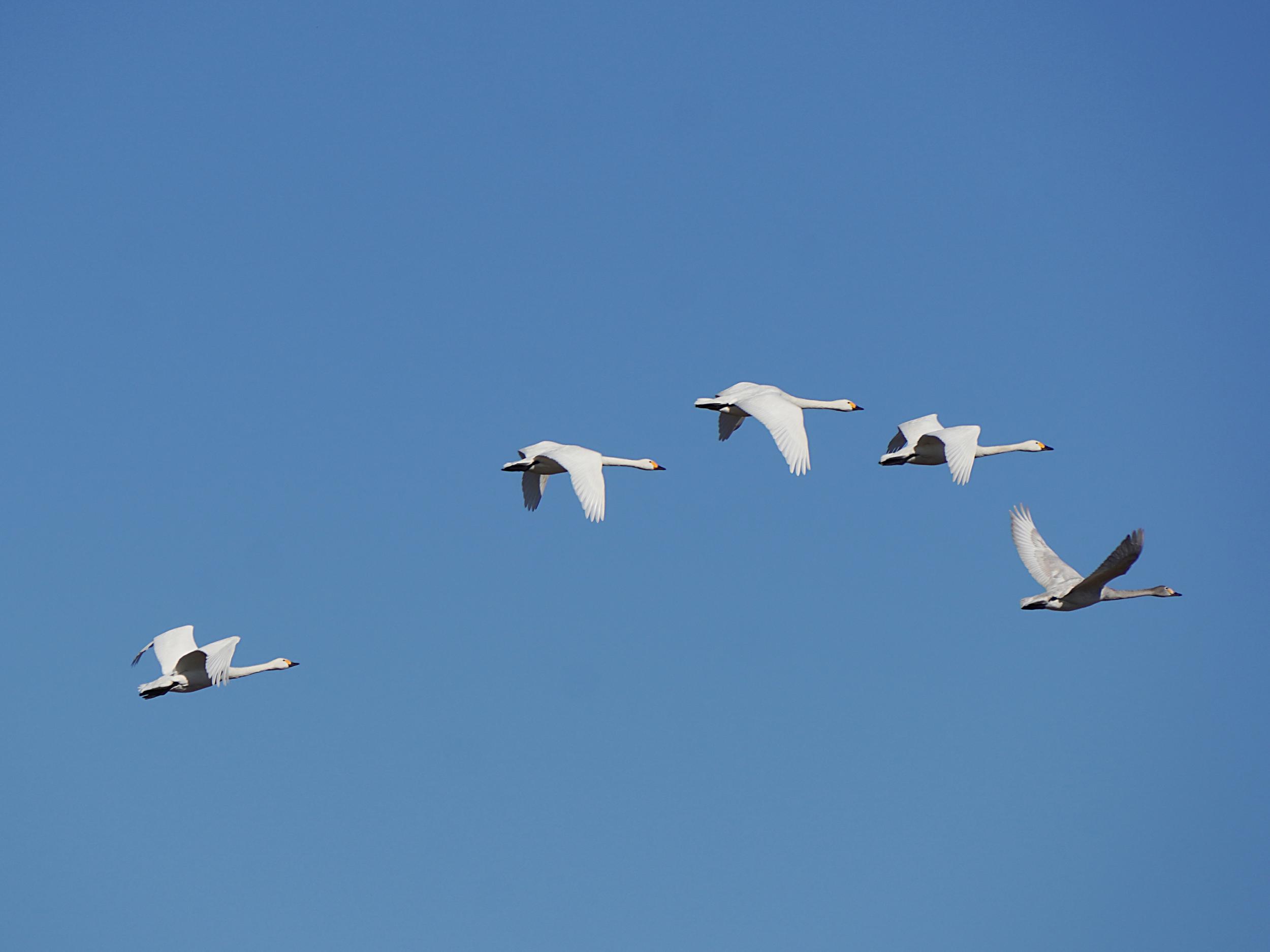 まだ集まってくるコハクチョウたち。クルマにもどってラストショット。