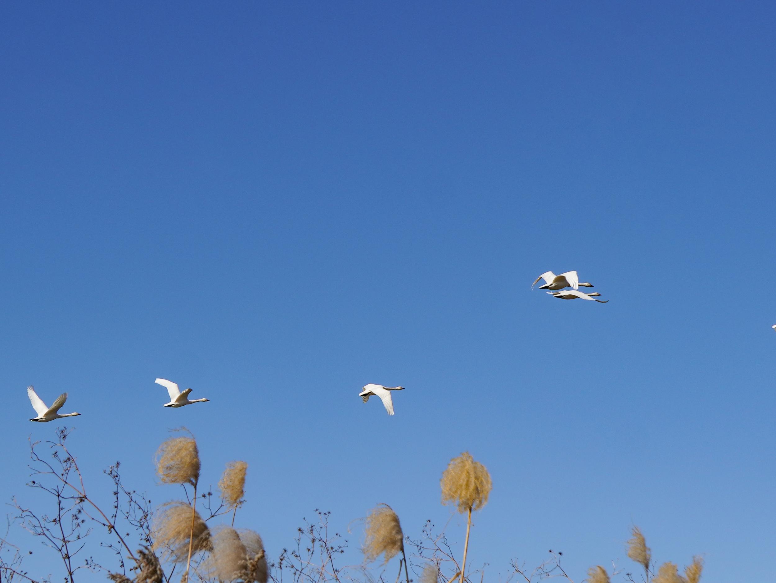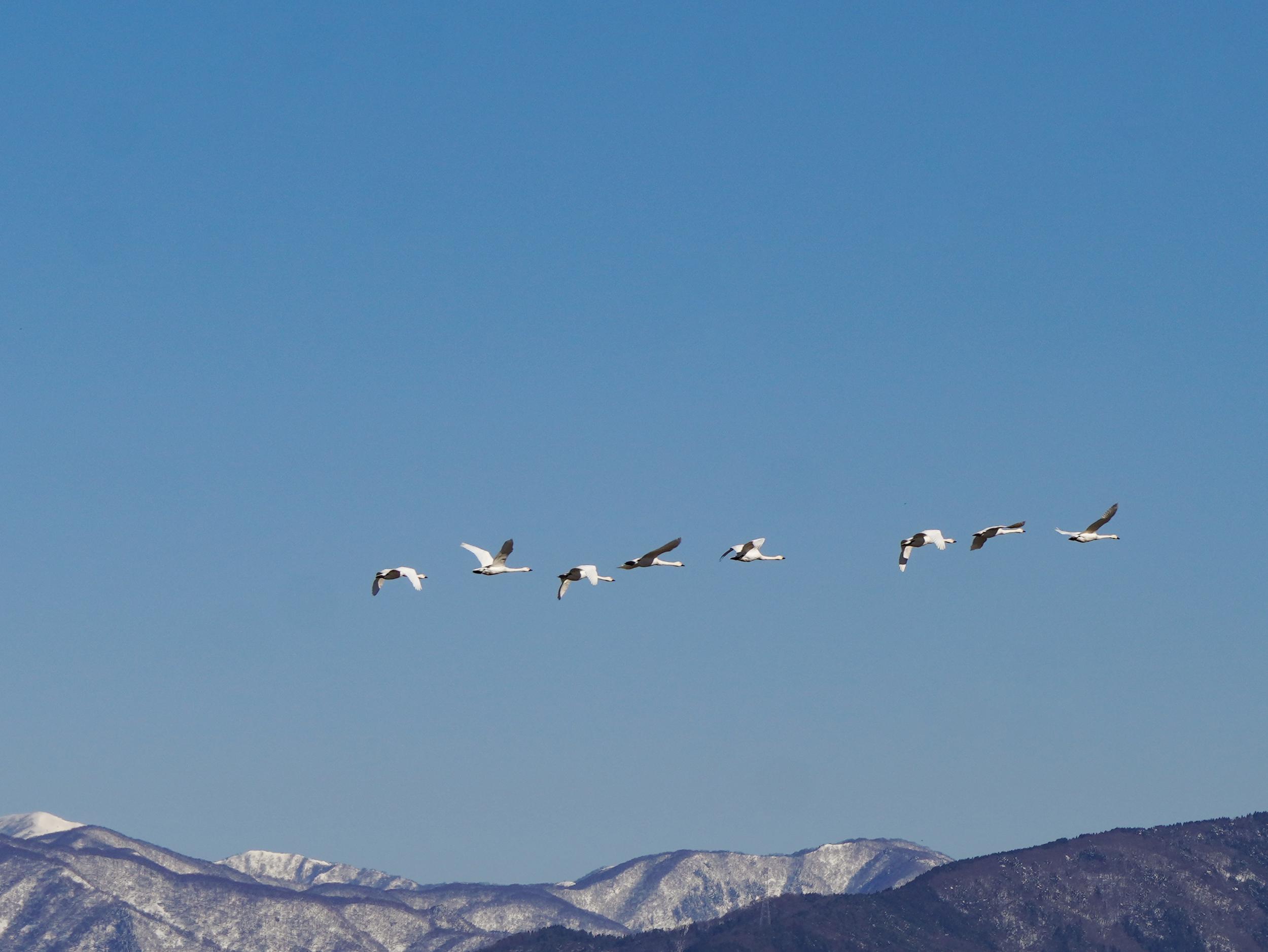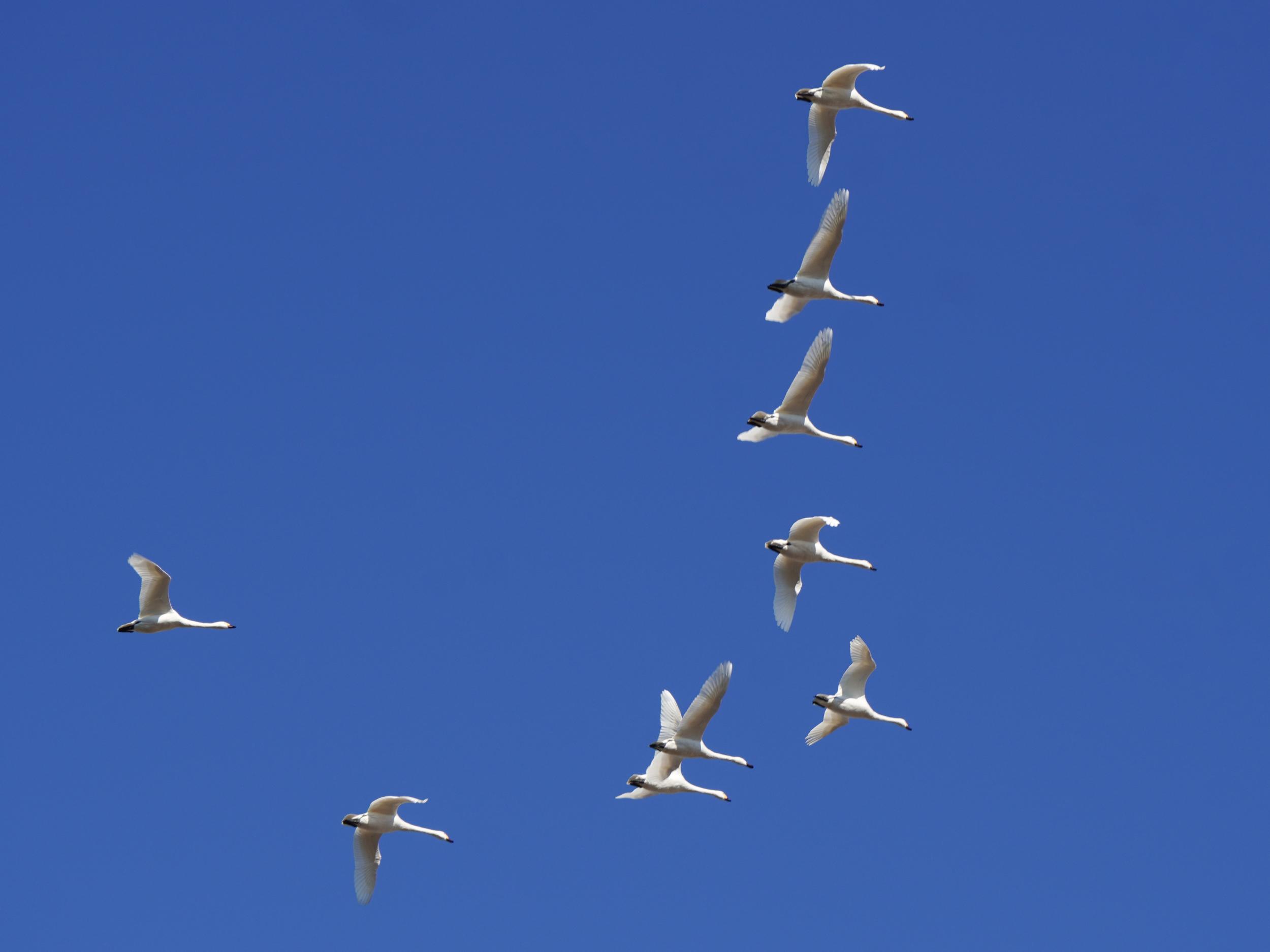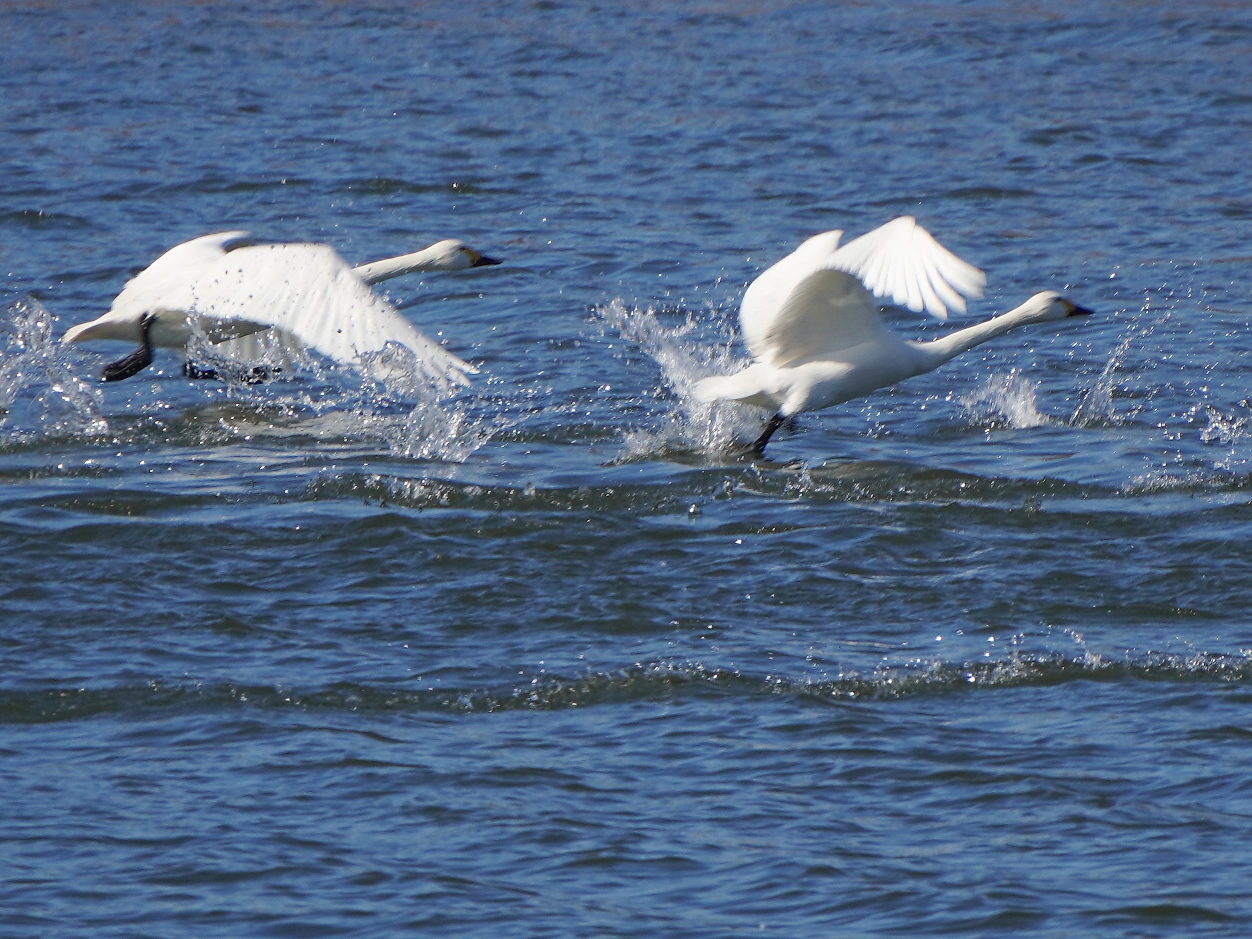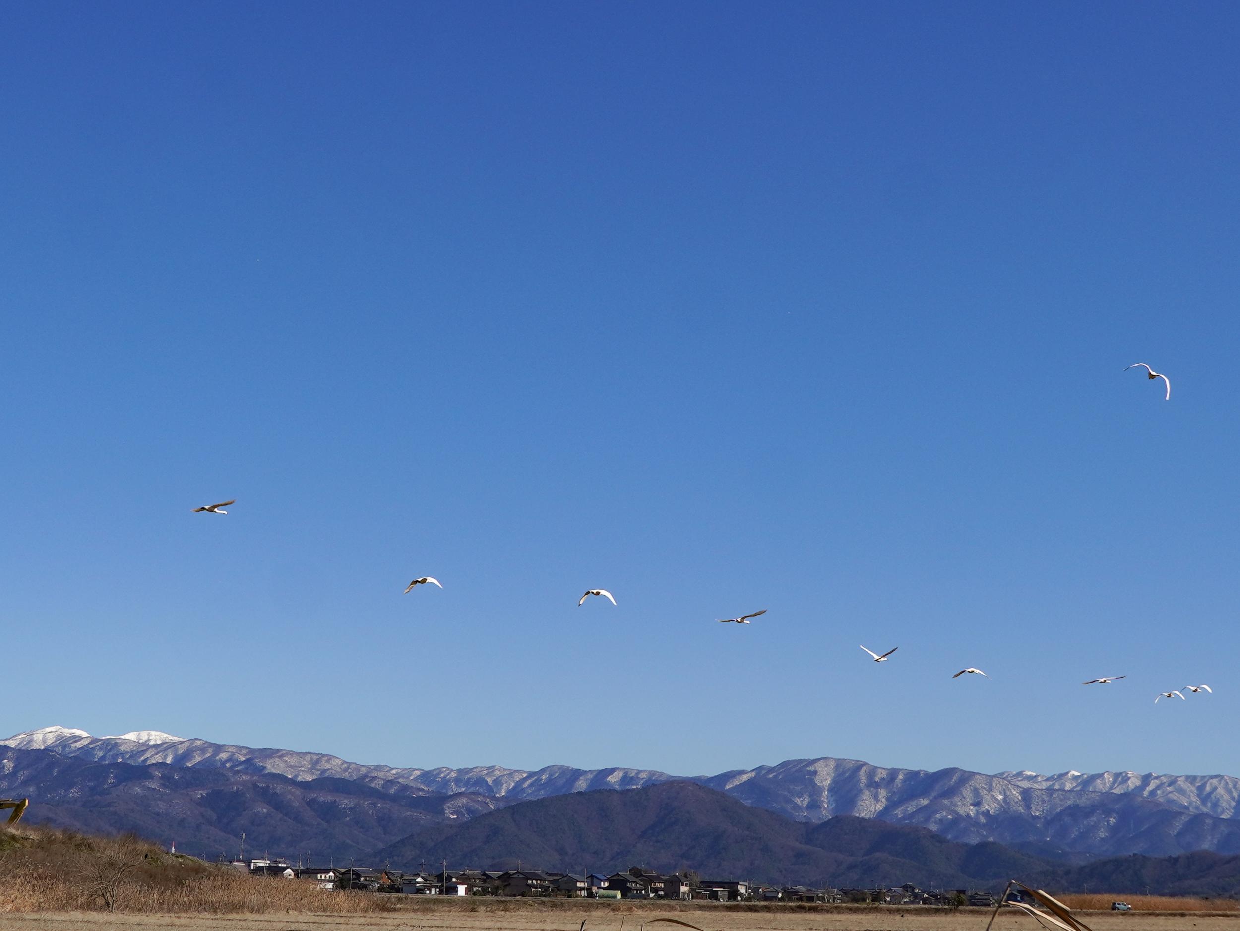 まだ集まってくるコハクチョウたち。クルマにもどってラストショット。