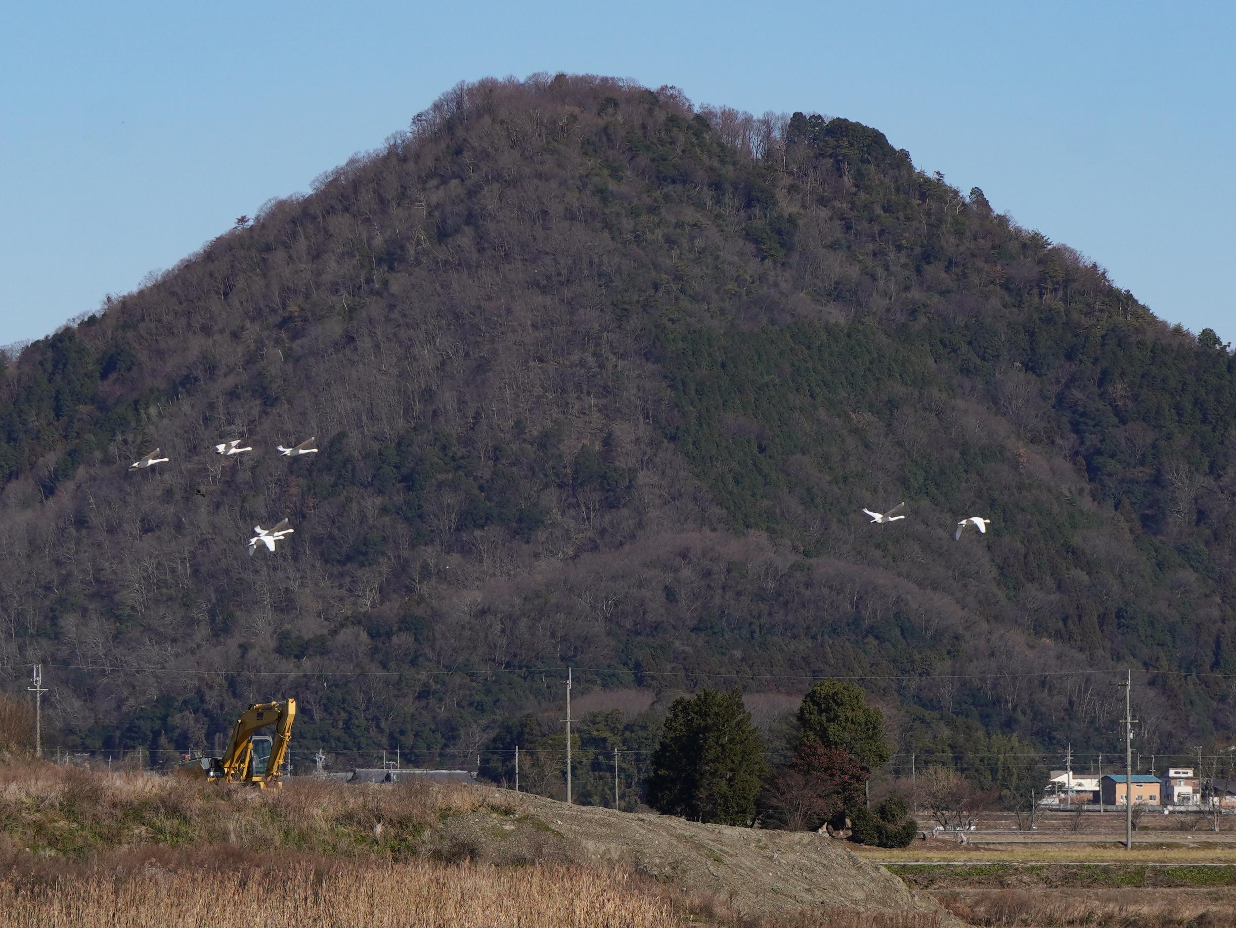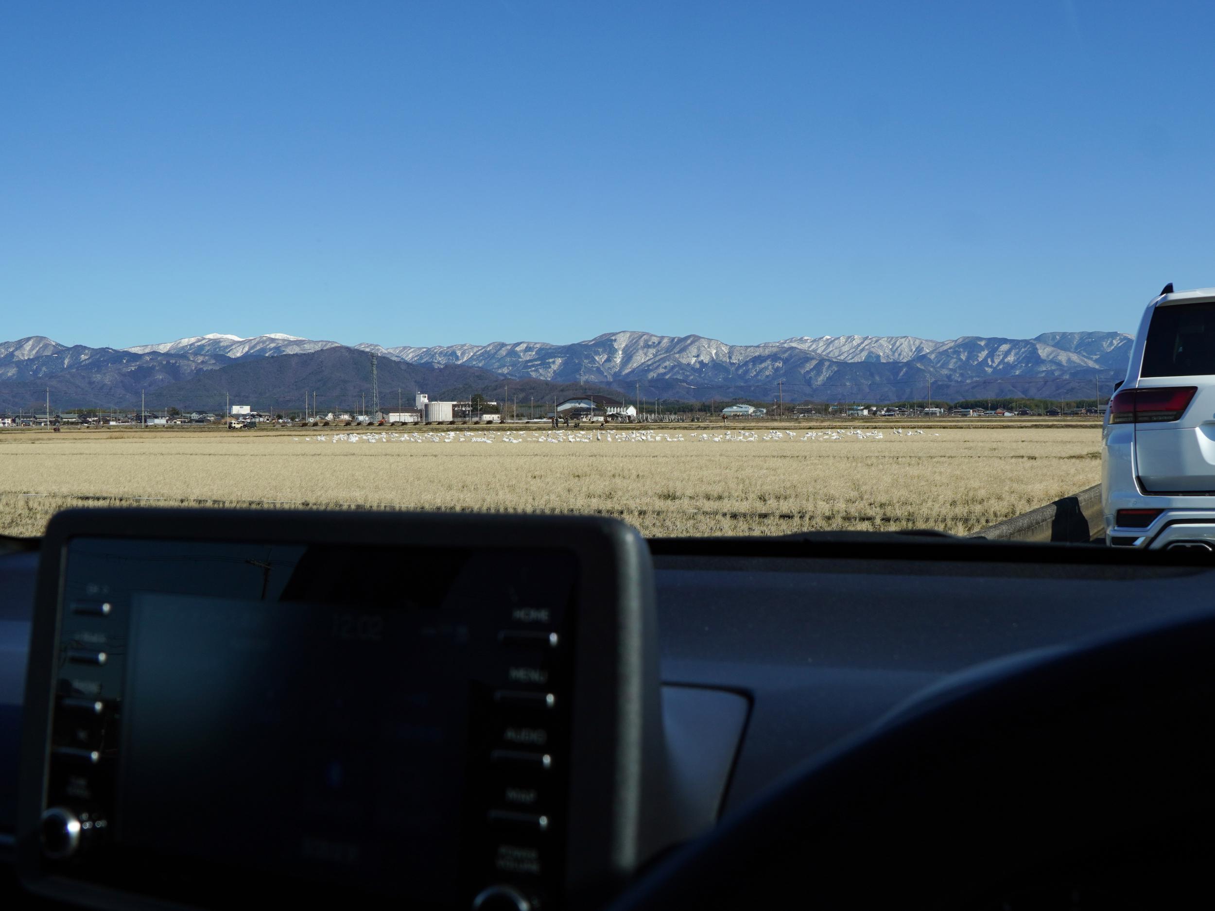 湖北野鳥センターから山本山へ向かう道にはほとんどいなかったものの、琵琶湖の湖岸に出ると、オオワシ狙いのカメラマンがびっしりでビックリ。オオワシのおばあちゃん27年連続の飛来ですが、何と今年はオオワシの幼鳥もやってきているとのこと。おばあちゃんの子どもや孫なのかは不明です。オオワシの飛び立ちを待つつもりは無いのでコハクチョウたちの下り立った田んぼを探しに向かいます。
