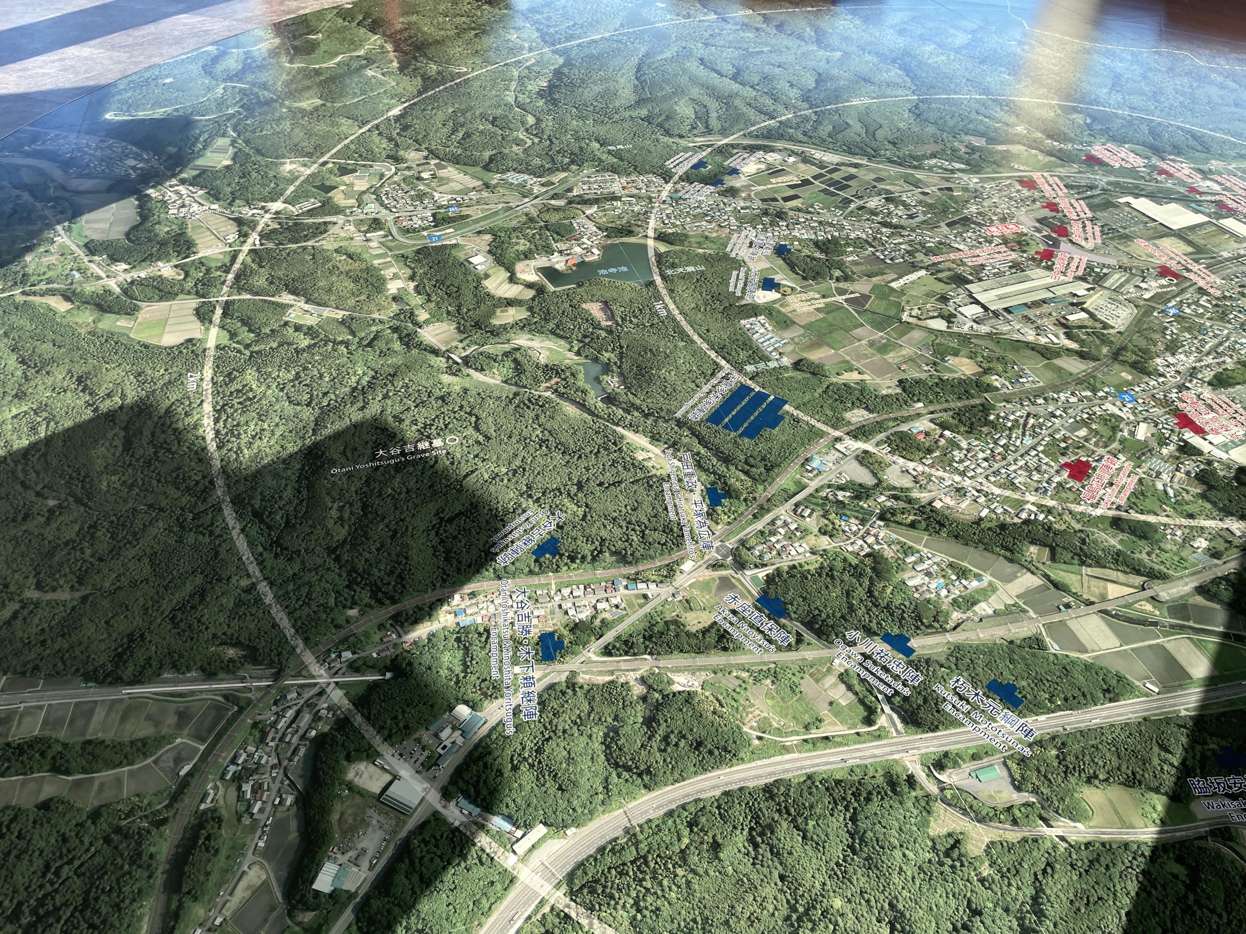 資料館の北側、国道21号に並行して東海道線が走っていて、南側は東海道新幹線が雪で運休になったり徐行したりする区間です。新幹線の向こうに名神高速、狭い谷に日本の動脈が走る、この国の覇権を握るには戦略上極めて重要なポイントであることが景色から伝わってきます。