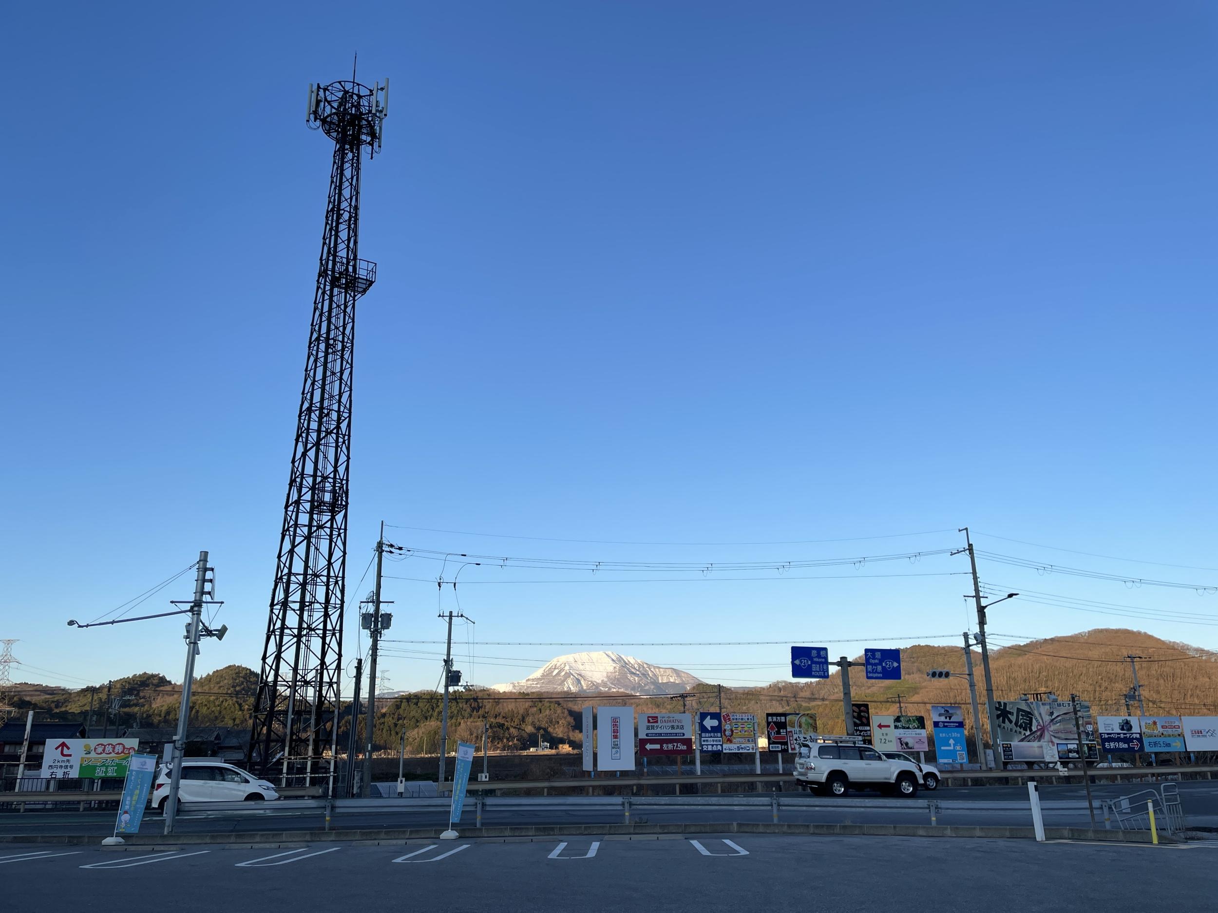 加賀市と四日市市を結び日本列島を東西に区切るような国道365号、その米原市春照(すいじょう)から見上げた伊吹山、山麓から中腹へ森の切れ込みが見えるのは伊吹山ゴンドラの跡です。4合目付近にあったスキー場はスキー人口の減少で2010年に閉鎖されたそうな。365号で峠を越えると岐阜県関ケ原町、慶長5年の古戦場じゃなくて、それより千年ほど前、壬申の乱の古戦場を見たくてやってきました。