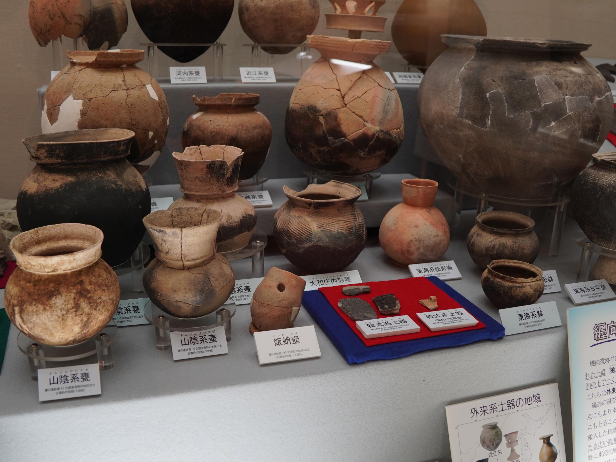山陰、東海、河内、近江等全国から集められた土器、そして外来系の土器の数々。纏向がマチからさらにクニへと変貌を遂げつつあったことを感じさせます。