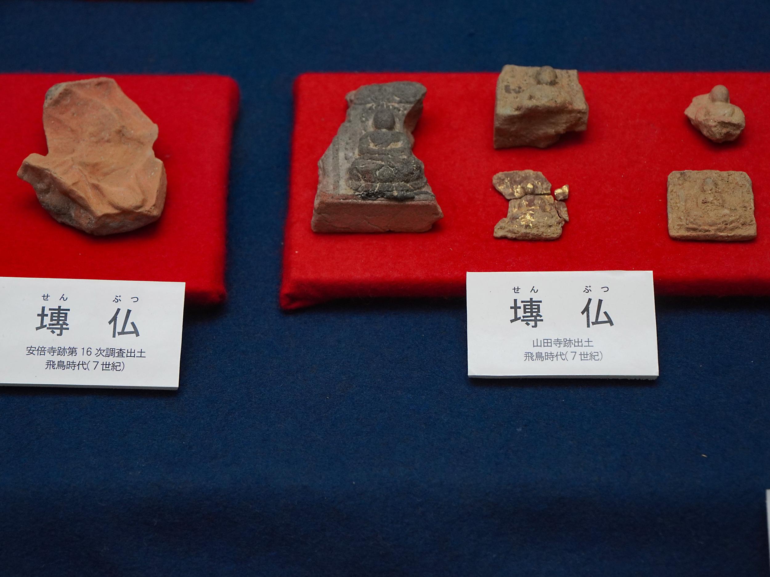 桜井市内にある山田寺跡や安倍寺跡から出土の飛鳥時代の塼仏。