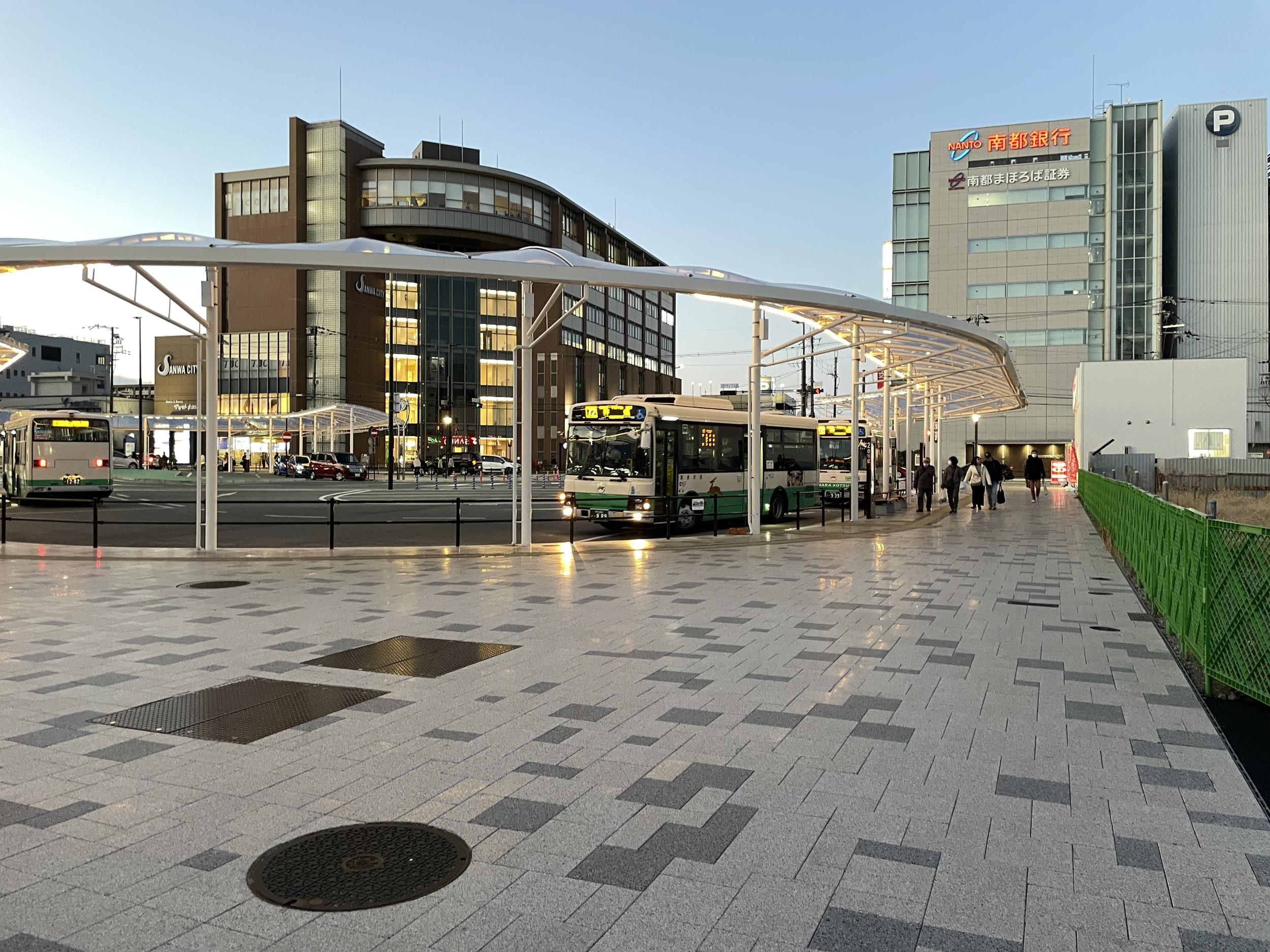 安倍元首相銃撃事件現場の西大寺駅北口、まだ2年半しか経っていませんがこの事件で日本が失ったものはあまりに大きい。事件後バスターミナルが整備されました。