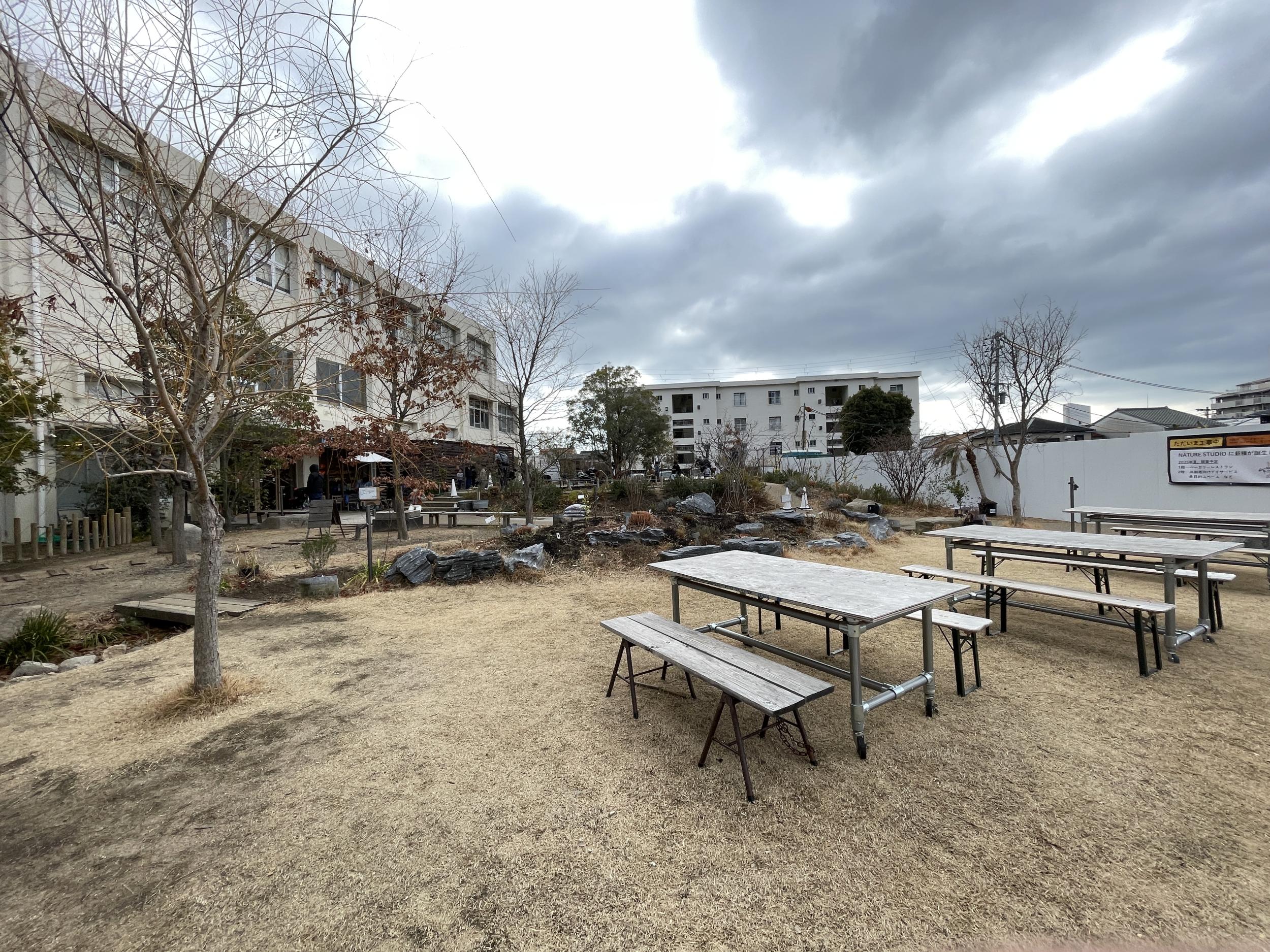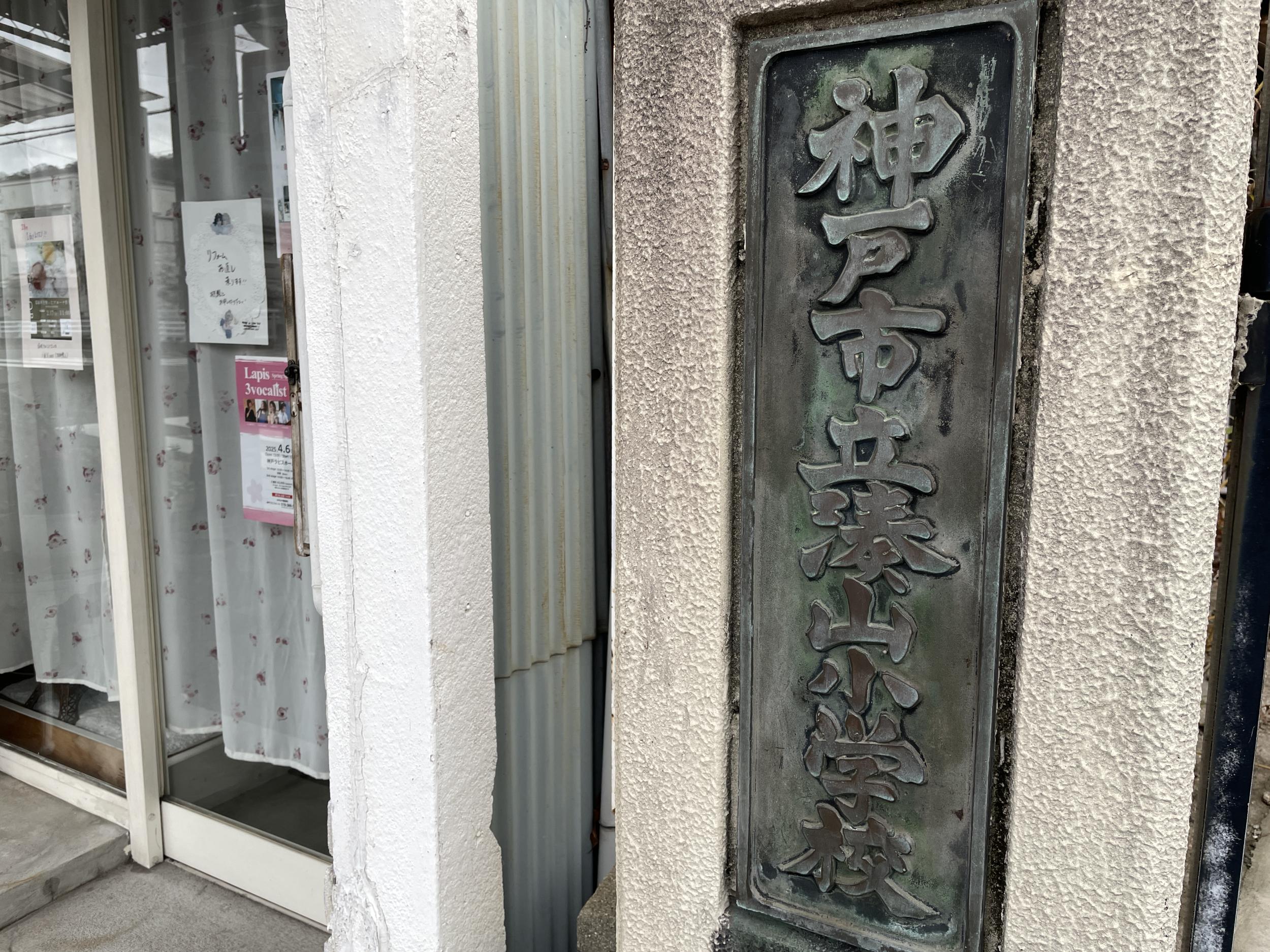 神戸市立湊山小学校の銘板が残されていました。校舎全体が複合施設になっていて、フードコートやハーブショップがあり、西側では高齢者向けデイサービスやレストランを増設する工事中。